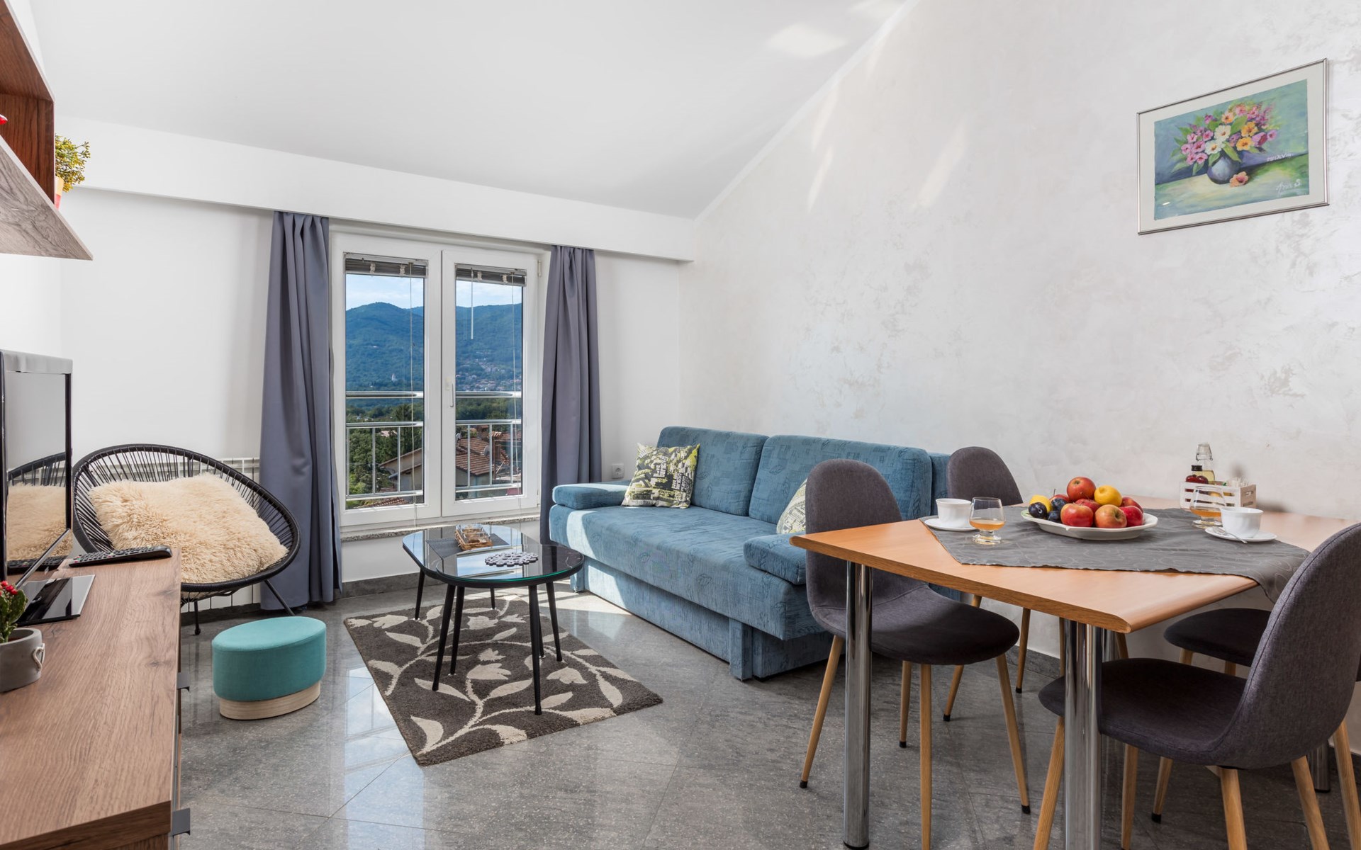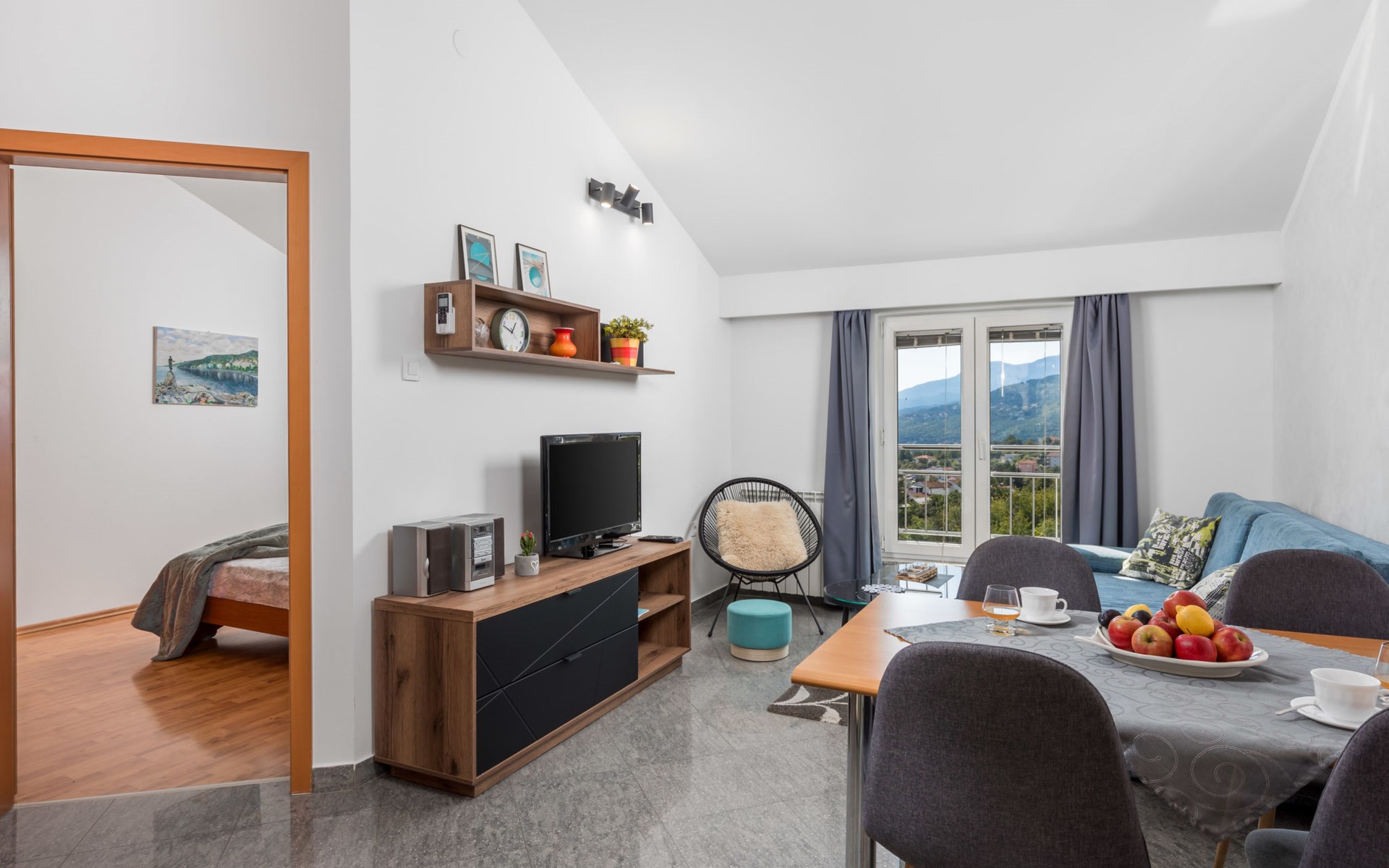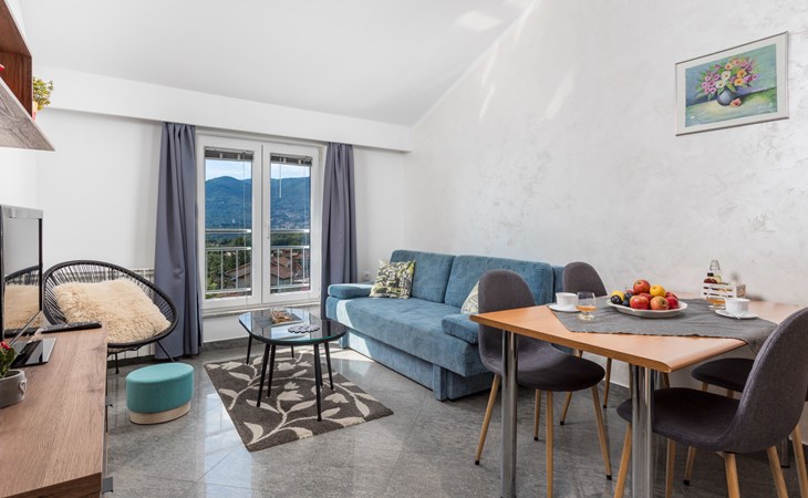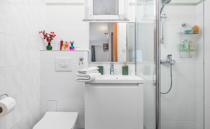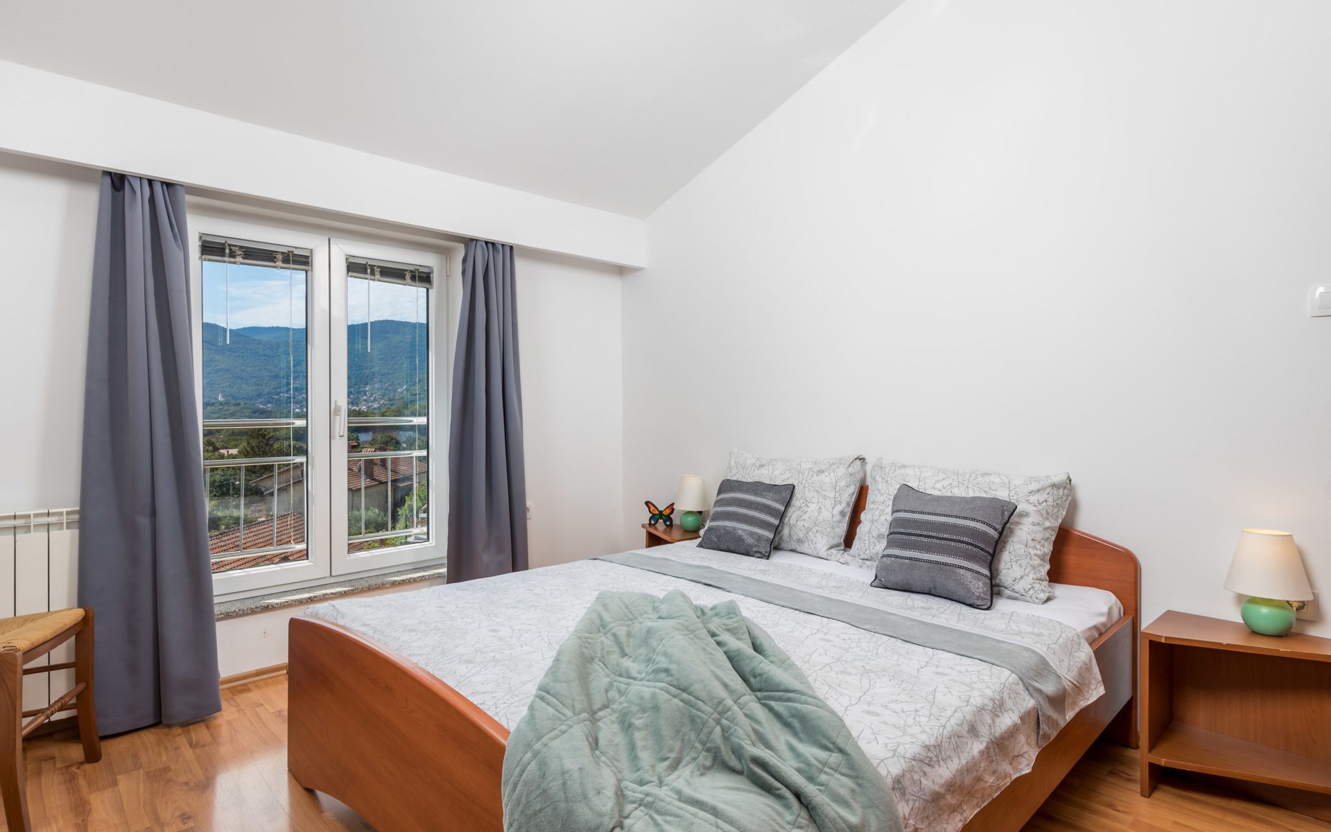 Apartment block "Bella Vista". 6 km from the centre of Opatija, 11 km from the centre of Ičići, on a slope, 3 km from the sea, 3 km from the beach, in a cul-de-sac, in the countryside. For shared use: property 1'200 m2 with flowers and trees, swimming pool heated (7 x 4 m, depth 120 - 160 cm, seasonal availability: 29.Apr. - 30.Nov. pool opening hours: 08:00-22:00). Outdoor shower, terrace, barbecue. In the house: internet access, washing machine, tumble dryer (for shared use, extra). Parking at the house on the premises. Shop 200 m, bus stop 1.2 km, pebble beach 3 km.