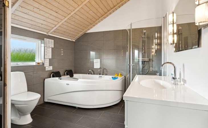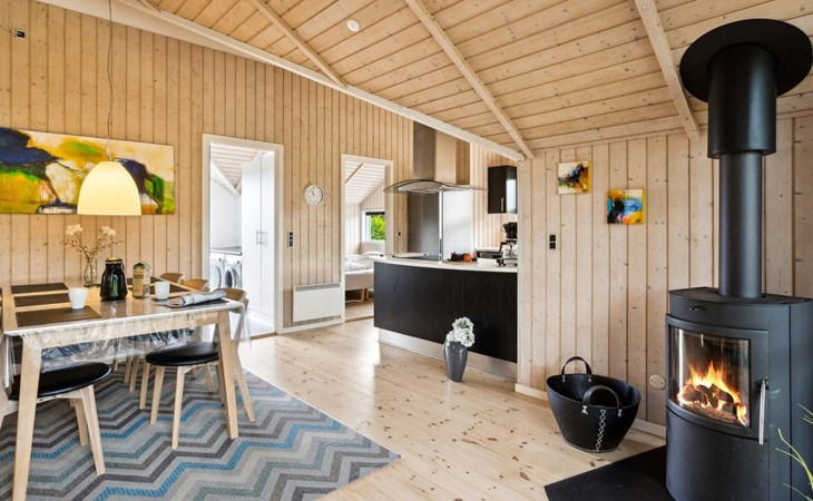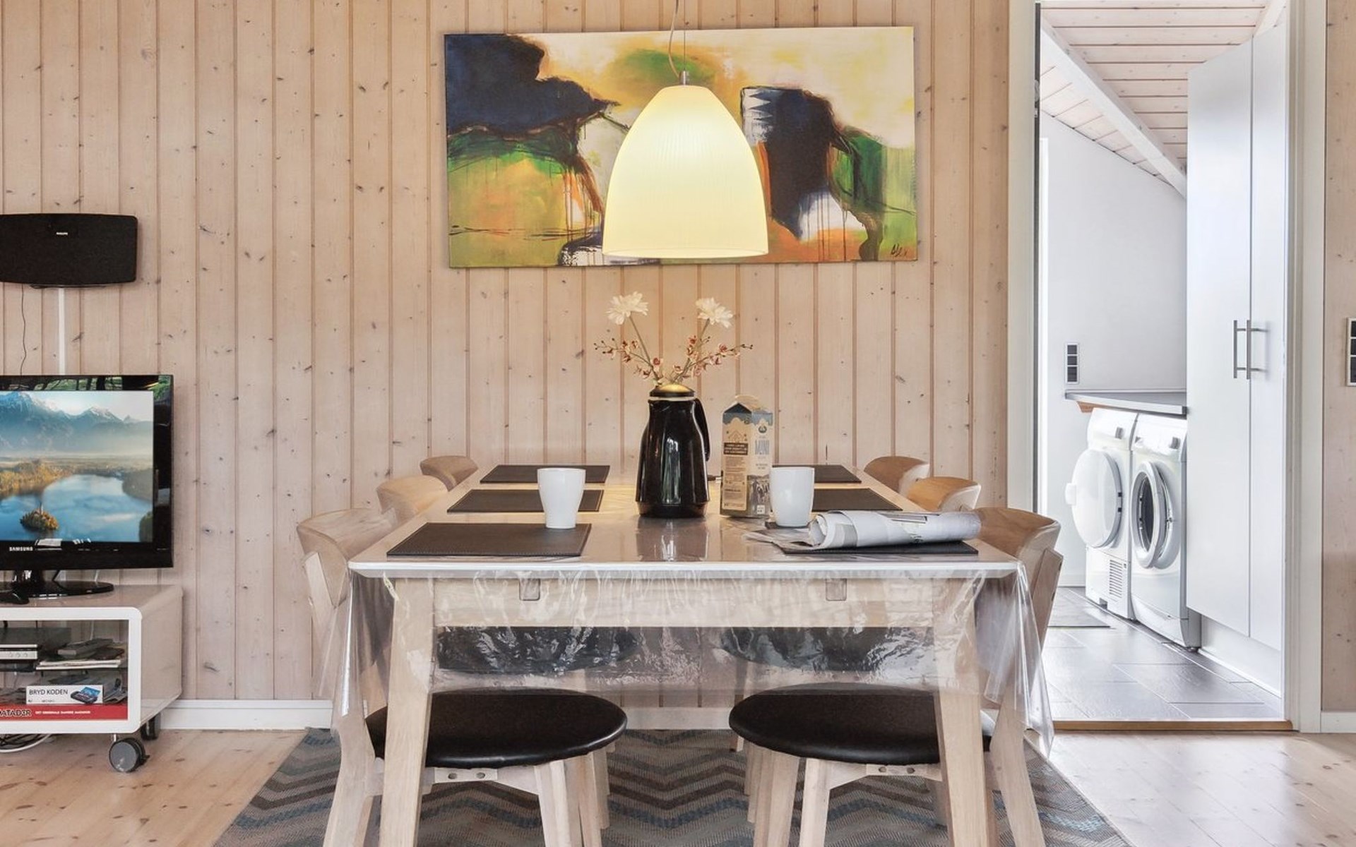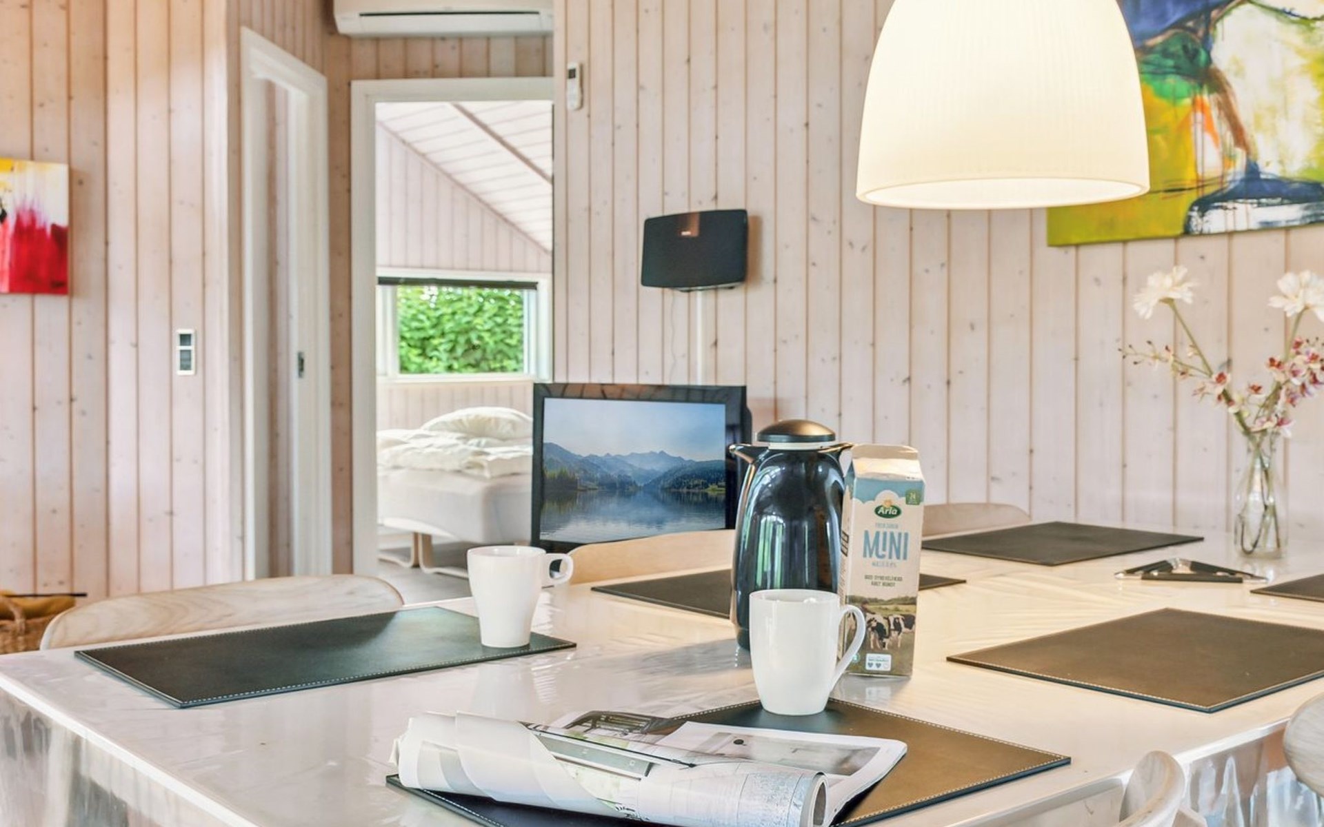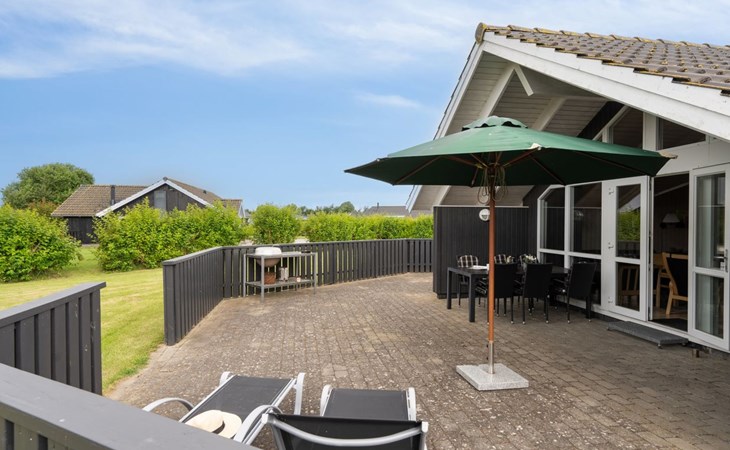 Single-family house, built in 2011. 800 m from the sea. Private: property 900 m2, well-kept garden. Barbecue, children's playground (swing). In the house: sauna, washing machine, tumble dryer. Parking at the house. Grocery 800 m. Golf course 10 km. The owner does not accept any youth groups.