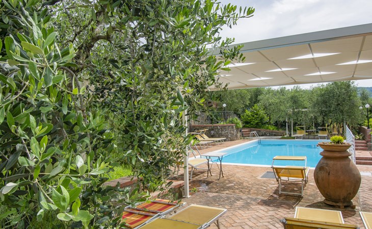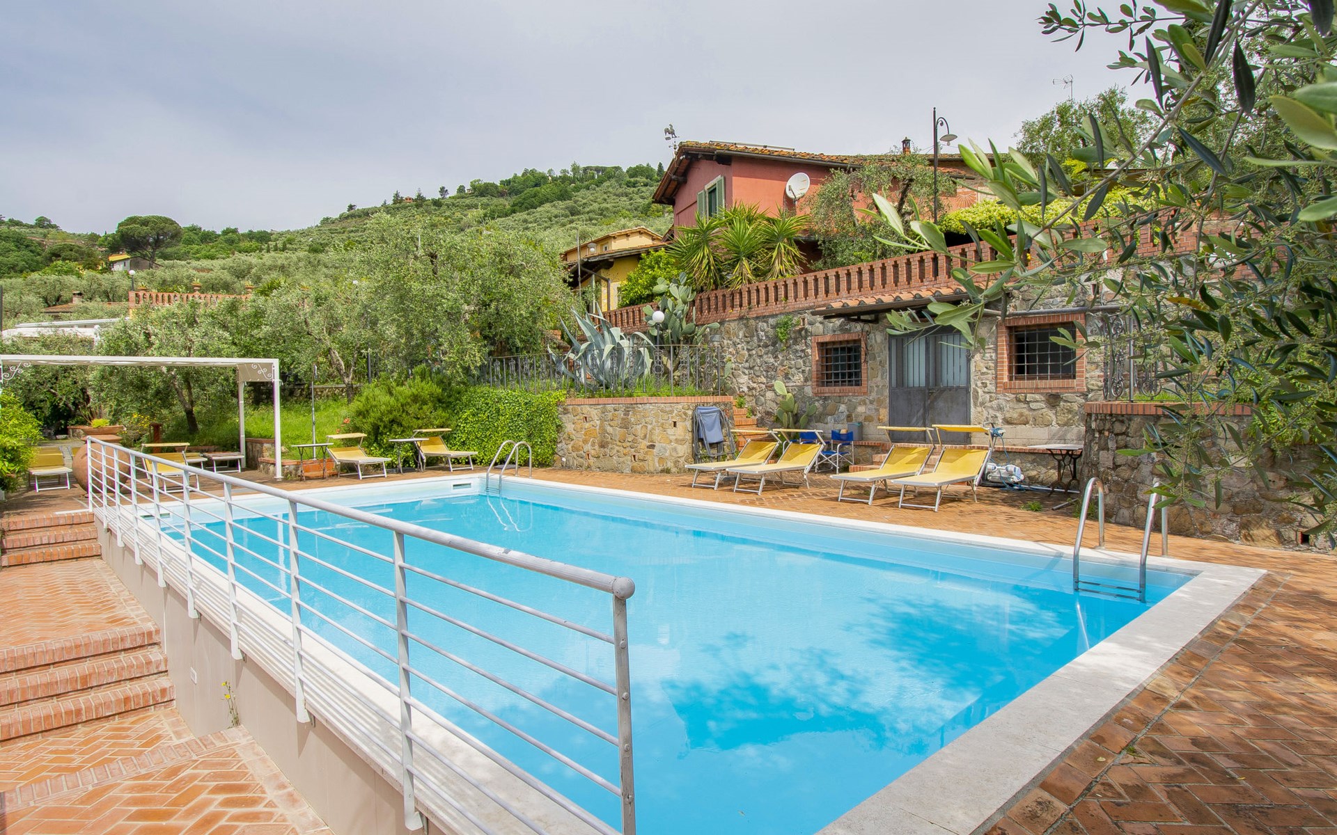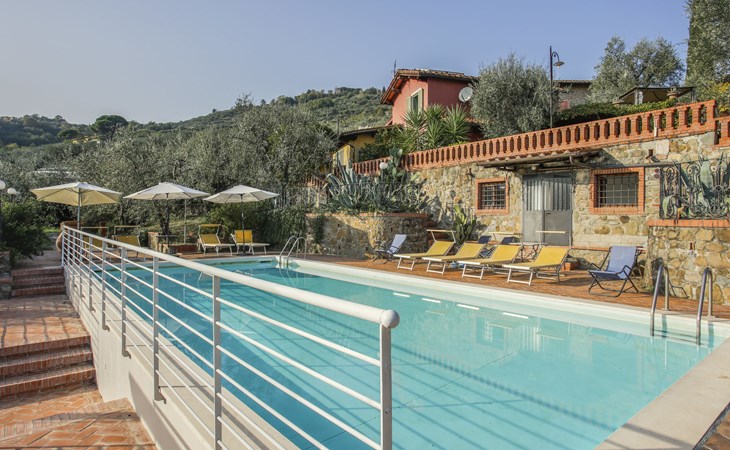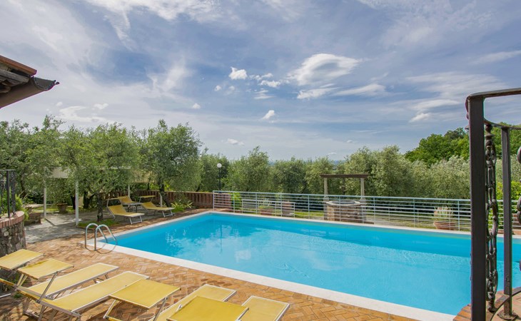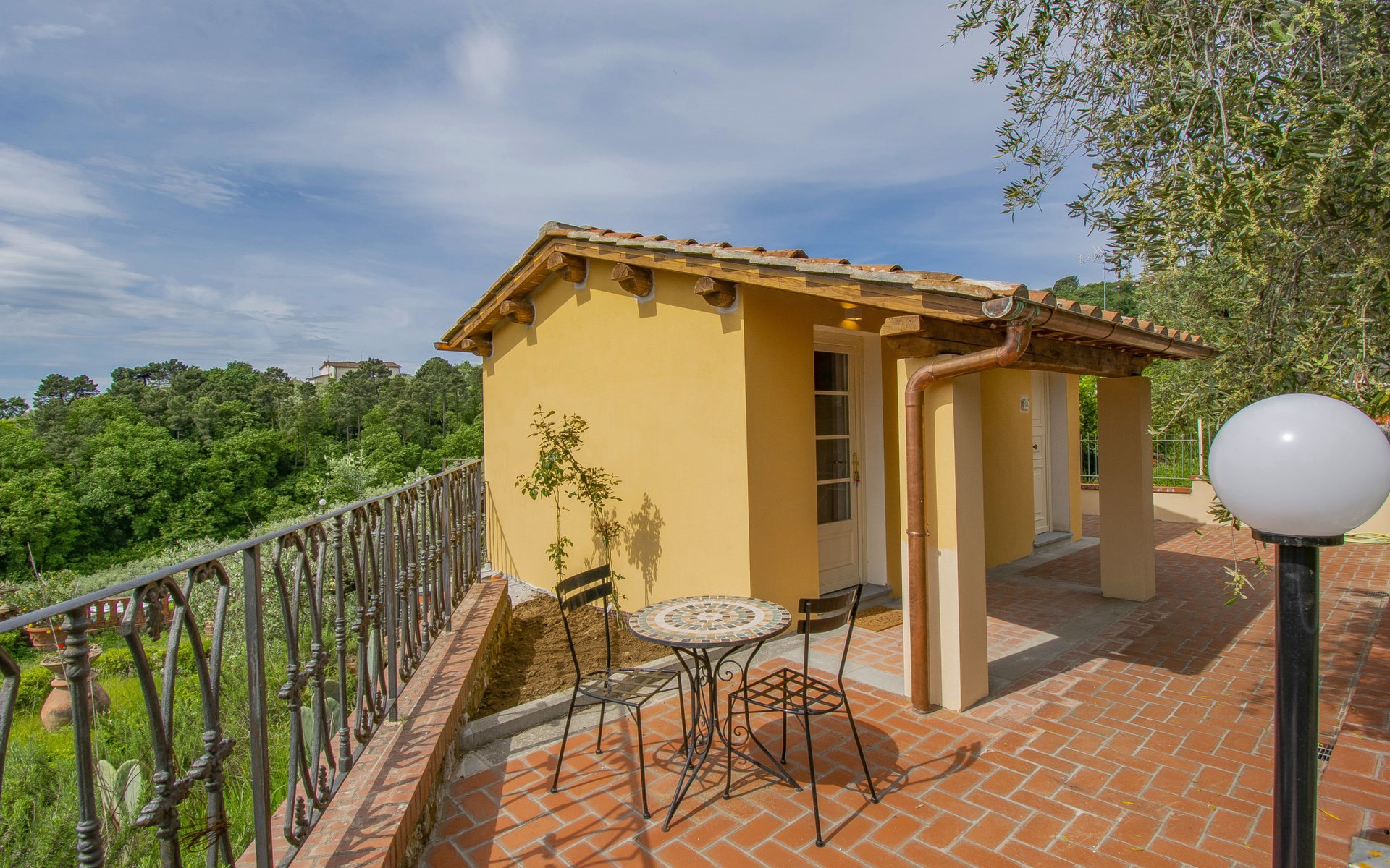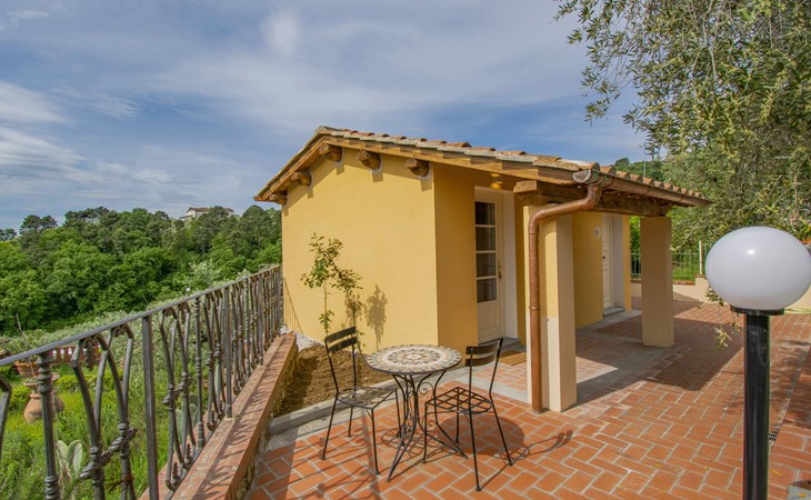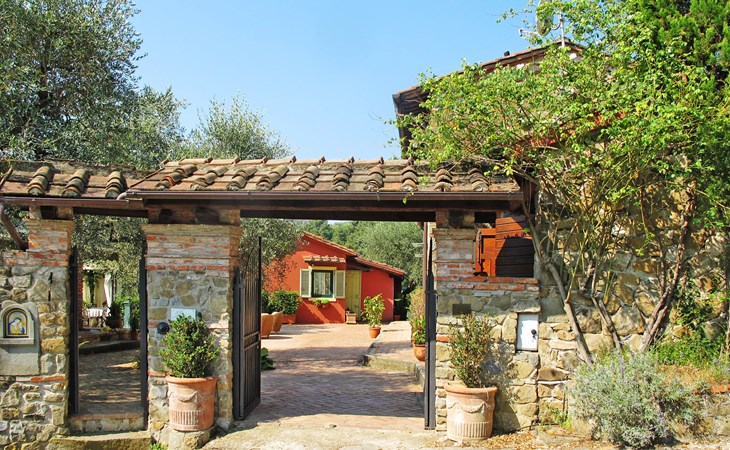 Agriturismo "Borgo della Limonaia", 130 m a.s.l., surrounded by trees and fields. 4 houses in the residence. 7 apartments in the residence. 4 km from the centre of Montecatini Terme, 30 km from the centre of Lucca, 50 km from the centre of Firenze, in a secluded, sunny position on a slope, 55 km from the sea, in the countryside. For shared use: property 6 ha, beautiful terraced garden with plants and trees, swimming pool (11 x 6 m, depth 120 - 160 cm, seasonal availability: 25.Apr. - 15.Oct.). Outdoor shower, patio, terrace, garden furniture, children's playground, pool maintenance by the owner/gardener. In the complex: sauna, steam room, hot tub (all extra), table tennis (all included), table football, washing machine (for shared use, extra). 200 m long narrow motor access to the house. Parking at 200 m on the premises. Grocery 600 m, supermarket 1.5 km, bus stop 3 km, railway station "Montecatini Terme" 4 km, sandy beach "Lido di Camaiore" 55 km. Golf course (18 hole) 10 km. Local sale of farm products.