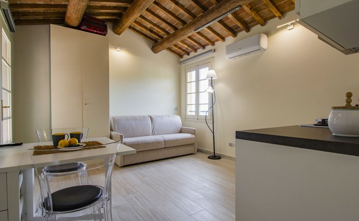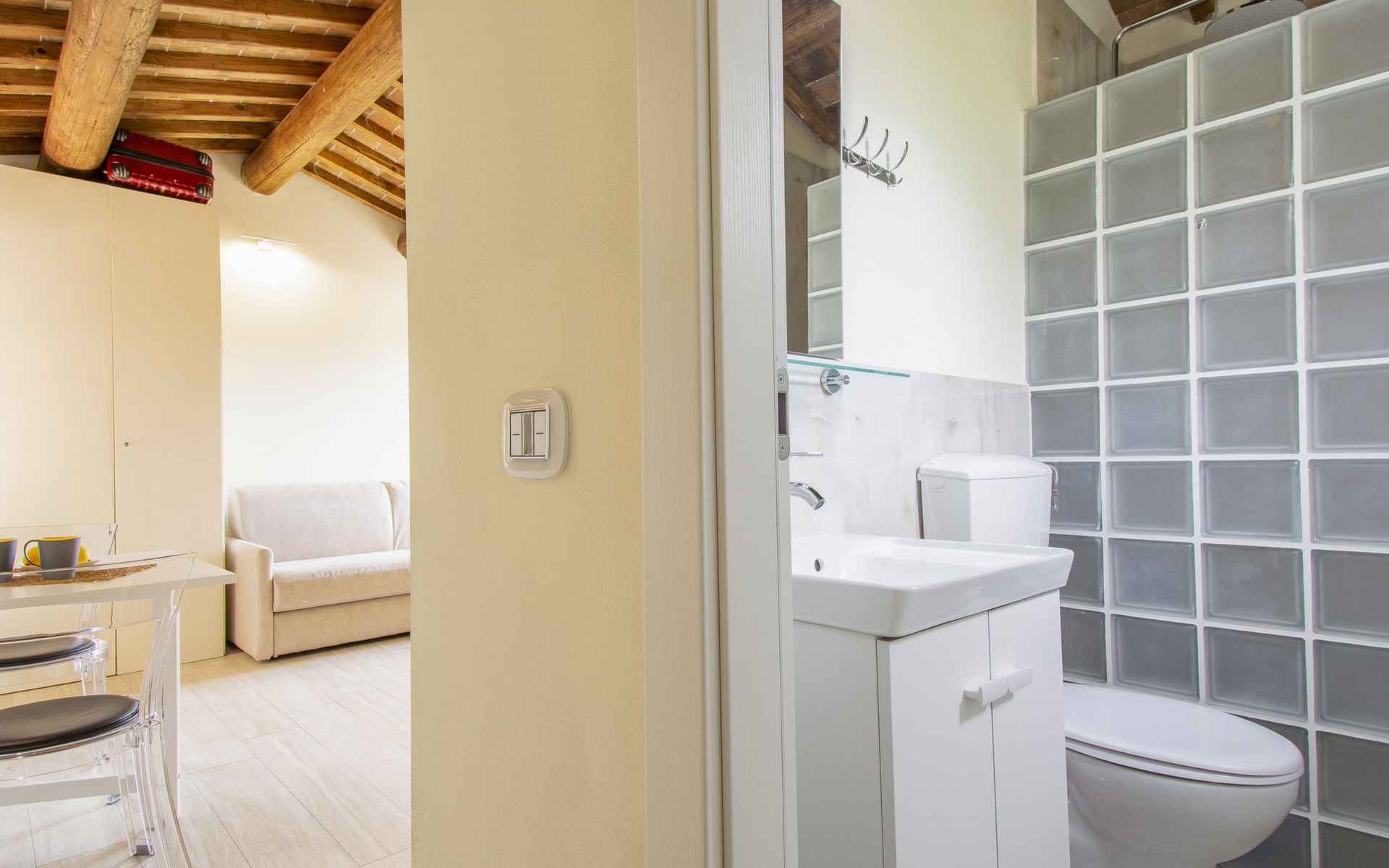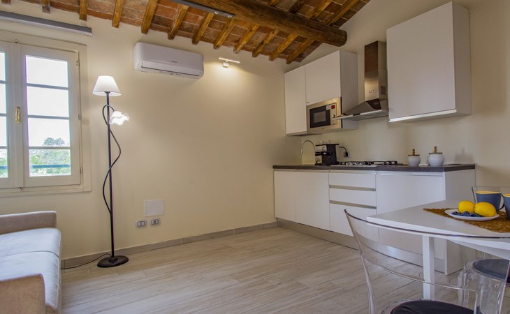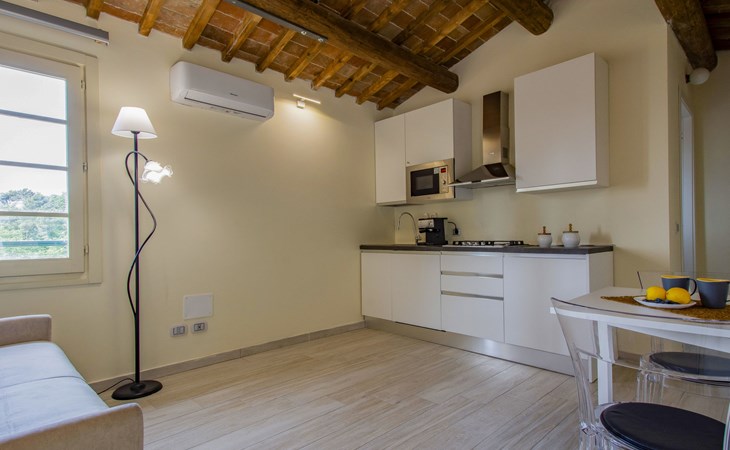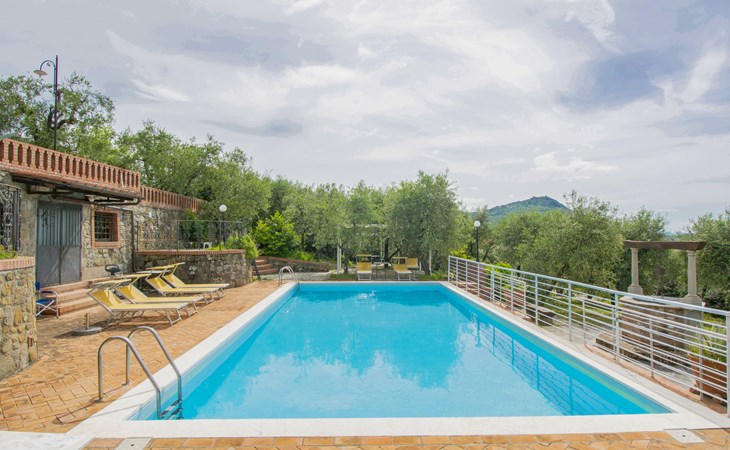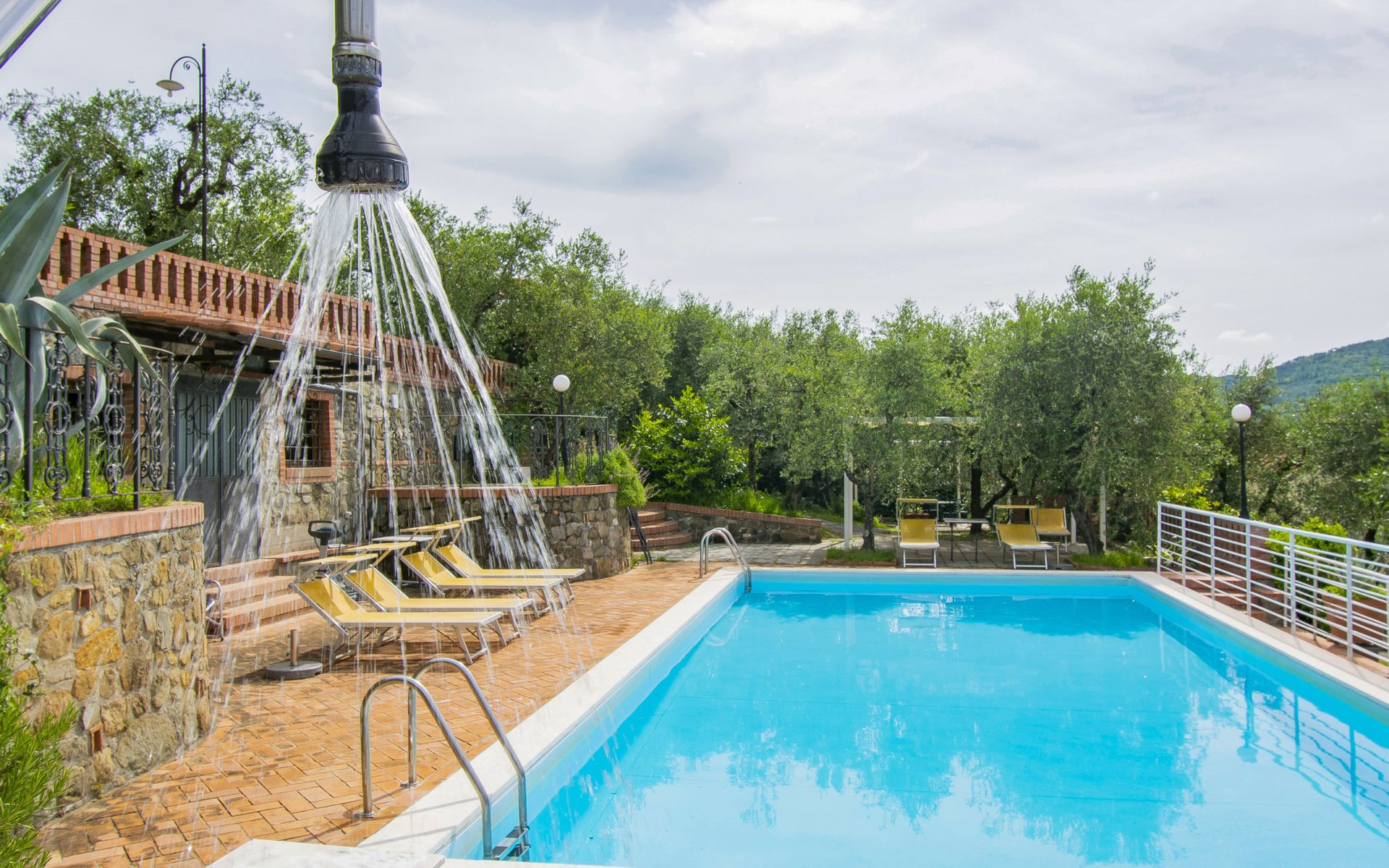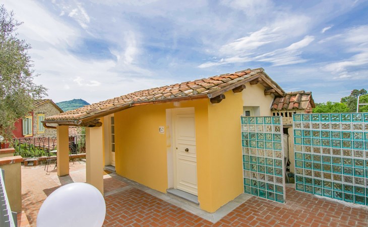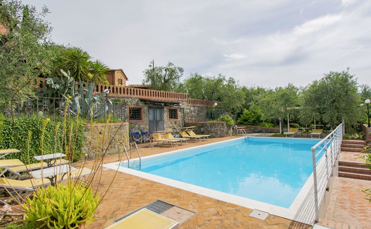 Agriturismo "Borgo della Limonaia", 130 m a.s.l., surrounded by trees and fields. 4 houses in the residence. 7 apartments in the residence. 4 km from the centre of Montecatini Terme, 30 km from the centre of Lucca, 50 km from the centre of Firenze, in a secluded, sunny position on a slope, 55 km from the sea, in the countryside. For shared use: property 6 ha, beautiful terraced garden with plants and trees, swimming pool (11 x 6 m, depth 120 - 160 cm, seasonal availability: 25.Apr. - 15.Oct.). Outdoor shower, patio, terrace, garden furniture, children's playground, pool maintenance by the owner/gardener. In the complex: sauna, steam room, hot tub (all extra), table tennis (all included), table football, washing machine (for shared use, extra). 200 m long narrow motor access to the house. Parking at 200 m on the premises. Grocery 600 m, supermarket 1.5 km, bus stop 3 km, railway station "Montecatini Terme" 4 km, sandy beach "Lido di Camaiore" 55 km. Golf course (18 hole) 10 km. Local sale of farm products.