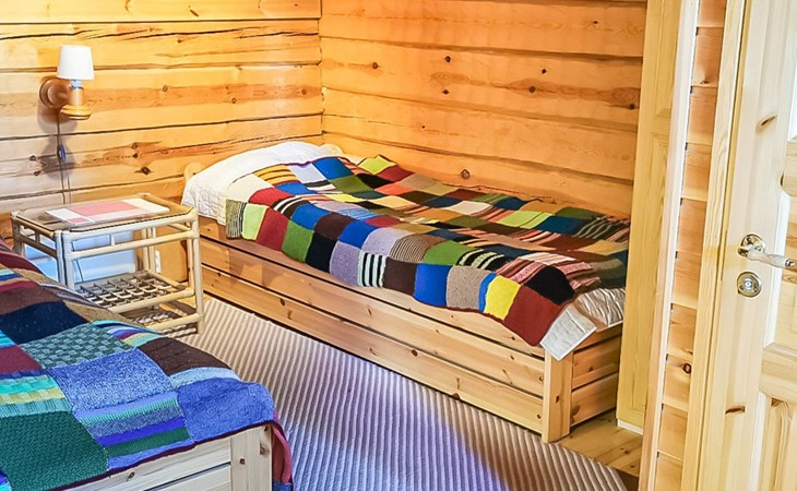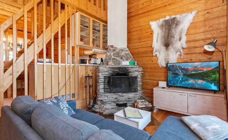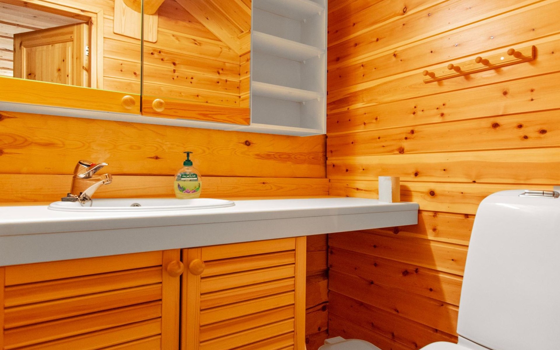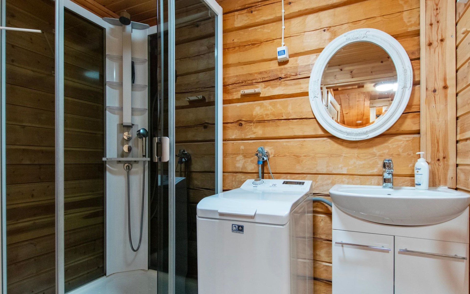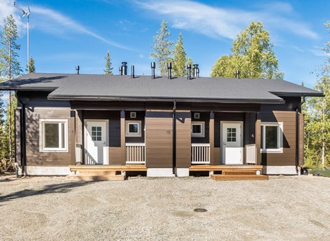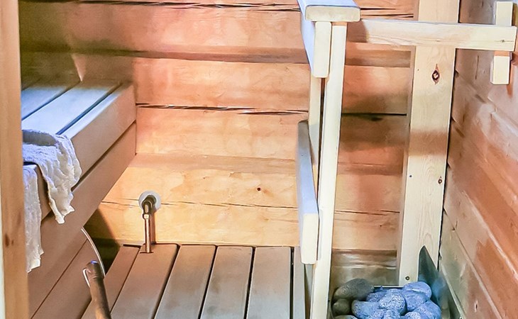 Apartment area 46 m² + loft 15 m². The living room kitchen has an atmospheric fireplace, a bedroom with a double bed, 2 single beds in the loft (superlo mattresses) and a toilet. Washroom, sauna (with electric stove), toilet, terrace.