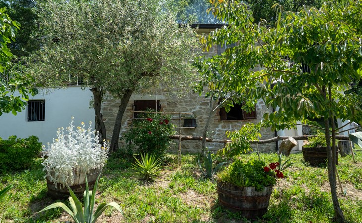 Very cosy country house, surrounded by trees and meadows. In the resort 2 km from the centre of Palmoli, in a secluded, quiet position, 5 m from the edge of the forest, 29 km from the sea, 29 km from the beach, in a cul-de-sac, in the countryside, in the woods. Private: large terraced garden, 2'000 m2 (fenced). Cook on request (extra). Pre-arrival grocery service. Airport transfer. Parking (for 3 cars) on the premises. Supermarket 2 km, restaurant 2.8 km, bar 2.9 km, bus stop "Palmoli" 2 km, sandy beach "Marina di San Vito" 29 km pebble beach "Marina di San Vito" 29 km, lake Colle di Mezzo 40 km. Nearby attractions: Monte Valico di San Buono 8 km, Costa dei Trabocchi 25 km. Hiking paths: Valle del Treste 2 km. Please note: car recommended. Suitable for families. Loading and unloading of baggage is possible at the holiday house. Airfield 105 km from the property.