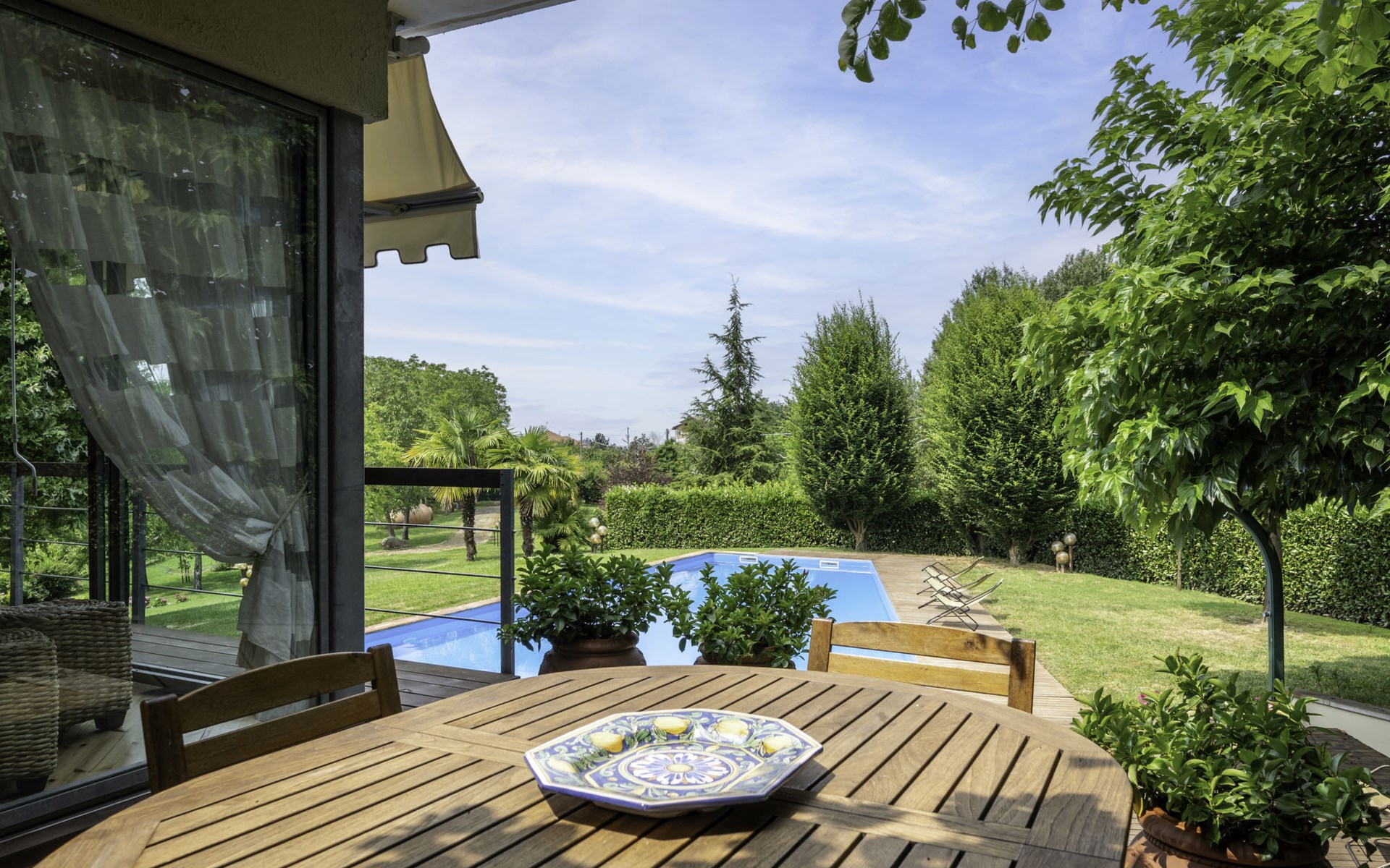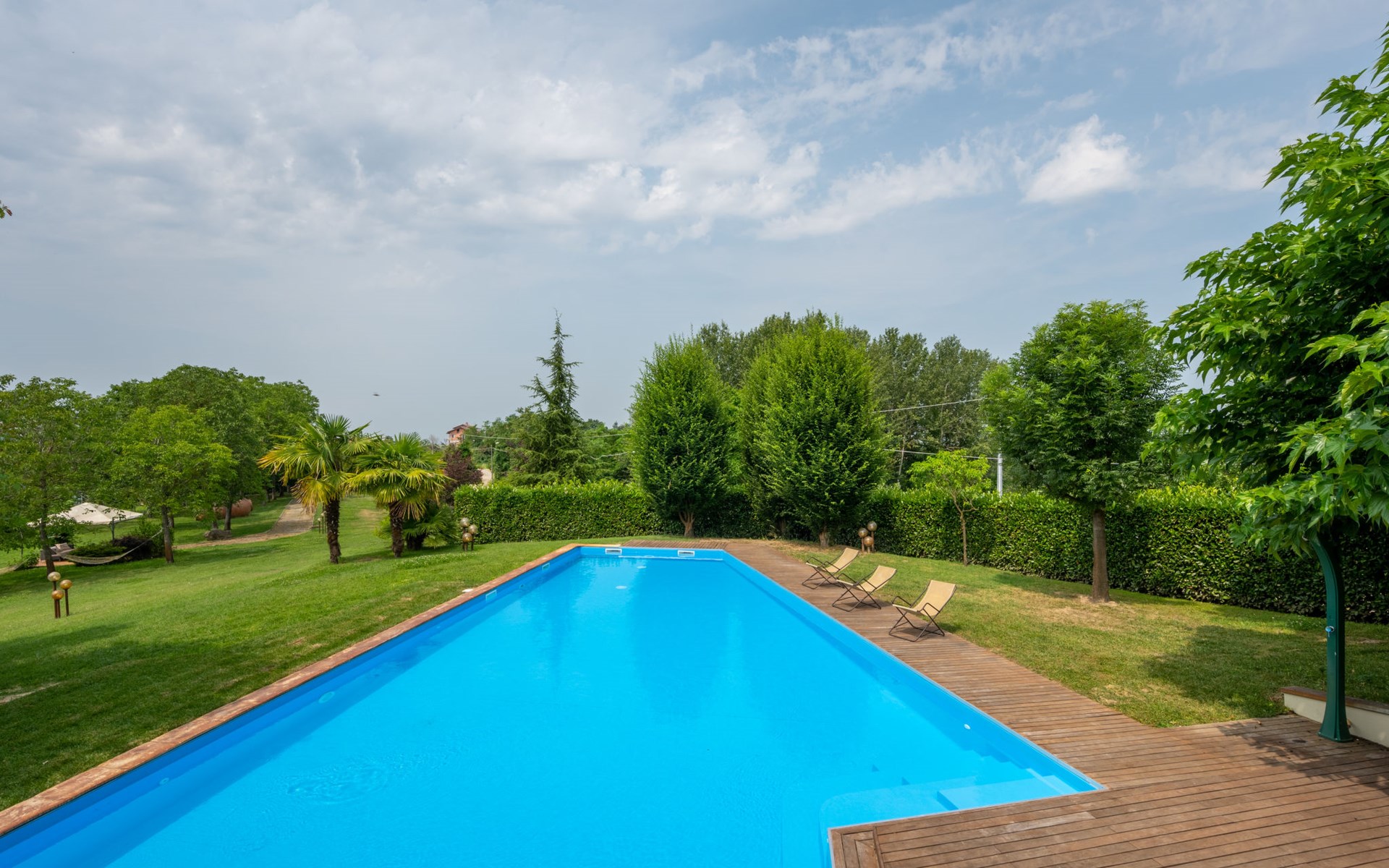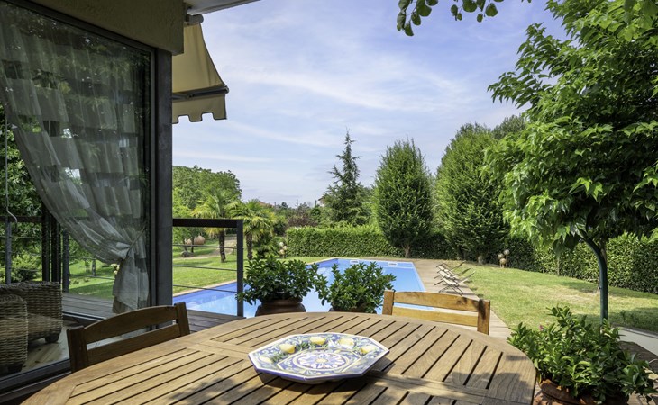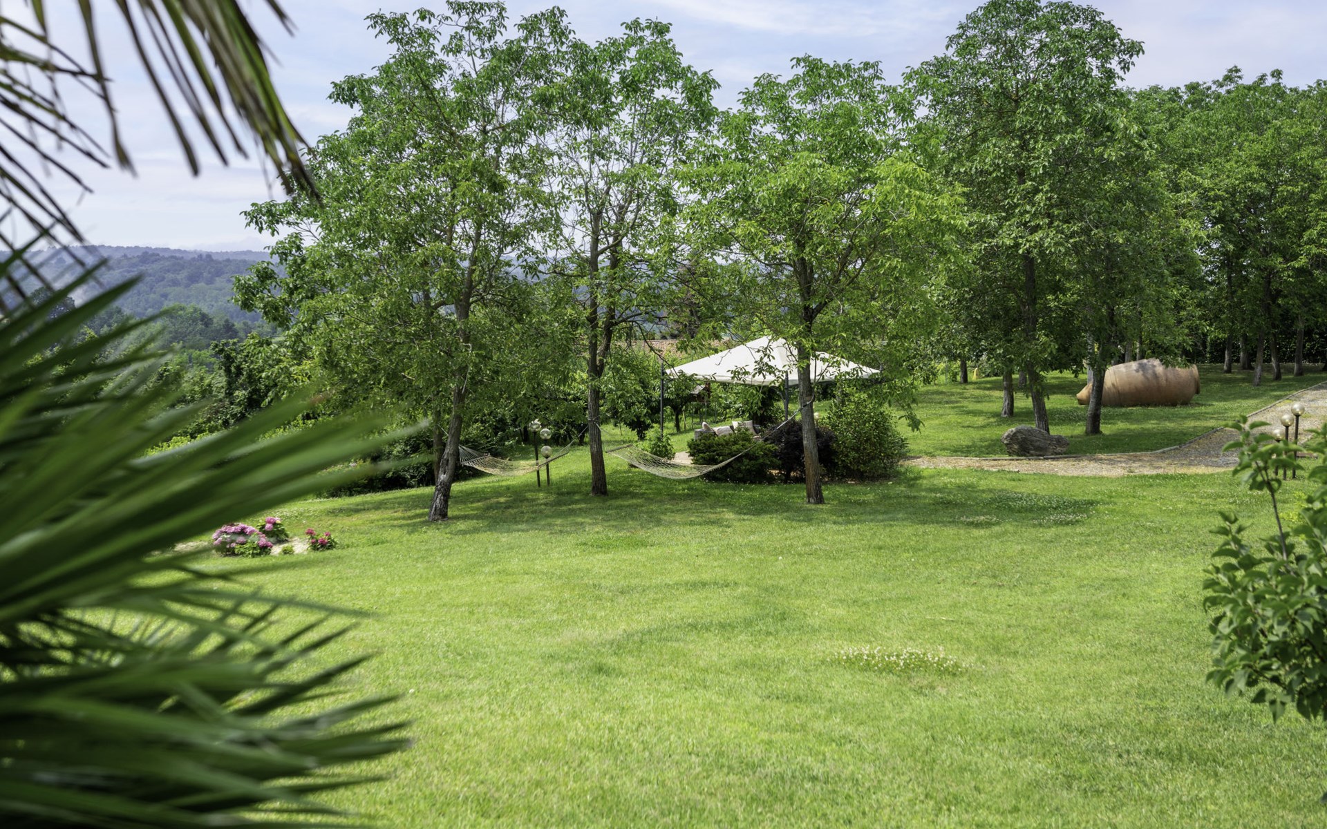 3-family house. In the district of San Grato 5 km from the centre of Monteu Roero, in an elevated position. Private: park (fenced), flowers and trees, swimming pool (14 x 6 m, depth 110 cm, seasonal availability: 01.May. - 30.Sep.). Shower/WC in the pool area, parking (for 2 cars) at the house. Restaurant, bar 500 m, bus stop 2 km. Nearby attractions: Alba 20 km, Rocche del Roero. Please note: car recommended. The owner lives on the same property.