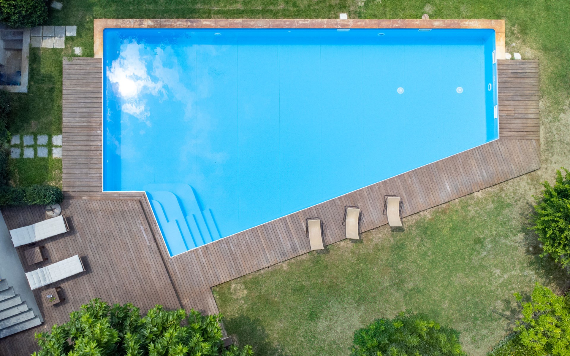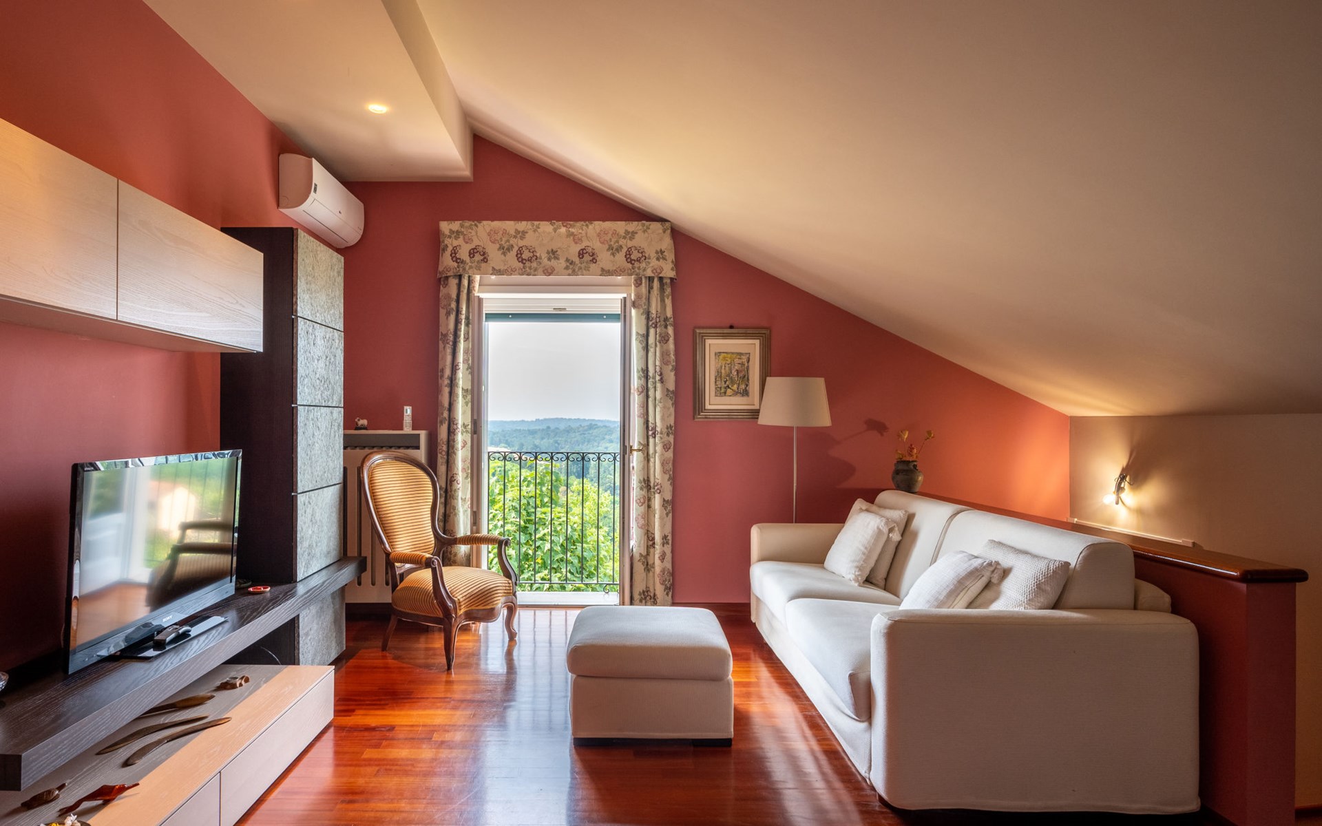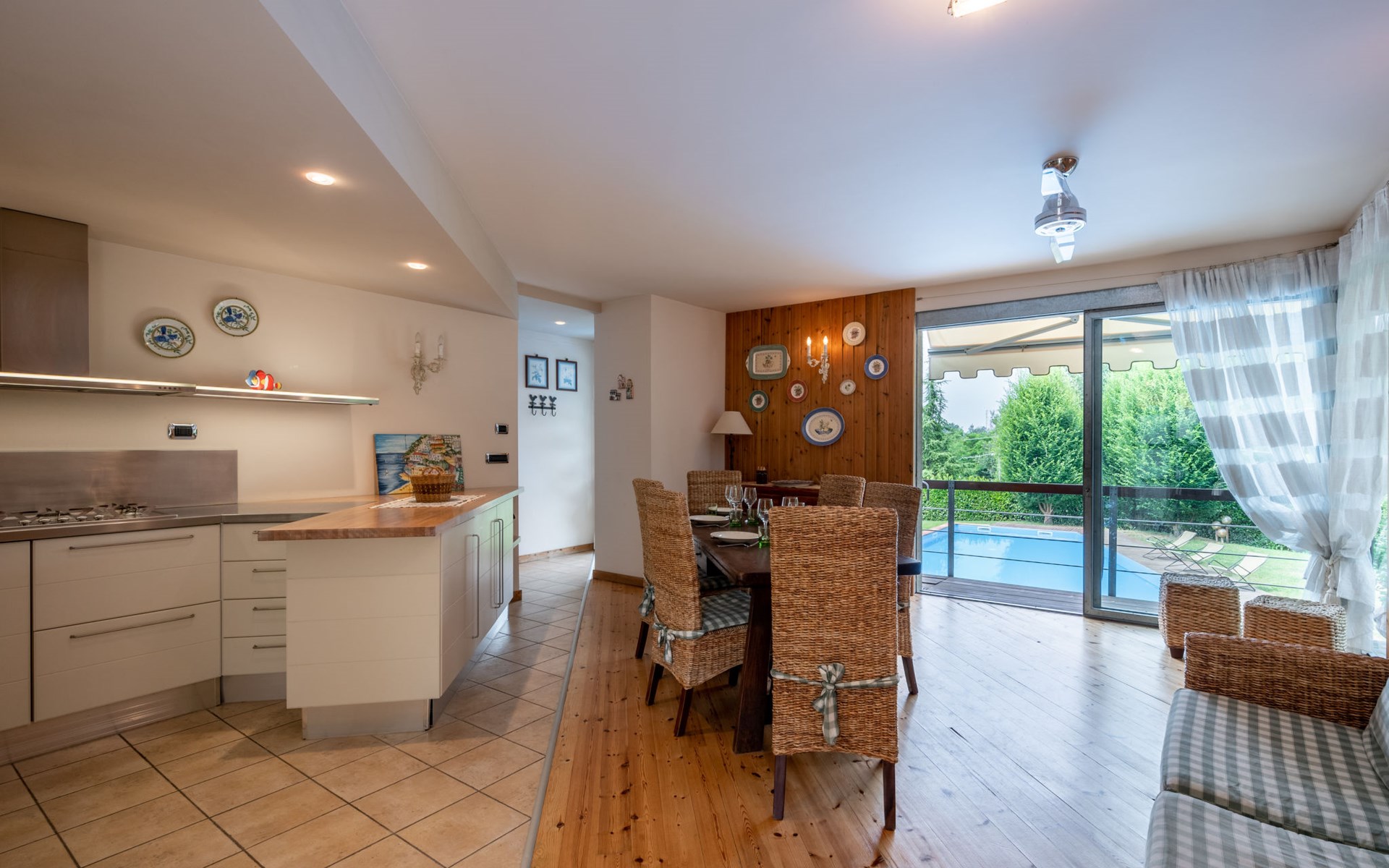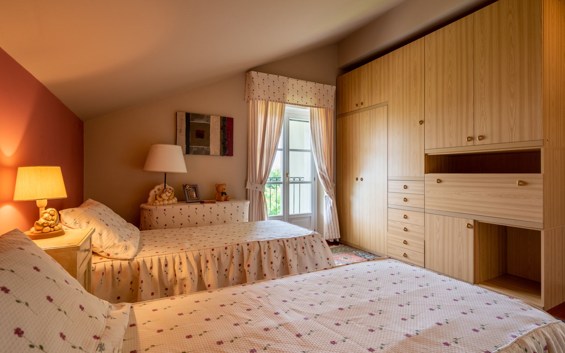 3-family house. In the district of San Grato 5 km from the centre of Monteu Roero, in an elevated position. Private: park (fenced), flowers and trees, swimming pool (14 x 6 m, depth 110 cm, seasonal availability: 01.May. - 30.Sep.). Shower/WC in the pool area, parking (for 2 cars) at the house. Restaurant, bar 500 m, bus stop 2 km. Nearby attractions: Alba 20 km, Rocche del Roero. Please note: car recommended. The owner lives on the same property.