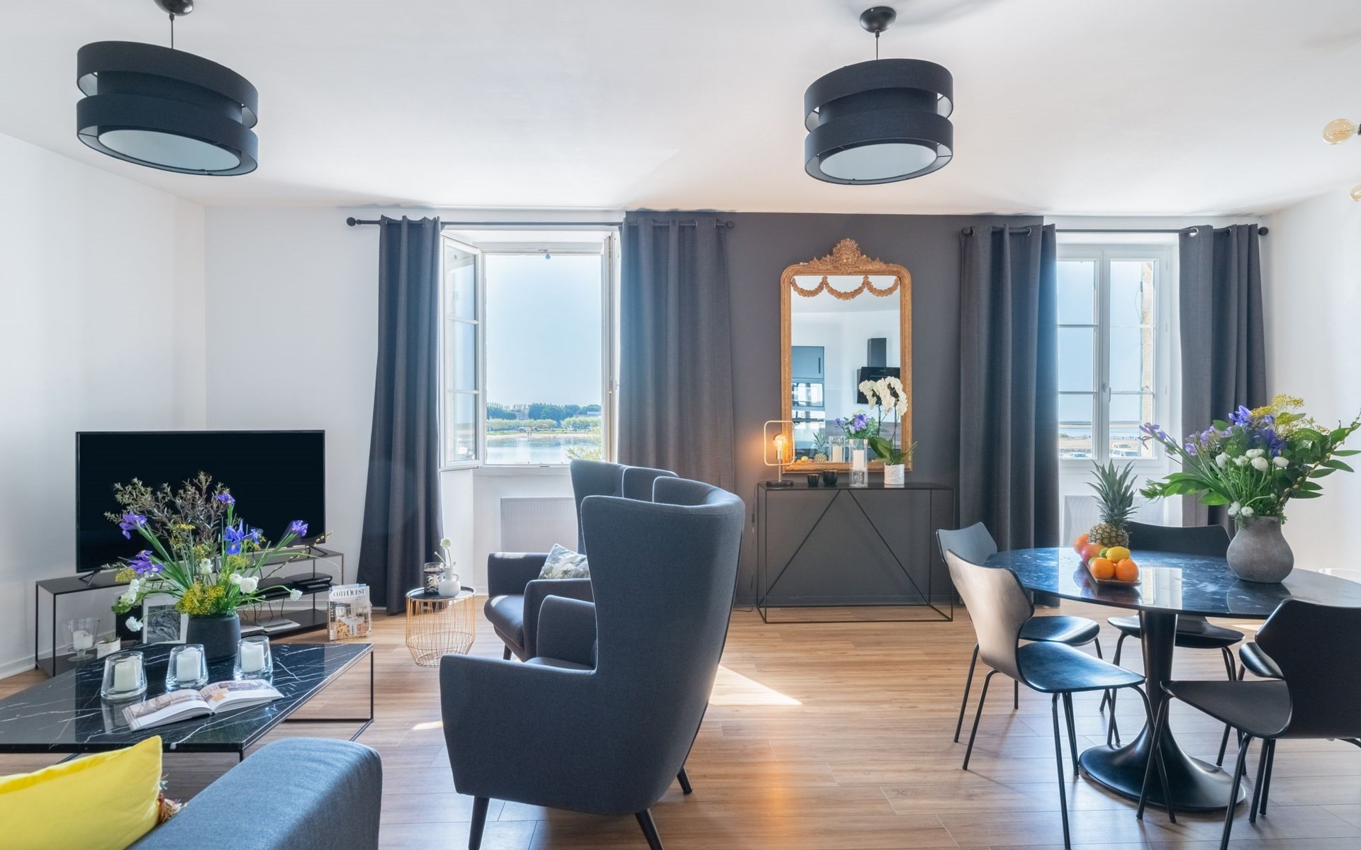 Historical manor house "Ô de Mer", 3 storeys, from the 19th century, renovated in 2018. 100 m from the centre of Étel, 5 km from the centre of Belz, 15 km from the centre of Auray, 50 m from the sea. For shared use: property (fenced). In the house: storage room for bicycles. Parking on the premises. Shop, bus stop 100 m, sandy beach 150 m, lagoon 50 m. Marina 500 m, sailing school 150 m. Nearby attractions: Ria d'Etel (Bras de Mer) 50 m, Carnac (Megalithes) 15 km, Presqu'île de Quiberon 20 km, La Trinité sur Mer 20 km, Auray-Le Bono-Golfe du Morbihan 23 km, Vannes 38 km. Hiking paths: GR34.