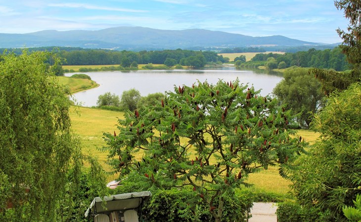 Beautiful chalet "Karasova II", 400 m a.s.l., detached, surrounded by meadows and fields. 500 m from the centre of Dehtáře, on the outskirts, 6 km from the centre of Holašovice, 15 km from the centre of Hluboká nad Vltavou, in a quiet, sunny position, 150 m from the lake. Private: property 450 m2 (fenced), garden lawn and trees. Outdoor shower, terrace, garden furniture. In the house: washing machine. 1 km long bumpy, narrow motor access. Parking on the premises. Shop 2 km, supermarket 15 km, restaurant 2 km, pub garden 500 m, bus stop "Dehtáře" 500 m, railway station "Netolice" 11 km, outdoor swimming pool 15 km, indoor swimming pool 15 km, bathing lake "Dehtáře" 150 m. Golf course (18 hole) 15 km, riding stable 2 km, walking paths from the house 10 m, cycle lane 10 m. Nearby attractions: UNESCO Holašovice 6 km, Hluboká nad Vltavou 15 km, České Budějovice 15 km, Dívčí kámen, lanovka na rozhlednu Kleť 18 km, krokodýlí ZOO Protivín 30 km, Český Krumlov 36 km. Well-known lakes can easily be reached: Dehtáře 150 m.