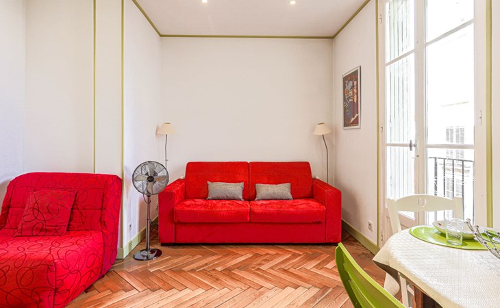 Apartment house "France", 6 storeys. In the district of Carré d'Or, in the centre of Nice, 250 m from the sea, 250 m from the beach, in a pedestrian area. In the house: lift. Shop, grocery 100 m, supermarket 100 m, shopping centre 1 km, restaurant 70 m, pedestrian zone 250 m, 10 minute walk to the centre, bus stop "Congrès/Promenade" 260 m, shingle beach "Neptune" 240 m. Golf course (18 hole) 18 km. Nearby attractions: Place Masséna 900 m, Vieux-Nice 1.5 km, Château de Nice 2.2 km, Musée d'Art Moderne 2 km, Marineland Antibes 17 km, Monaco 20 km. Well-known lakes can easily be reached: Saint-Cassien 60 km. Hiking paths: Col de Vence 30 km, Parc National du Mercantour 52 km.