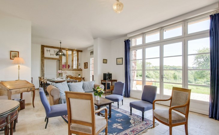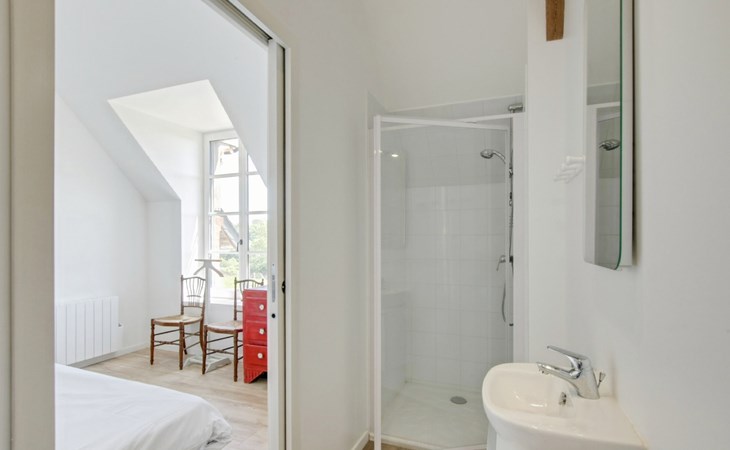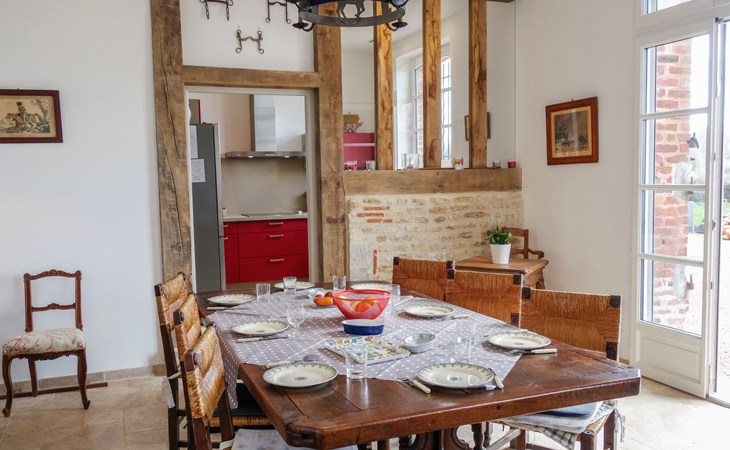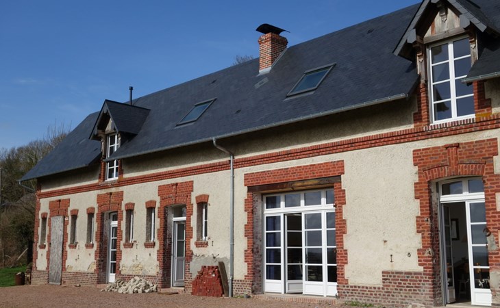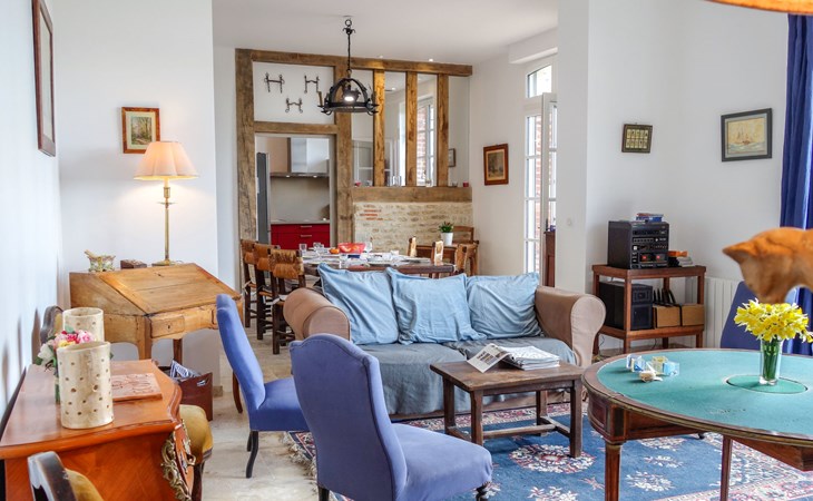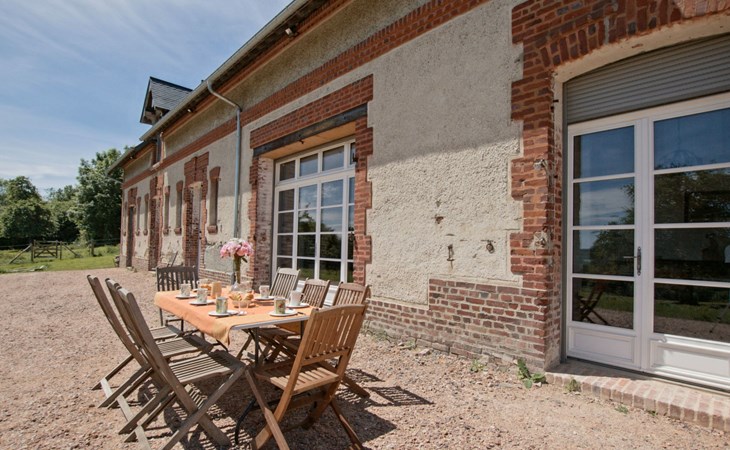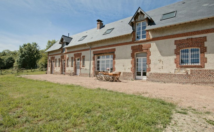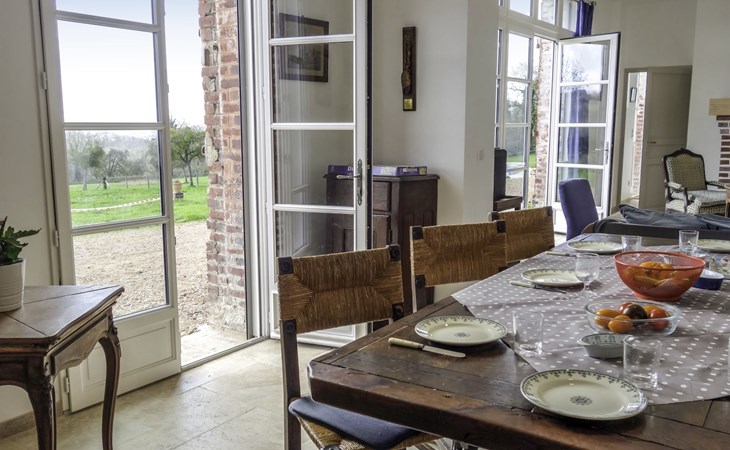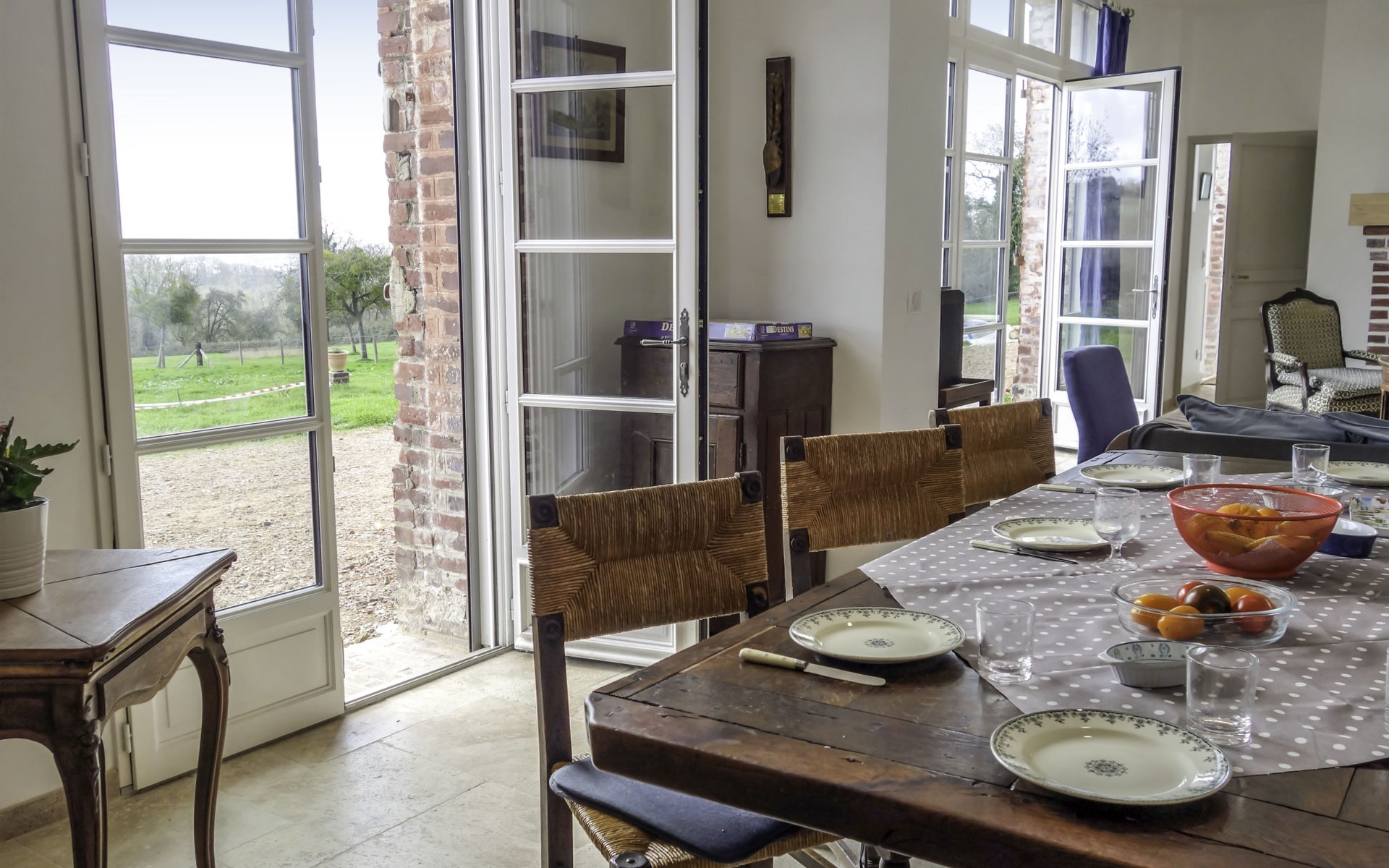 Trouville sur Mer: Cosy, comfortable farmhouse "Les écuries de Callenville", 2 storeys, renovated in 2018, surrounded by fields. In the resort, 1.9 km from the centre, in a sunny position on a slope, 2.1 km from the sea, 2.1 km from the beach, south facing position. Private: natural state property (fenced) with lawn 1'500 m2 trees, parking (for 2 cars) on the premises. Shop 1.9 km, grocery 2 km, supermarket 4 km, bakery 1.5 km, 20 minute walk to the centre, railway station "de Deauville Trouville sur Mer" 1.9 km, sandy beach 2.3 km, thermal baths "cures marines de Trouville" 2.4 km. Golf course (18 hole) 6 km, sailing school 2.8 km, tennis 2.6 km. Nearby attractions: casino de Trouville sur Mer 2.3 km, hippodrome de Deauville Clairefontaine 5.2 km, Honfleur, village normand 14 km, Memorial de Caen 55 km, Arromanches plages du débarquement 87 km. Please note: car recommended. The keys‘ handover takes place by the agency Interhome in Deauville, 3 km.