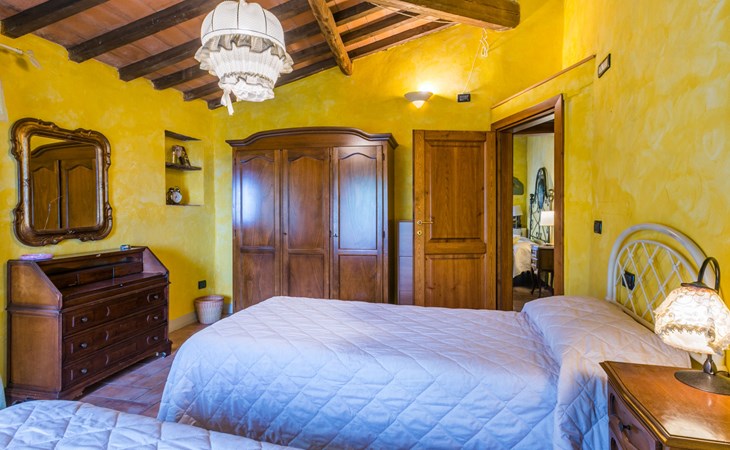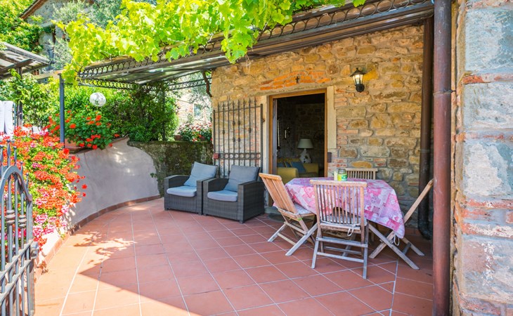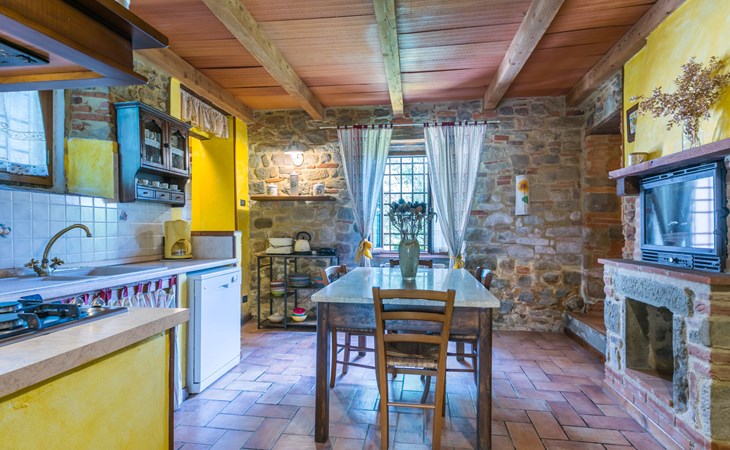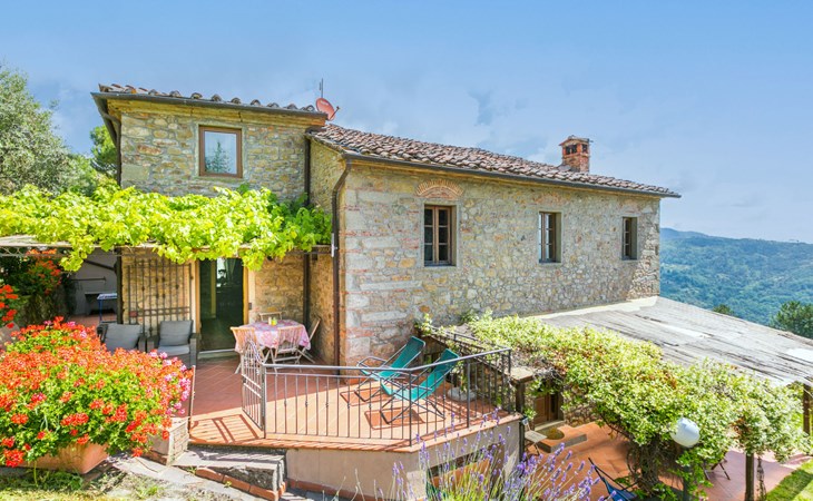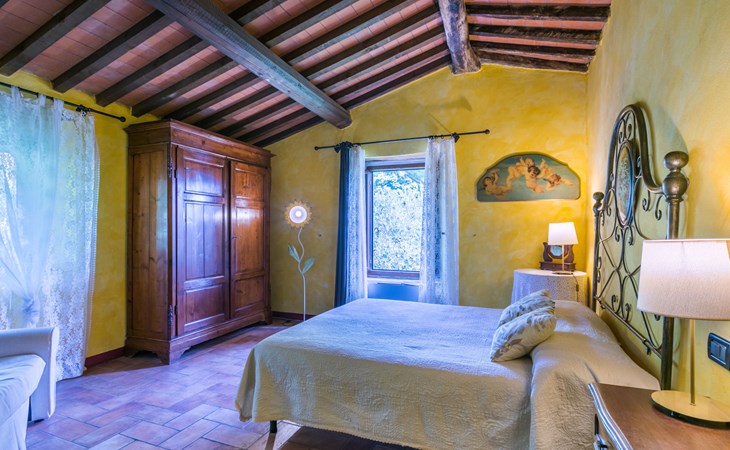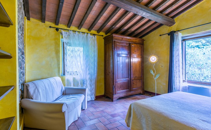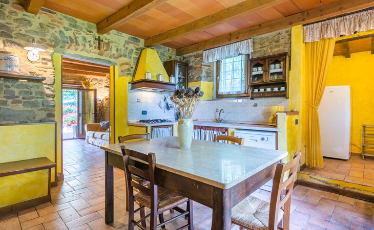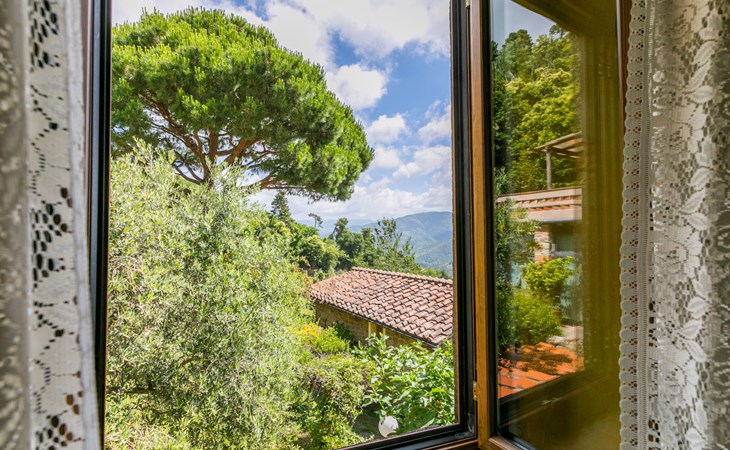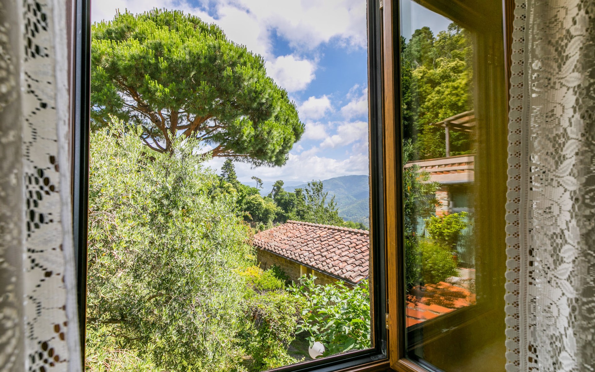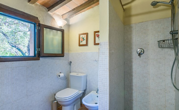 Agriturismo "La Cupola", 500 m a.s.l., surrounded by trees and vineyards. 3 houses in the residence. 4 apartments in the residence. 5.5 km from the centre of Pescia, 20 km from the centre of Lucca, 45 km from the centre of Pisa, in a secluded position on a slope, 57 km from the sea, in the countryside. For shared use: property 40'000 m2, terraced garden (not fenced) with plants, meadow, swimming pool (19 x 8 m, depth 120 - 160 cm, seasonal availability: 26.Apr. - 27.Sep.). Children's pool, pergola, garden furniture, barbecue. In the house: WiFi, central heating system, washing machine (for shared use), heating to be paid on the spot, heating available only from 01.Nov. - 30.Mar.. 600 m long steep motor access (via unmade road). Parking on the premises. E-charging station. Supermarket 5.5 km, bus stop 3 km, sandy beach "Viareggio" 57 km. Golf course (18 hole) 14 km. Nearby attractions: Collodi 9 km, Montecarlo 11 km, Montecatini Terme 13 km, Vinci, Pistoia 32 km, San Miniato 38 km. Residence with electric gates.