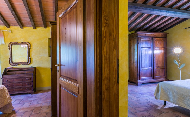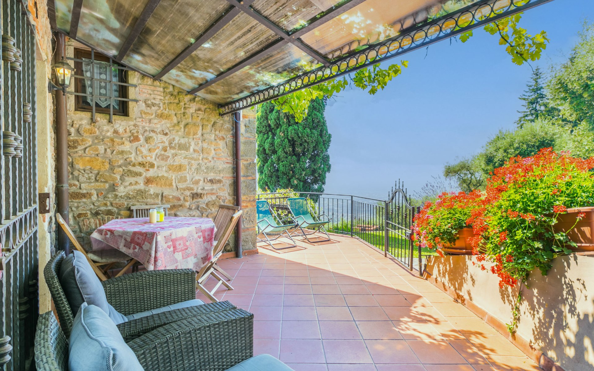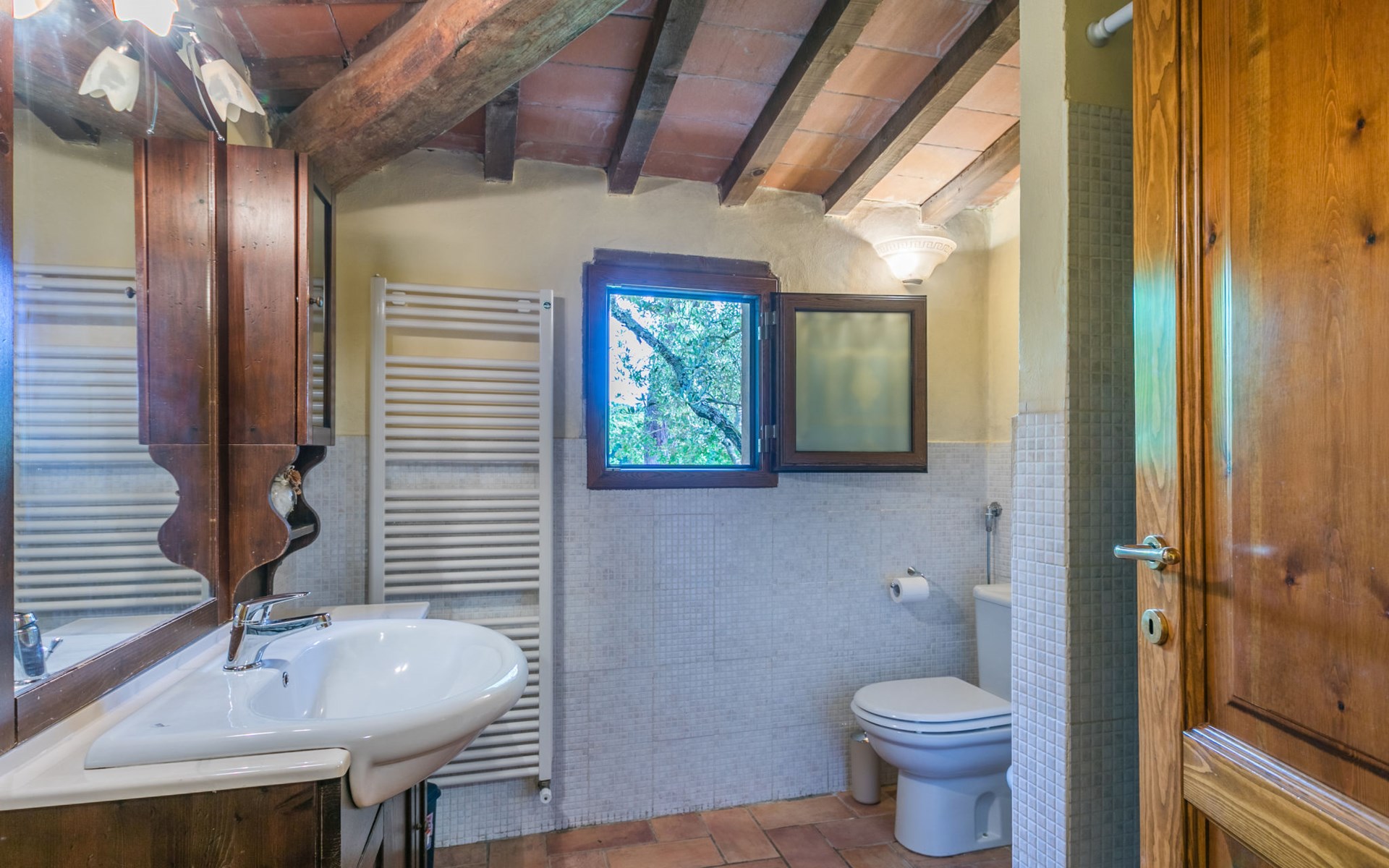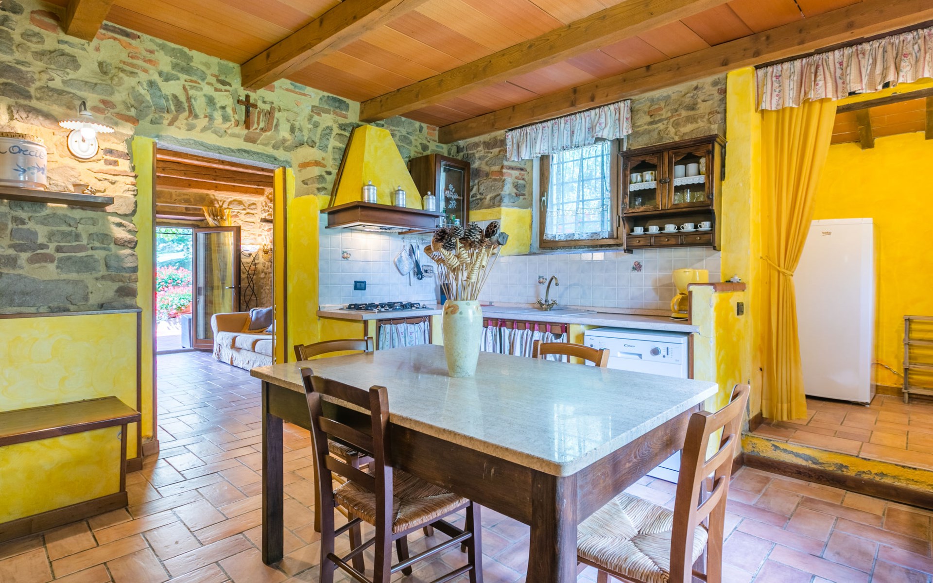 Agriturismo "La Cupola", 500 m a.s.l., surrounded by trees and vineyards. 3 houses in the residence. 4 apartments in the residence. 5.5 km from the centre of Pescia, 20 km from the centre of Lucca, 45 km from the centre of Pisa, in a secluded position on a slope, 57 km from the sea, in the countryside. For shared use: property 40'000 m2, terraced garden (not fenced) with plants, meadow, swimming pool (19 x 8 m, depth 120 - 160 cm, seasonal availability: 26.Apr. - 27.Sep.). Children's pool, pergola, garden furniture, barbecue. In the house: WiFi, central heating system, washing machine (for shared use), heating to be paid on the spot, heating available only from 01.Nov. - 30.Mar.. 600 m long steep motor access (via unmade road). Parking on the premises. E-charging station. Supermarket 5.5 km, bus stop 3 km, sandy beach "Viareggio" 57 km. Golf course (18 hole) 14 km. Nearby attractions: Collodi 9 km, Montecarlo 11 km, Montecatini Terme 13 km, Vinci, Pistoia 32 km, San Miniato 38 km. Residence with electric gates.