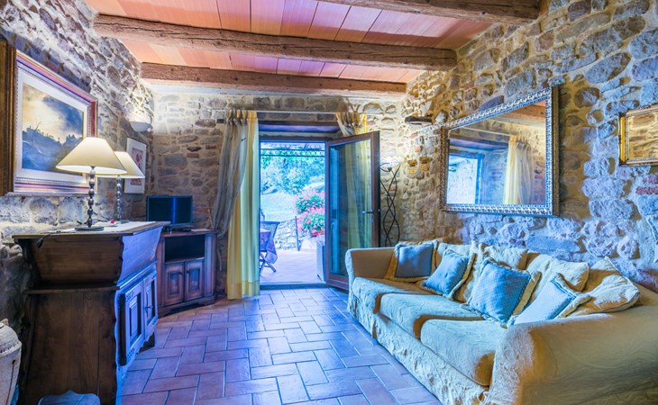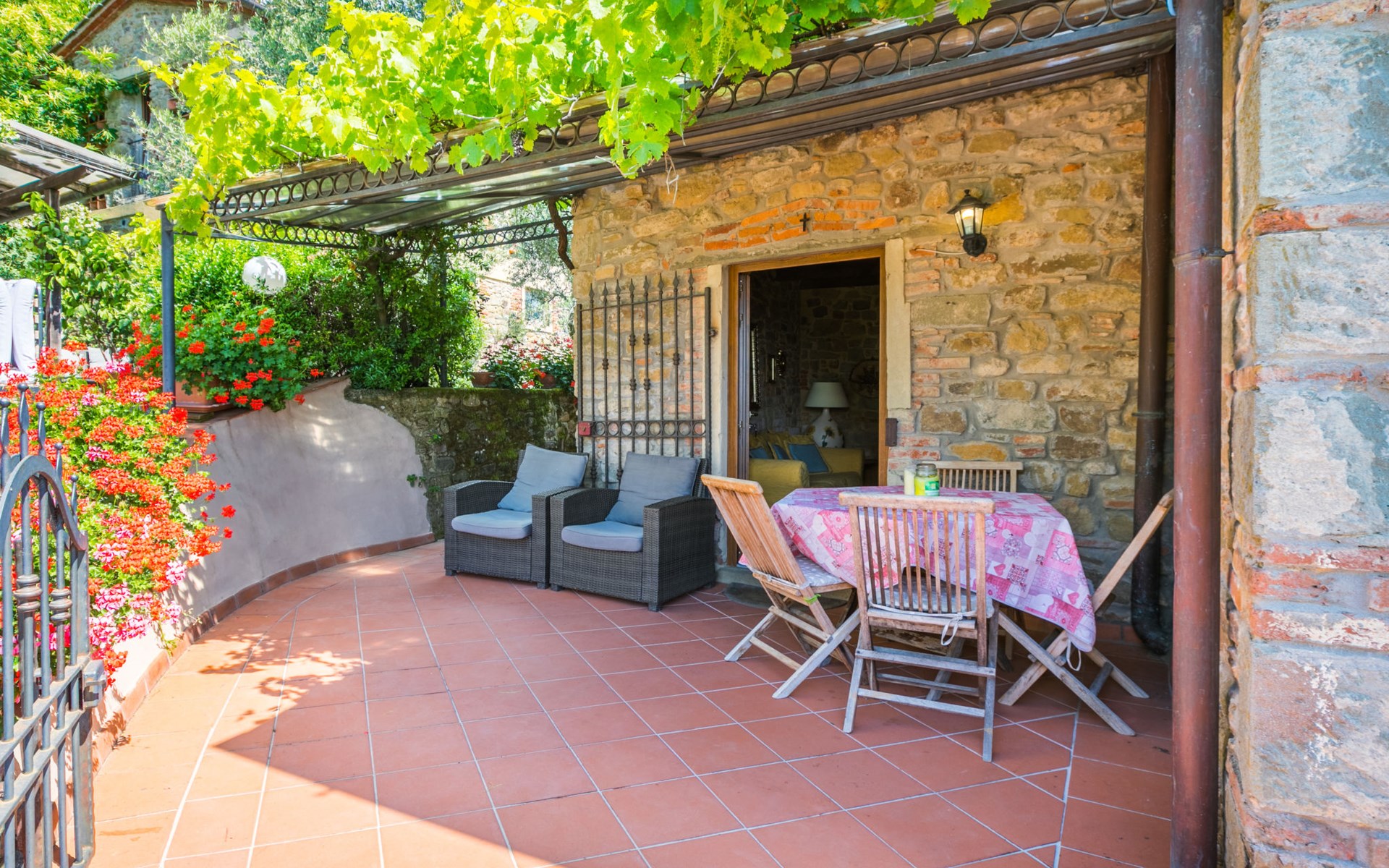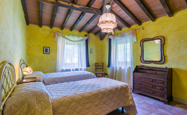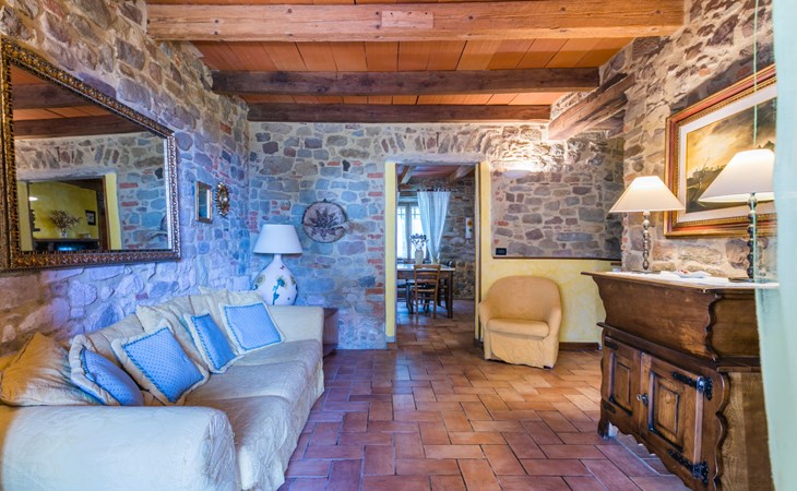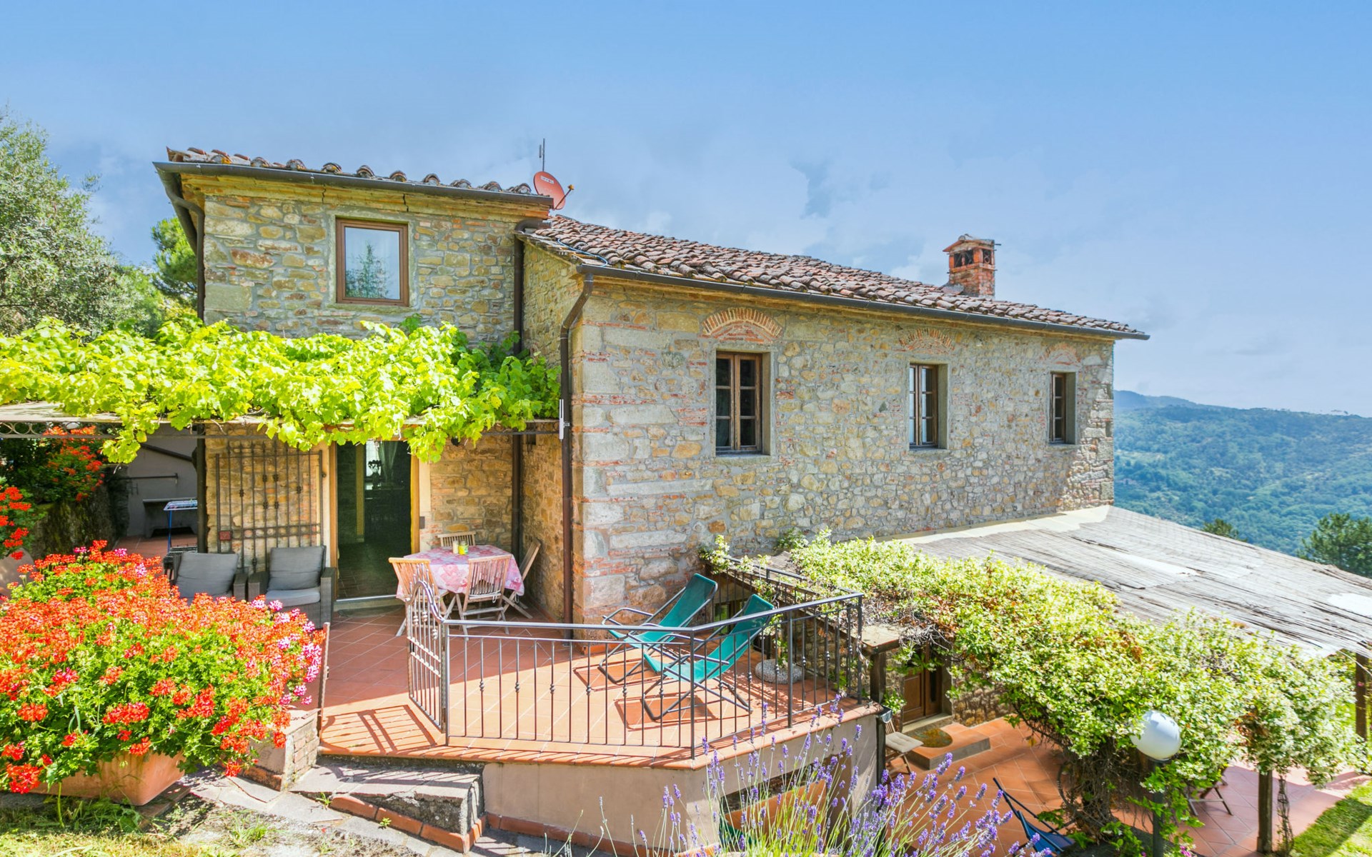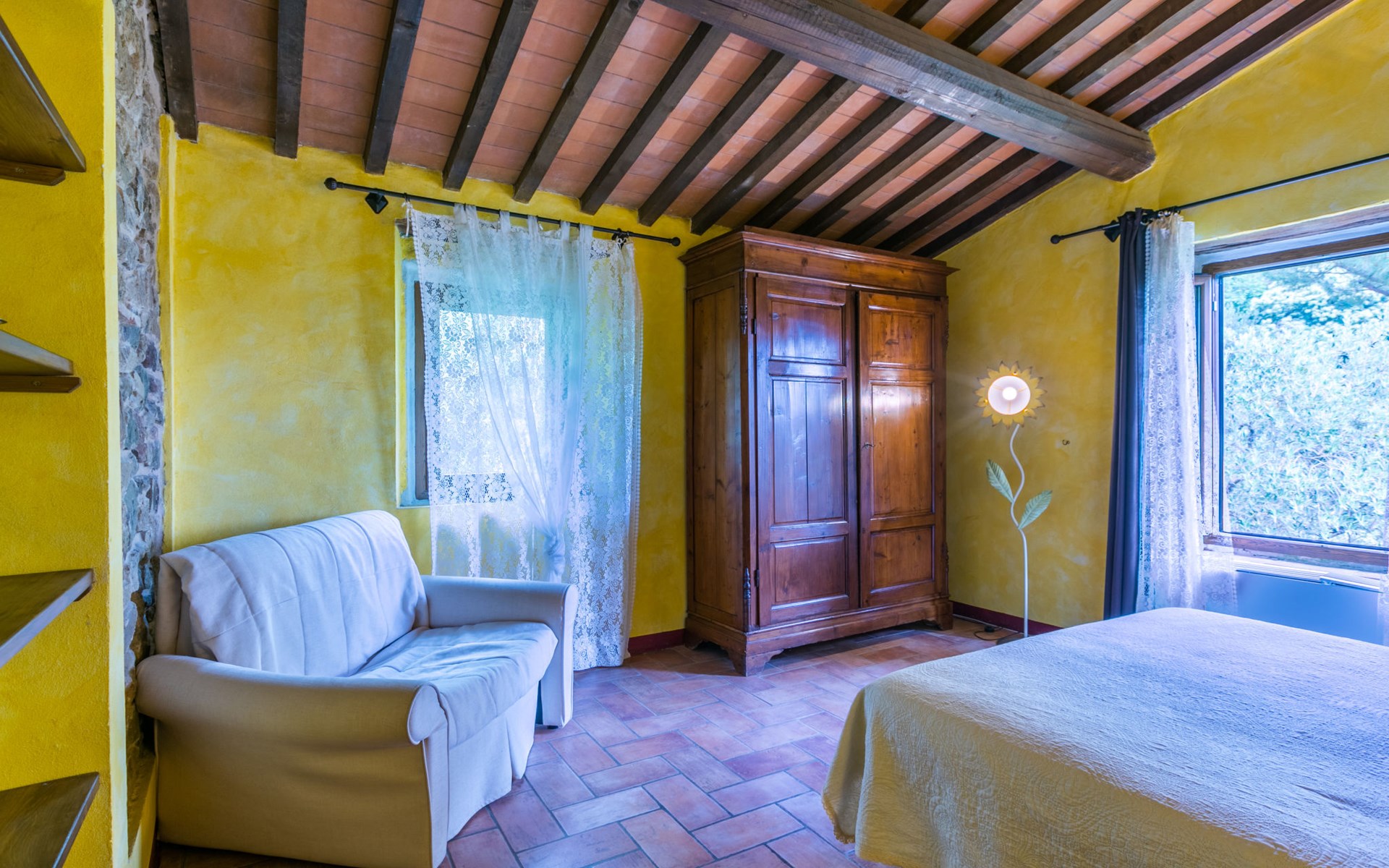 Agriturismo "La Cupola", 500 m a.s.l., surrounded by trees and vineyards. 3 houses in the residence. 4 apartments in the residence. 5.5 km from the centre of Pescia, 20 km from the centre of Lucca, 45 km from the centre of Pisa, in a secluded position on a slope, 57 km from the sea, in the countryside. For shared use: property 40'000 m2, terraced garden (not fenced) with plants, meadow, swimming pool (19 x 8 m, depth 120 - 160 cm, seasonal availability: 26.Apr. - 27.Sep.). Children's pool, pergola, garden furniture, barbecue. In the house: WiFi, central heating system, washing machine (for shared use), heating to be paid on the spot, heating available only from 01.Nov. - 30.Mar.. 600 m long steep motor access (via unmade road). Parking on the premises. E-charging station. Supermarket 5.5 km, bus stop 3 km, sandy beach "Viareggio" 57 km. Golf course (18 hole) 14 km. Nearby attractions: Collodi 9 km, Montecarlo 11 km, Montecatini Terme 13 km, Vinci, Pistoia 32 km, San Miniato 38 km. Residence with electric gates.