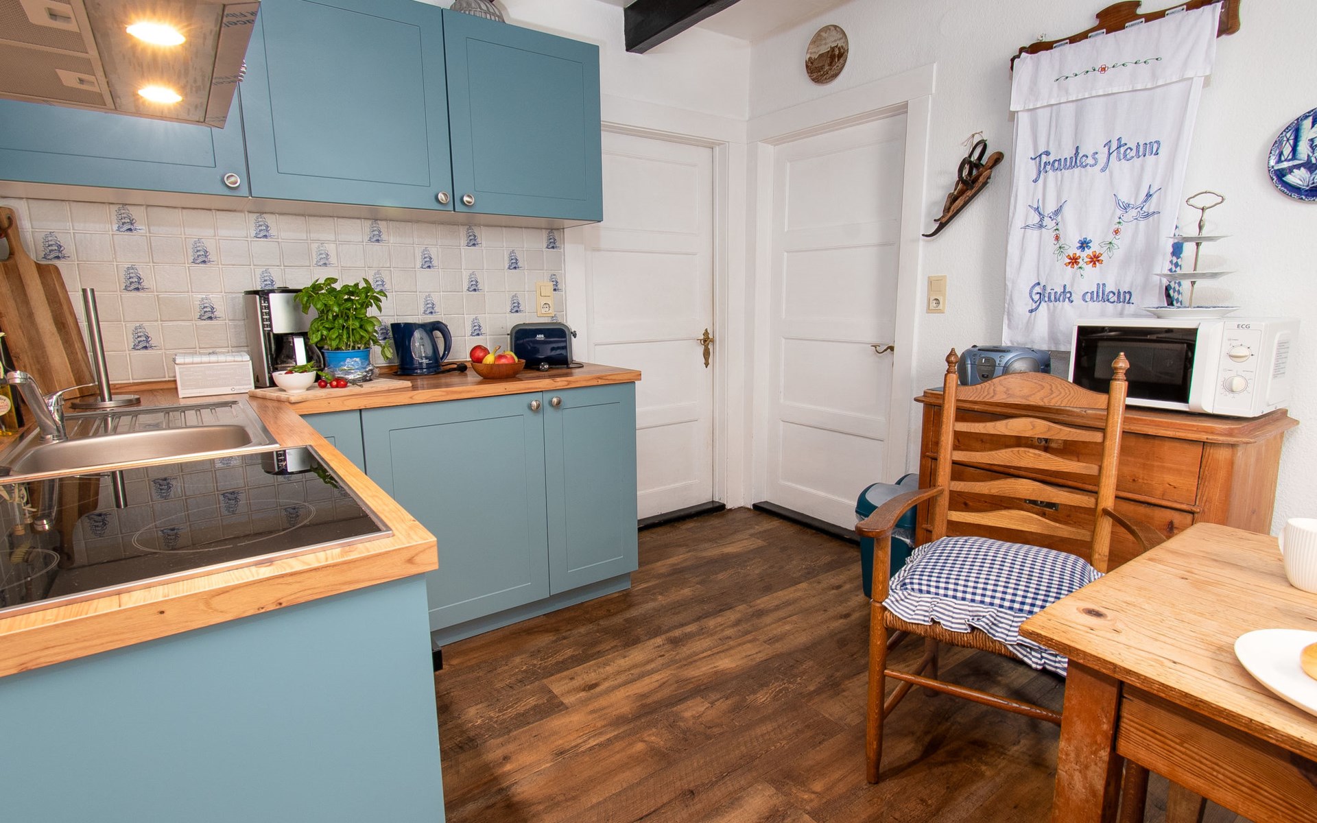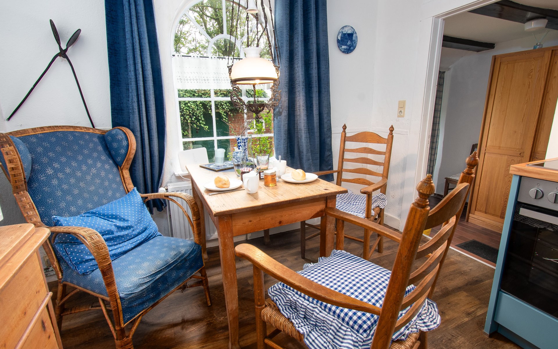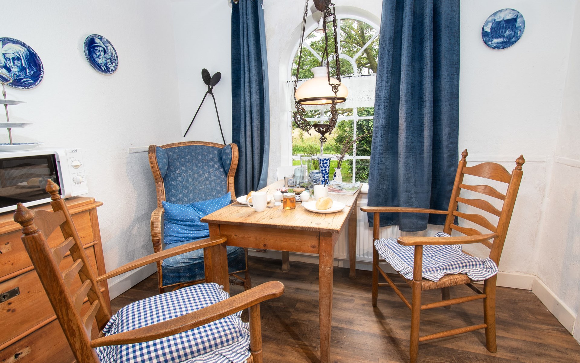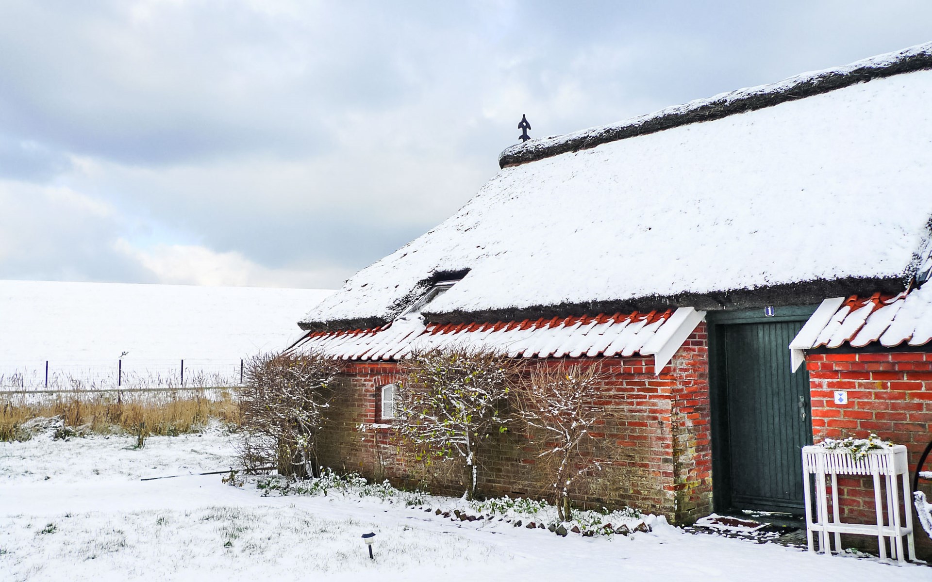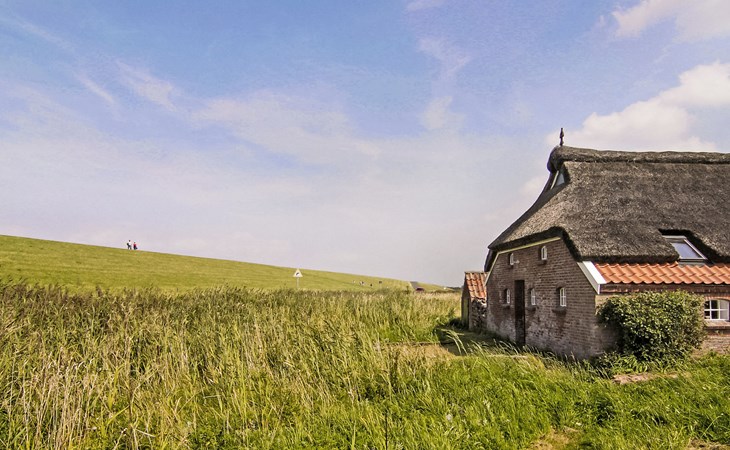 Rustic, historical semi-detached house "Itzendorfer Rott", built in 1834, surrounded by meadows and fields. On the outskirts, 2.5 km from the centre, in a quiet position, 50 m from the sea, 2.5 km from the beach, in the countryside. In the house: central heating system. Parking at the house. Supermarket 3.5 km, restaurant 500 m, bakery 2.5 km, café 100 m, railway station "Norddeich Mole" 3.5 km, ferry 3.5 km, sandy beach 2.5 km, outdoor swimming pool 14 km, indoor swimming pool 2.5 km. Golf course (18 hole) 8 km, surf school 2.5 km, tennis 4 km. The holiday house is a rustic, partly thatched farmhouse (under a preservation order) .
