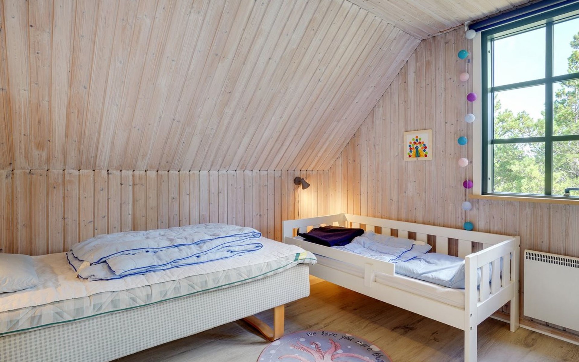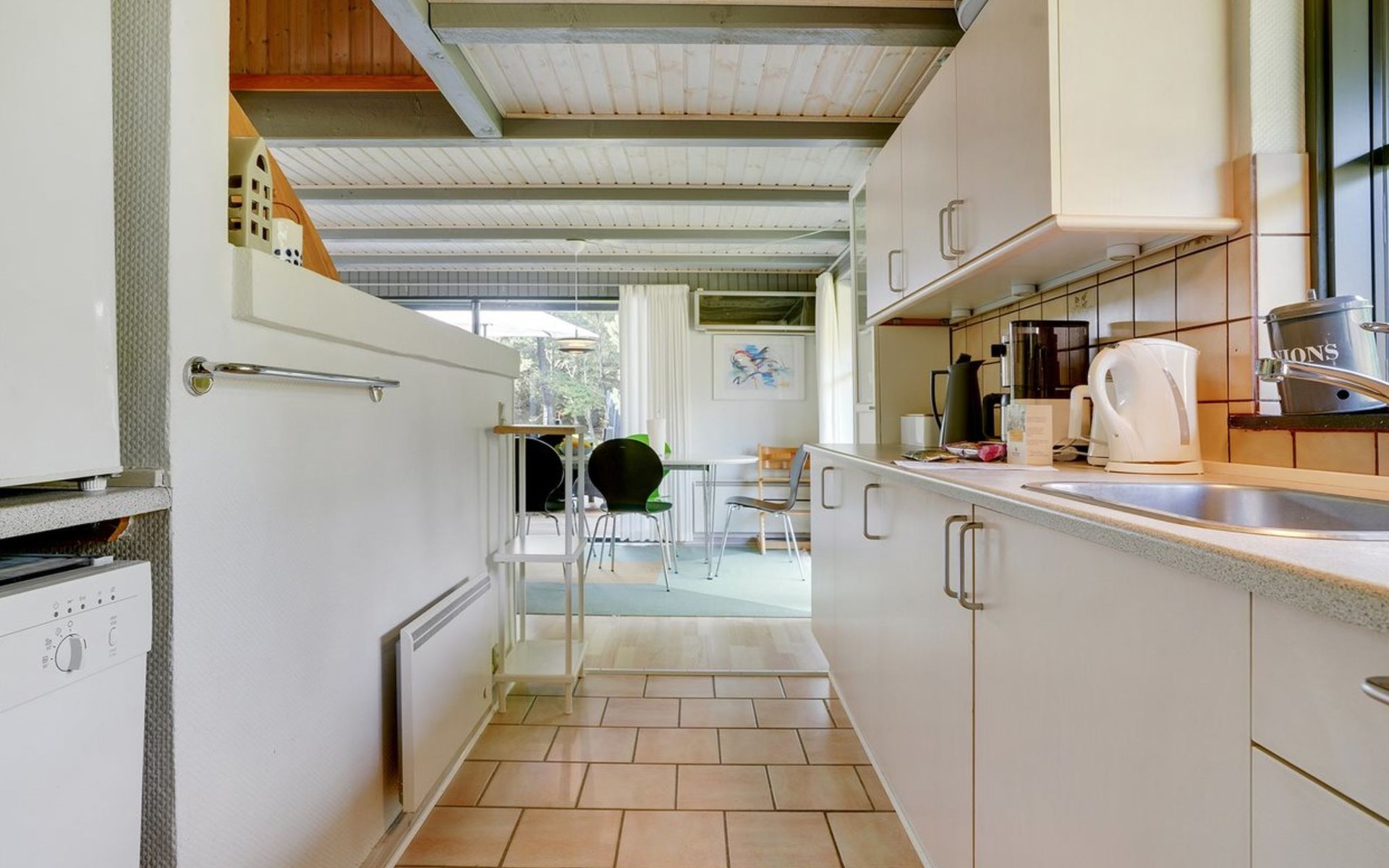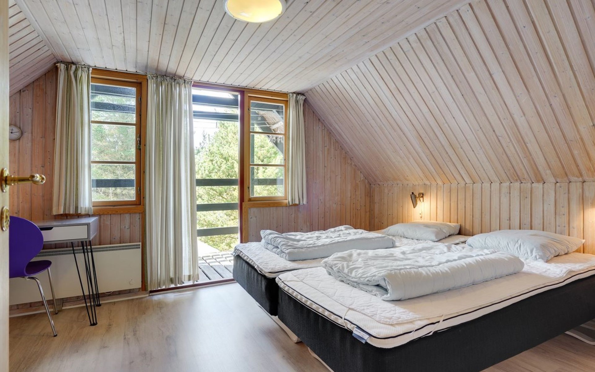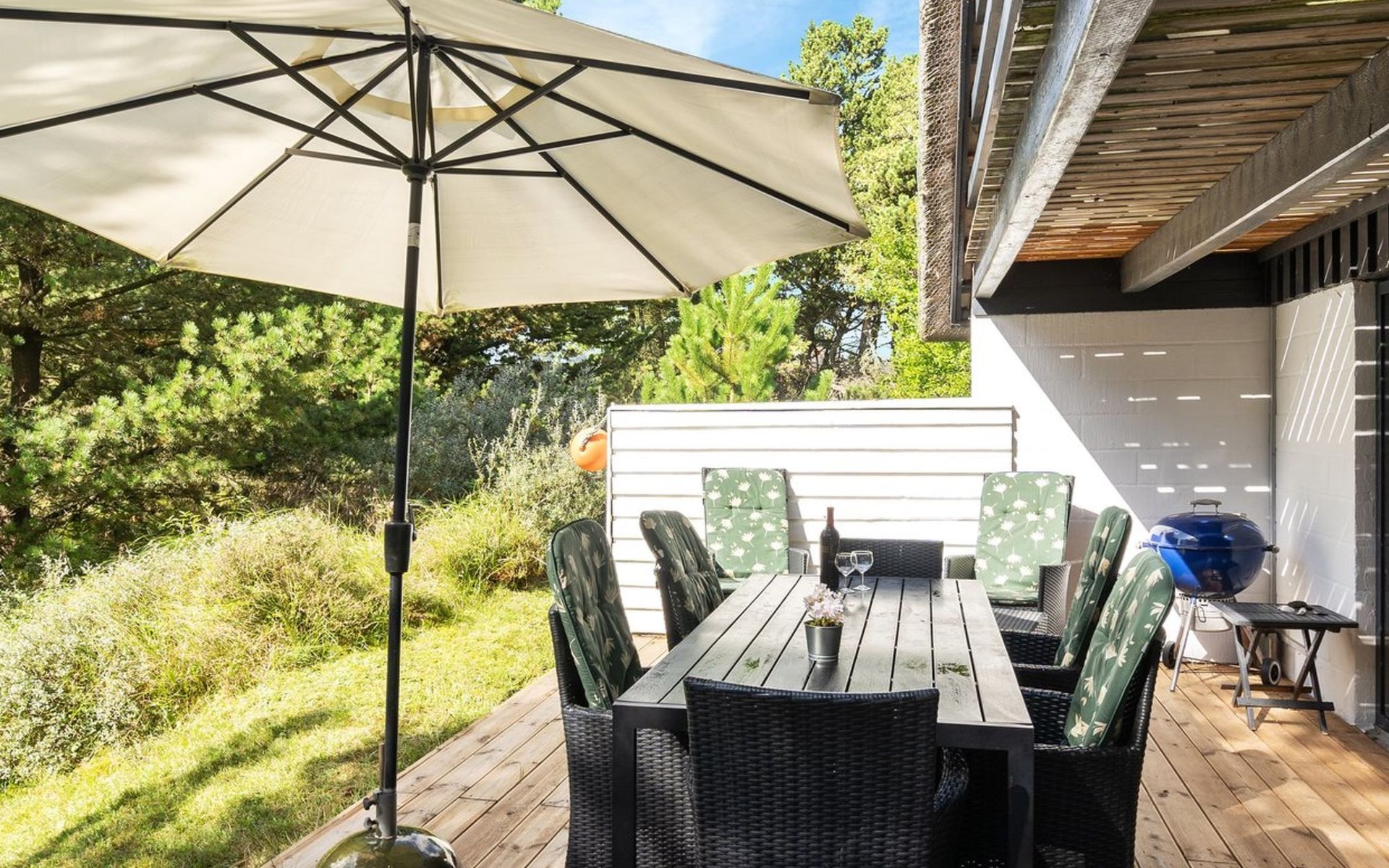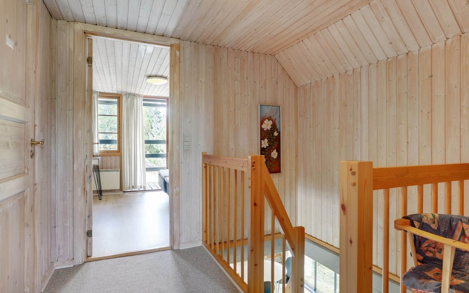 Single-family house, built in 1973. 2.4 km from the sea. Private: natural state property 2'532 m2. Terrace (15 m2), children's playground (swing). In the house: sauna, trampoline, washing machine. Parking at the house. Grocery 700 m. Golf course 850 m.