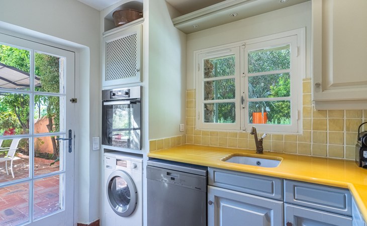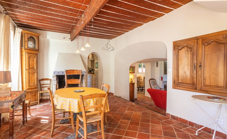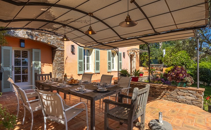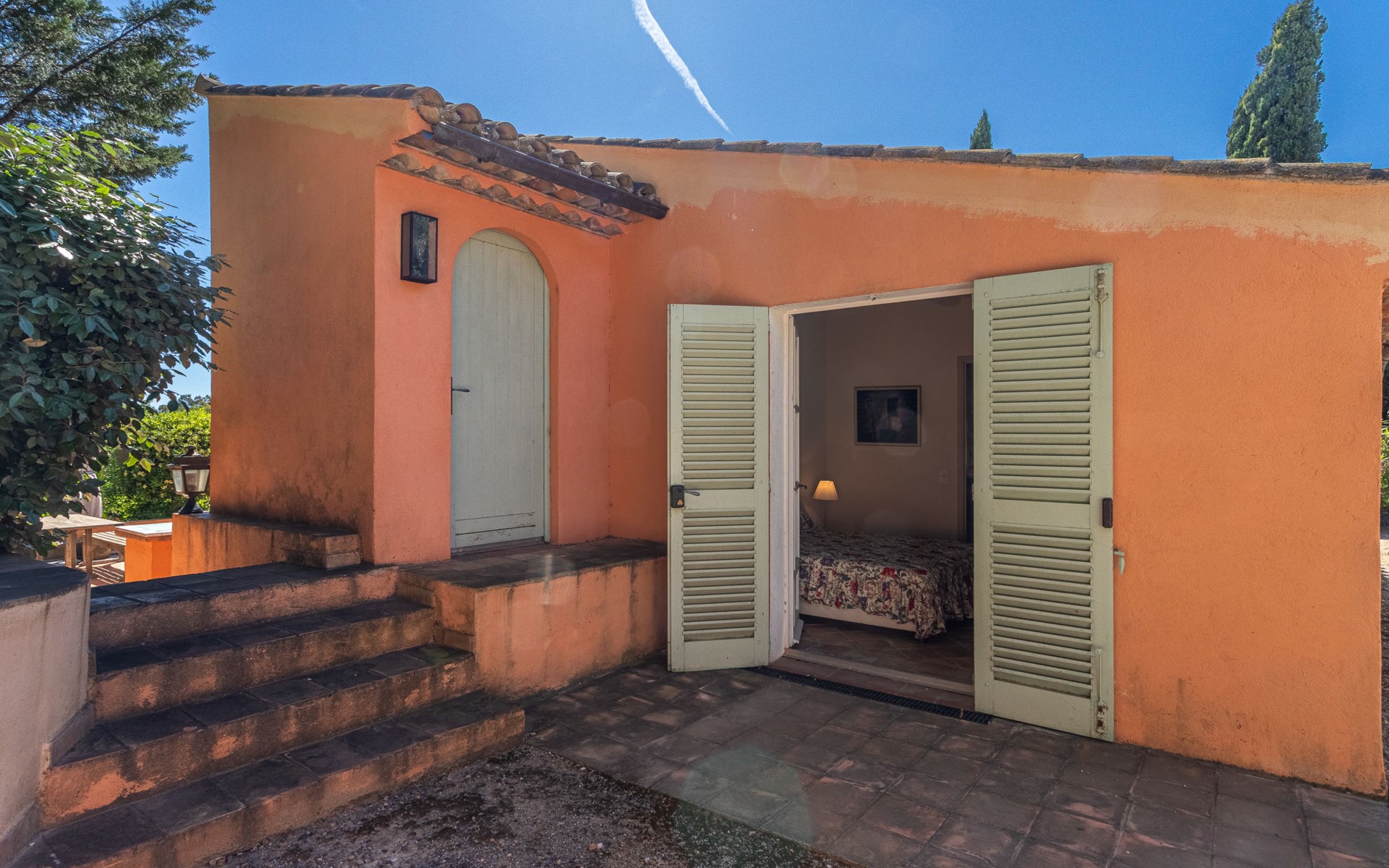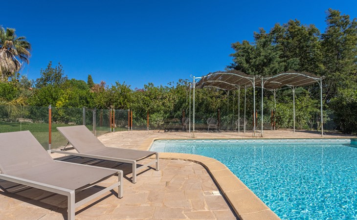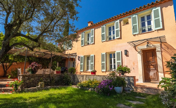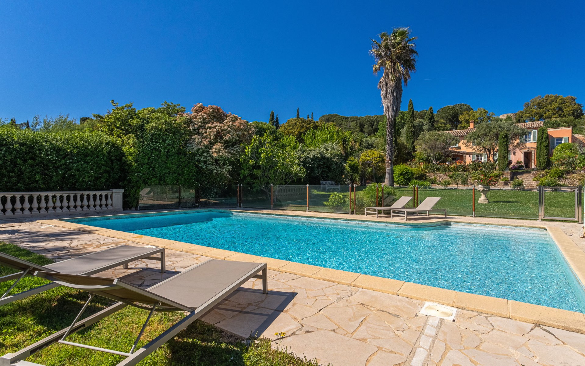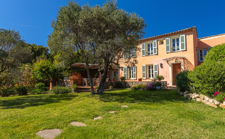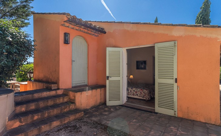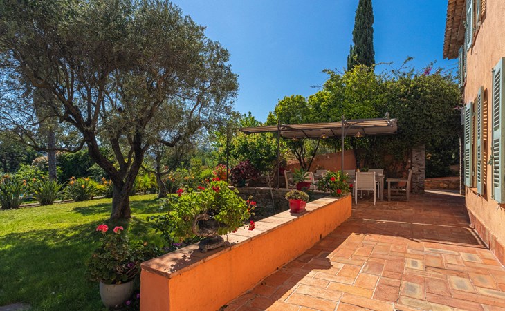 Single-family house "Le Clos du Pierredon", 2 storeys. On the outskirts, 900 m from the centre of Grimaud, 6 km from the sea. Private: well-kept garden with lawn 2'000 m2 trees, swimming pool (6 x 12 m, depth 90 - 220 cm, seasonal availability: 01.May. - 30.Sep.). Parking (for 2 cars). Shop, grocery 900 m, supermarket 3.5 km, restaurant 700 m, bus stop "Font Mourier" 3.8 km, sandy beach "Port Grimaud" 6 km. Sports harbour 6 km, golf course (18 hole) 7 km, sailing school 6 km. Nearby attractions: Port Grimaud 6 km, Parc d'attractions Azur Park 5.5 km, Saint Tropez 13 km, Sainte Maxime 12 km, Cannes 96 km, Nice 110 km. Well-known lakes can easily be reached: Lac de Sainte Croix 95 km. Hiking paths: Massif de l'Esterel 50 km. Please note: car recommended. The keys‘ handover takes place by the agency Interhme in Gassin, 6 km.