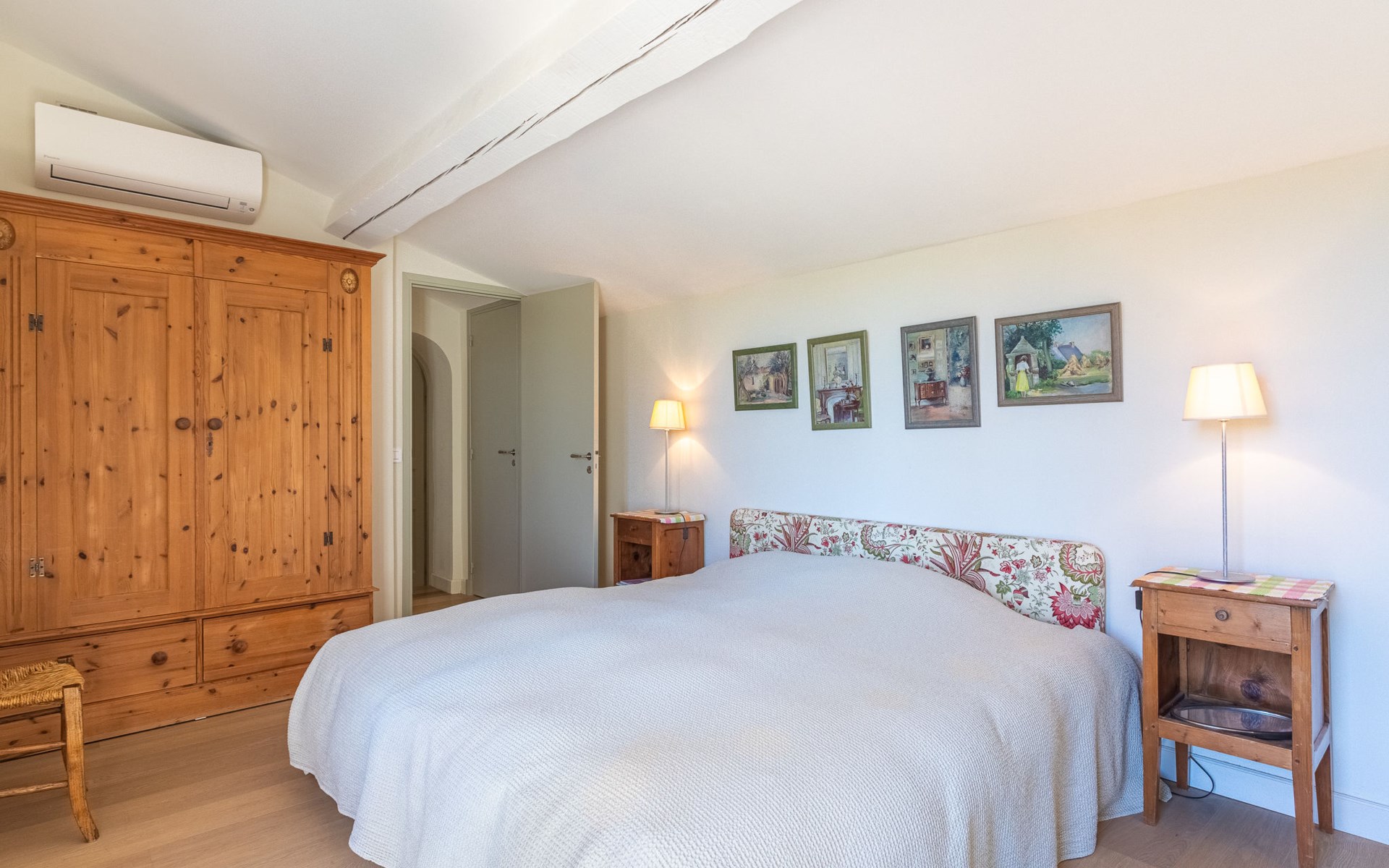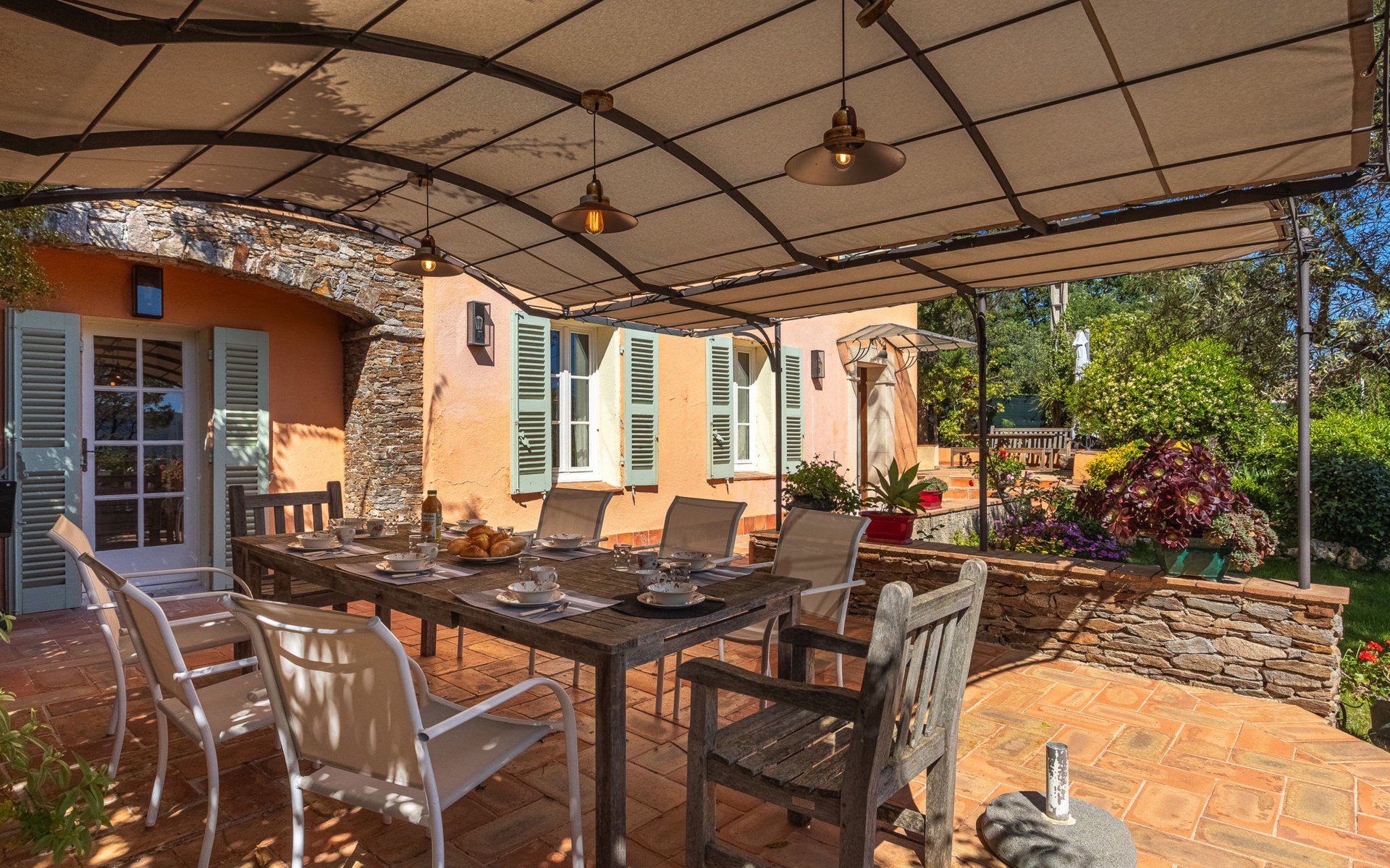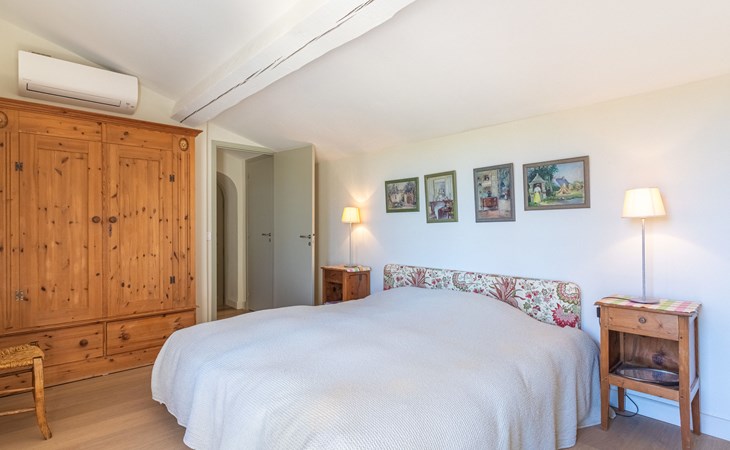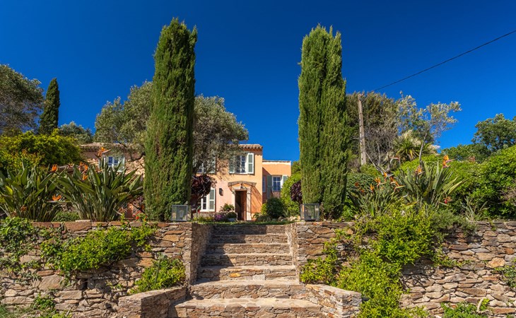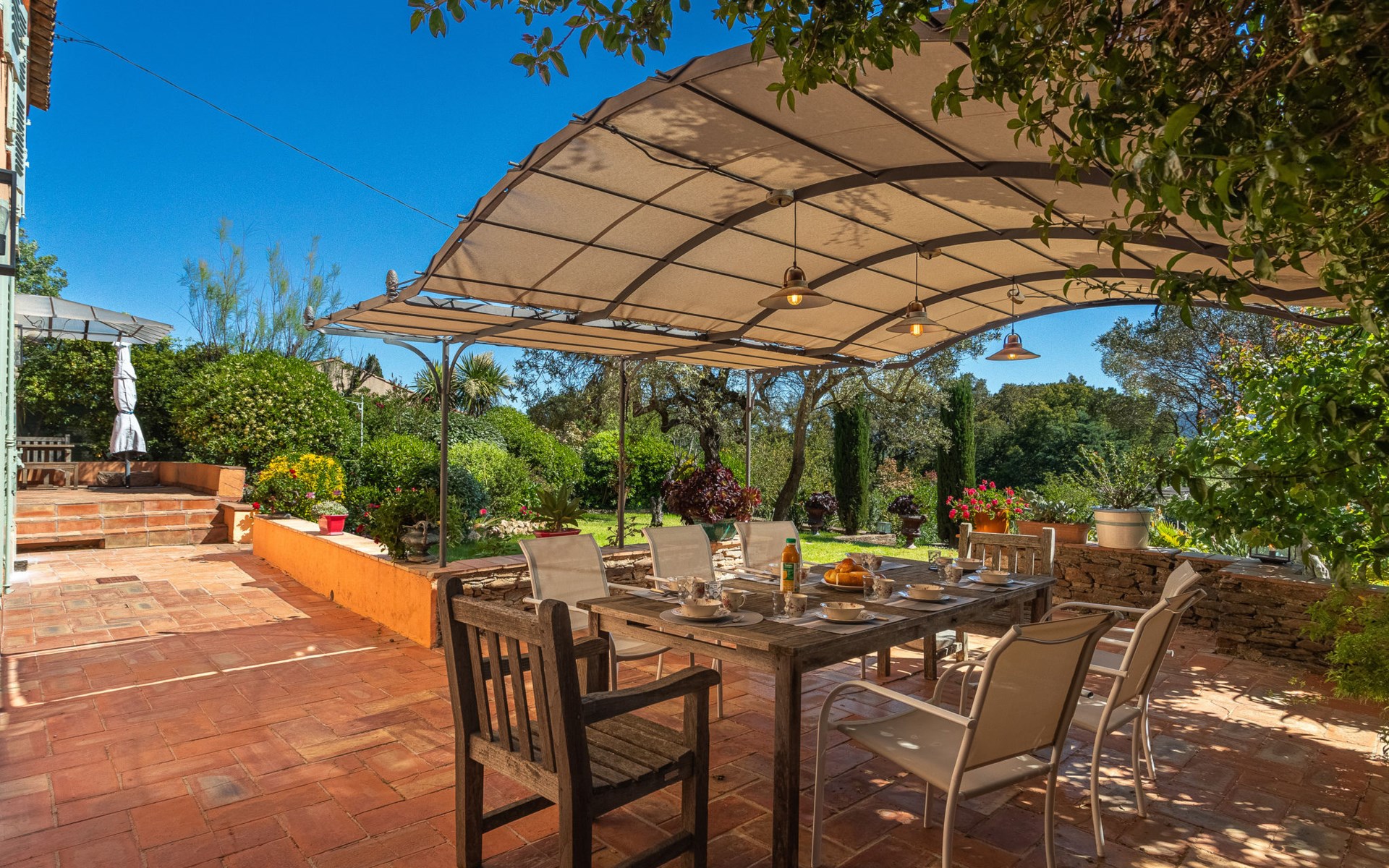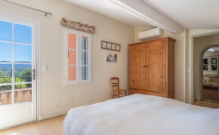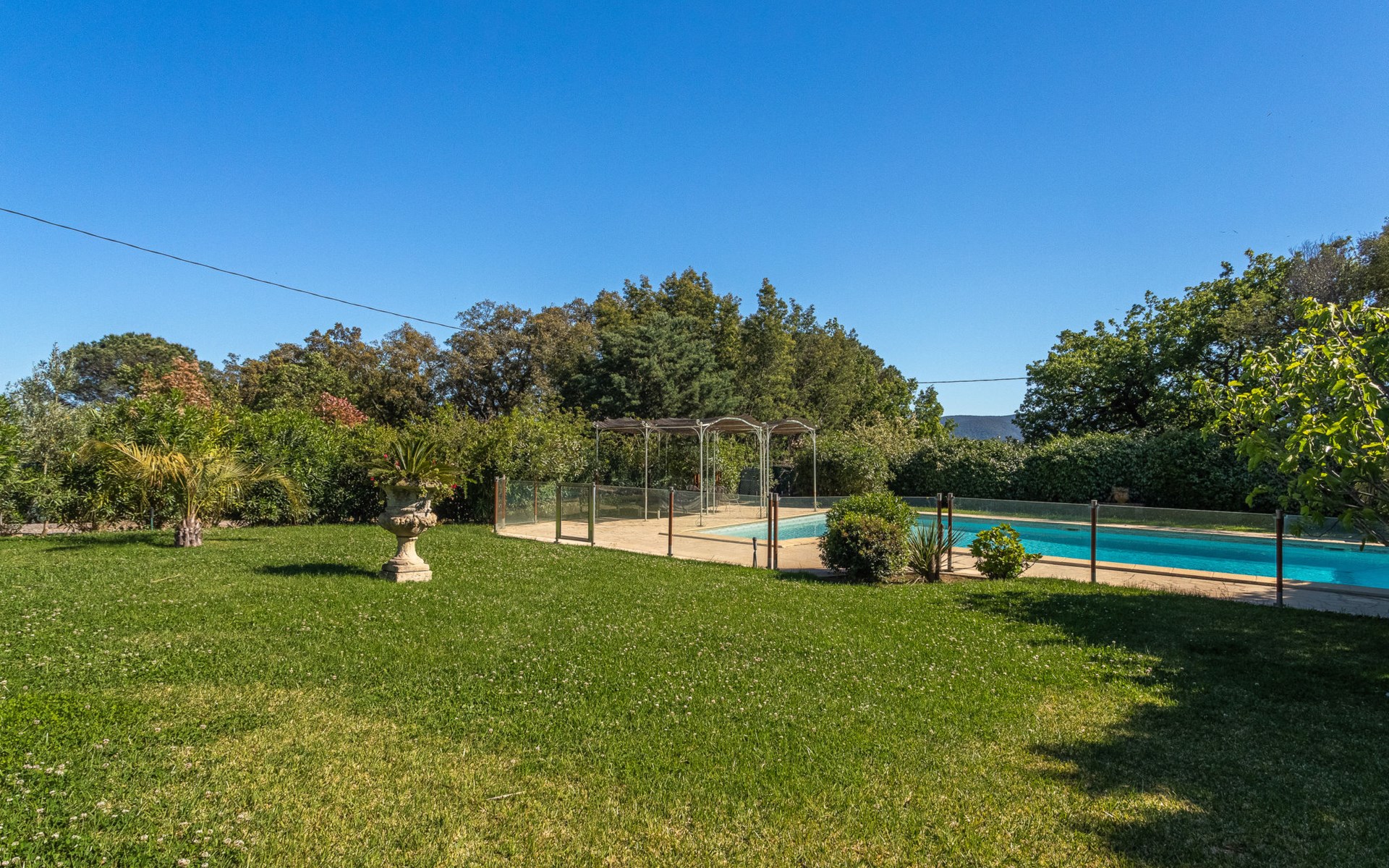 Single-family house "Le Clos du Pierredon", 2 storeys. On the outskirts, 900 m from the centre of Grimaud, 6 km from the sea. Private: well-kept garden with lawn 2'000 m2 trees, swimming pool (6 x 12 m, depth 90 - 220 cm, seasonal availability: 01.May. - 30.Sep.). Parking (for 2 cars). Shop, grocery 900 m, supermarket 3.5 km, restaurant 700 m, bus stop "Font Mourier" 3.8 km, sandy beach "Port Grimaud" 6 km. Sports harbour 6 km, golf course (18 hole) 7 km, sailing school 6 km. Nearby attractions: Port Grimaud 6 km, Parc d'attractions Azur Park 5.5 km, Saint Tropez 13 km, Sainte Maxime 12 km, Cannes 96 km, Nice 110 km. Well-known lakes can easily be reached: Lac de Sainte Croix 95 km. Hiking paths: Massif de l'Esterel 50 km. Please note: car recommended. The keys‘ handover takes place by the agency Interhme in Gassin, 6 km.