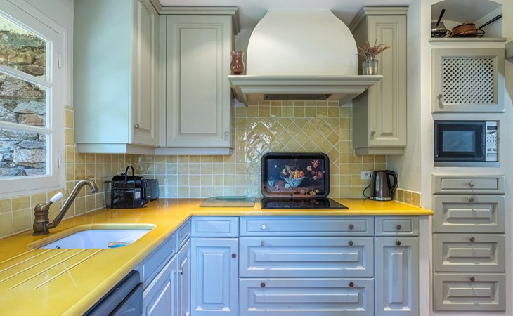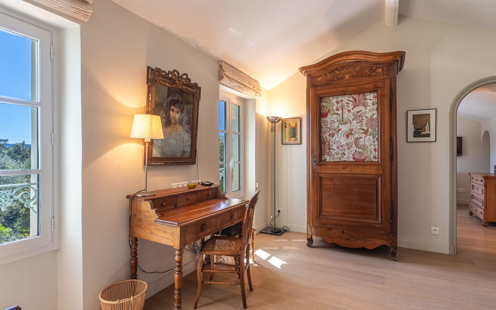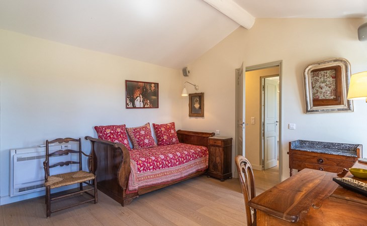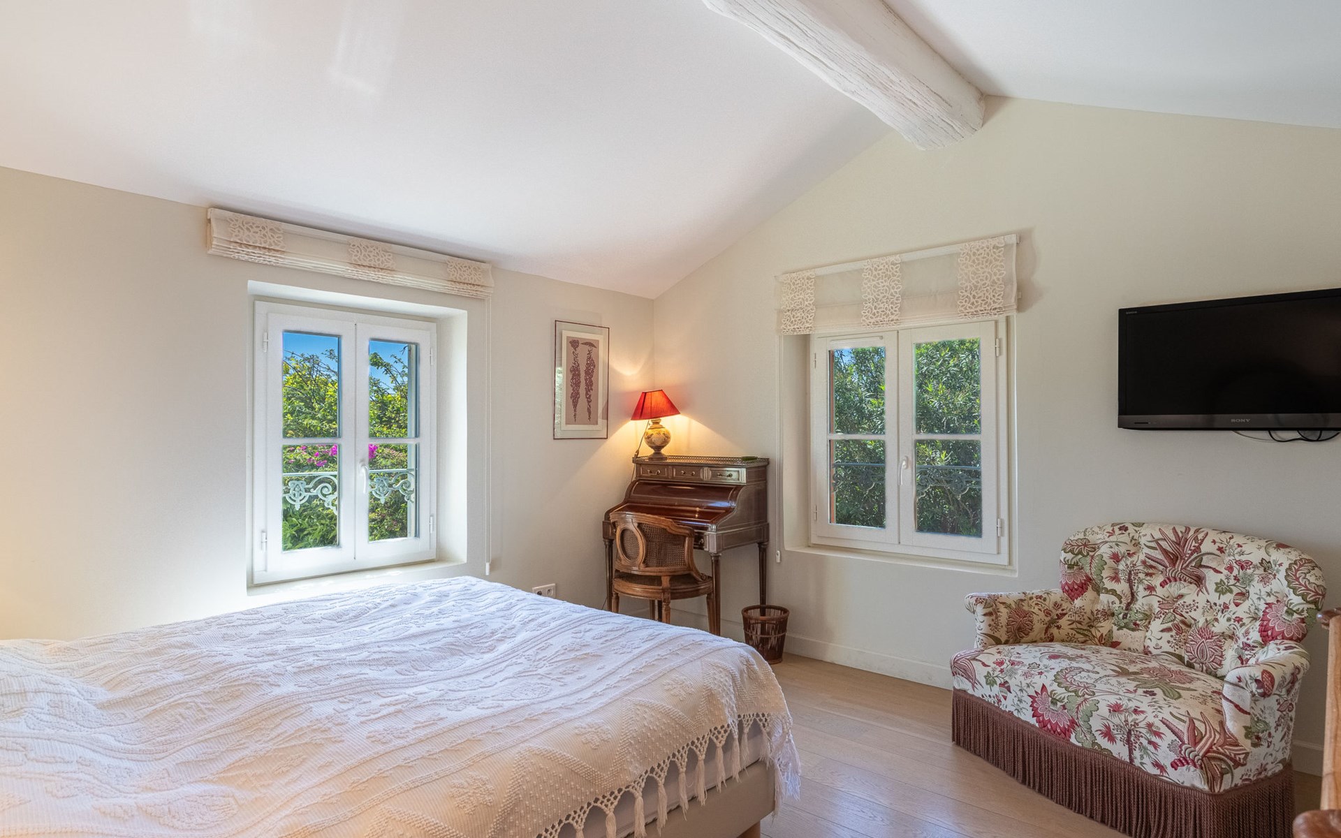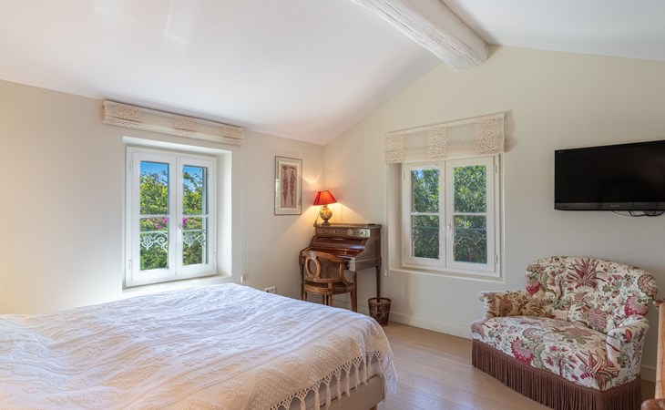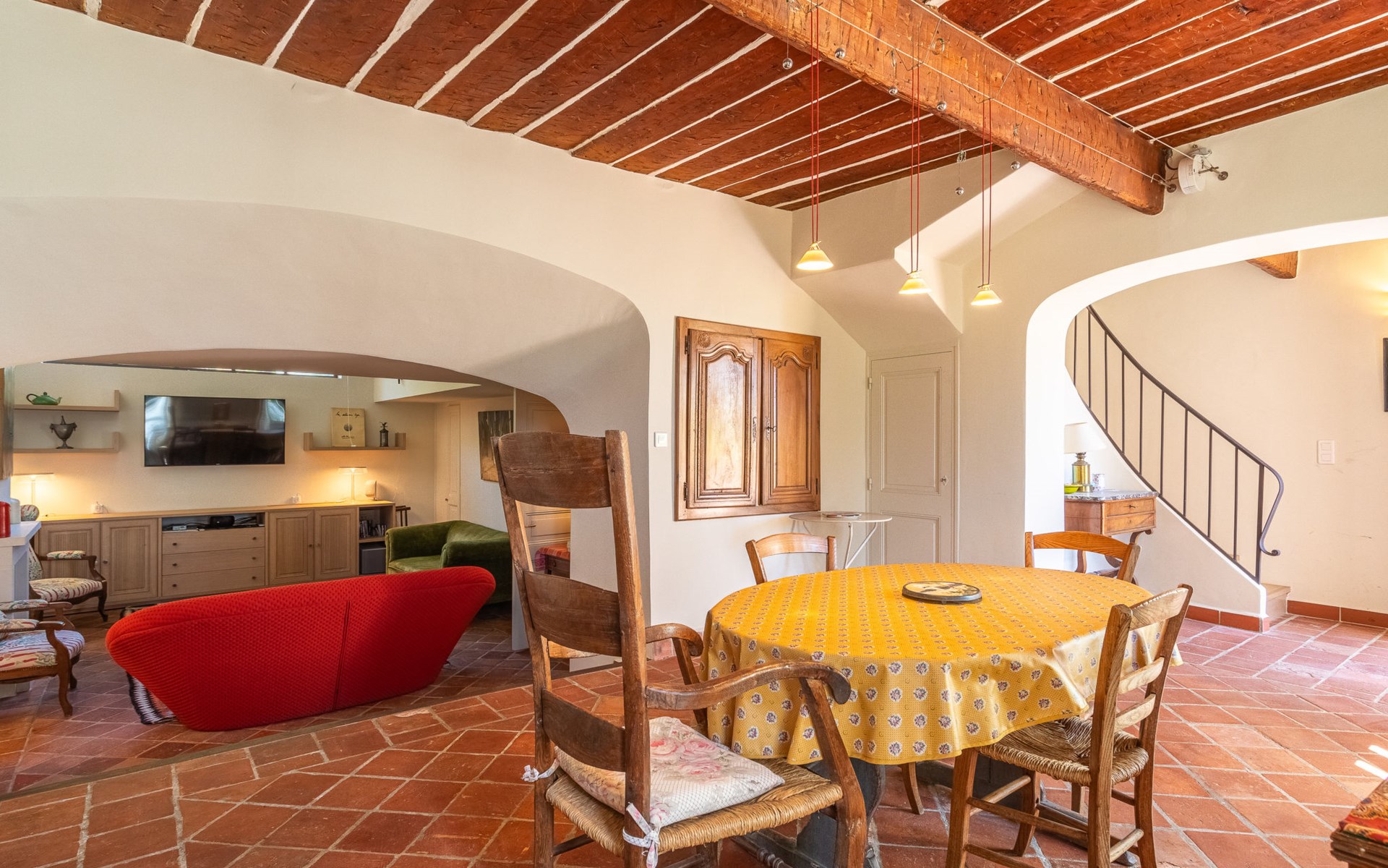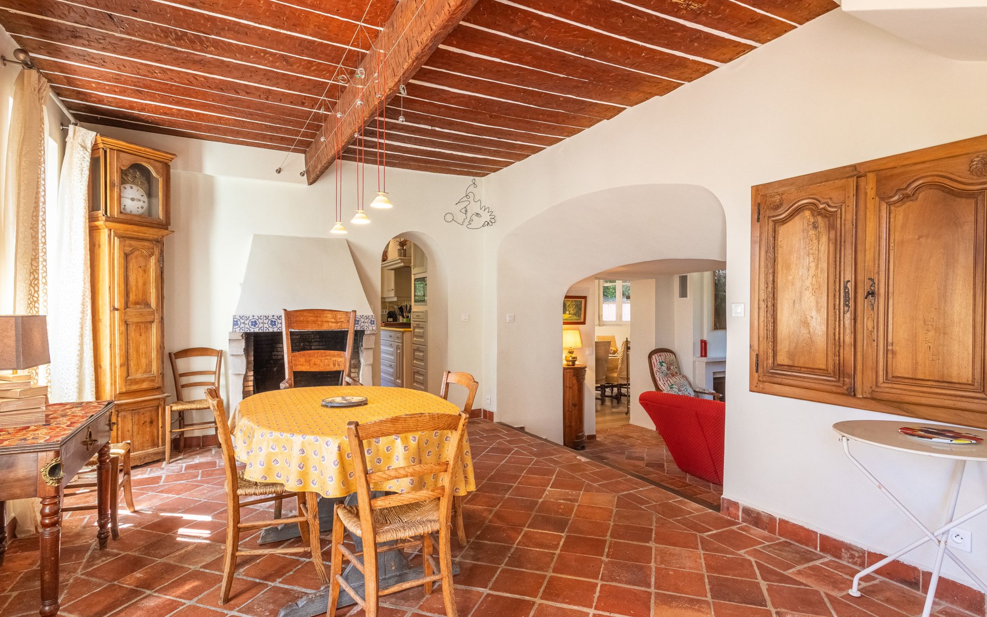 Single-family house "Le Clos du Pierredon", 2 storeys. On the outskirts, 900 m from the centre of Grimaud, 6 km from the sea. Private: well-kept garden with lawn 2'000 m2 trees, swimming pool (6 x 12 m, depth 90 - 220 cm, seasonal availability: 01.May. - 30.Sep.). Parking (for 2 cars). Shop, grocery 900 m, supermarket 3.5 km, restaurant 700 m, bus stop "Font Mourier" 3.8 km, sandy beach "Port Grimaud" 6 km. Sports harbour 6 km, golf course (18 hole) 7 km, sailing school 6 km. Nearby attractions: Port Grimaud 6 km, Parc d'attractions Azur Park 5.5 km, Saint Tropez 13 km, Sainte Maxime 12 km, Cannes 96 km, Nice 110 km. Well-known lakes can easily be reached: Lac de Sainte Croix 95 km. Hiking paths: Massif de l'Esterel 50 km. Please note: car recommended. The keys‘ handover takes place by the agency Interhme in Gassin, 6 km.