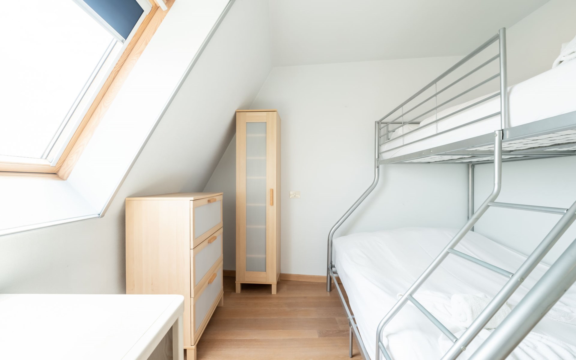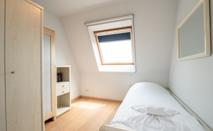 Bredene: Residence "Queen Mary". In the centre of Bredene, 150 m from the sea, 100 m from the beach, road to cross. In the house: lift. Public parking 50 m extra. Shop 50 m, supermarket, restaurant, bakery, bicycle rental, tram 100 m, railway station "Oostende" 4 km, indoor swimming pool 4 km. Golf course (18 hole) 9 km, surf school 200 m, tennis 2 km, minigolf 100 m. Nearby attractions: Fort Napoleon 3 km, De Haan 5 km, Brugge 30 km, Sea Life Blankenberge 14 km, familiepark De Sierk 3 km, Plopsaland De Panne 43 km. Hiking paths: Landerijenpad 12 km, Spuikompad 10 km, Duinpanpad 6 km. The owner does not accept any youth groups. The keys‘ handover takes place by the agency Interhome in Bredene. Group of youngsters not allowed.