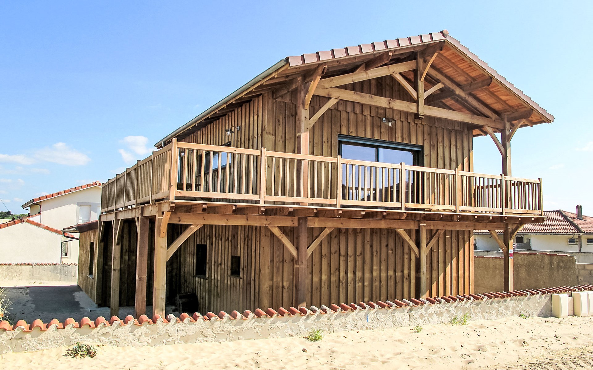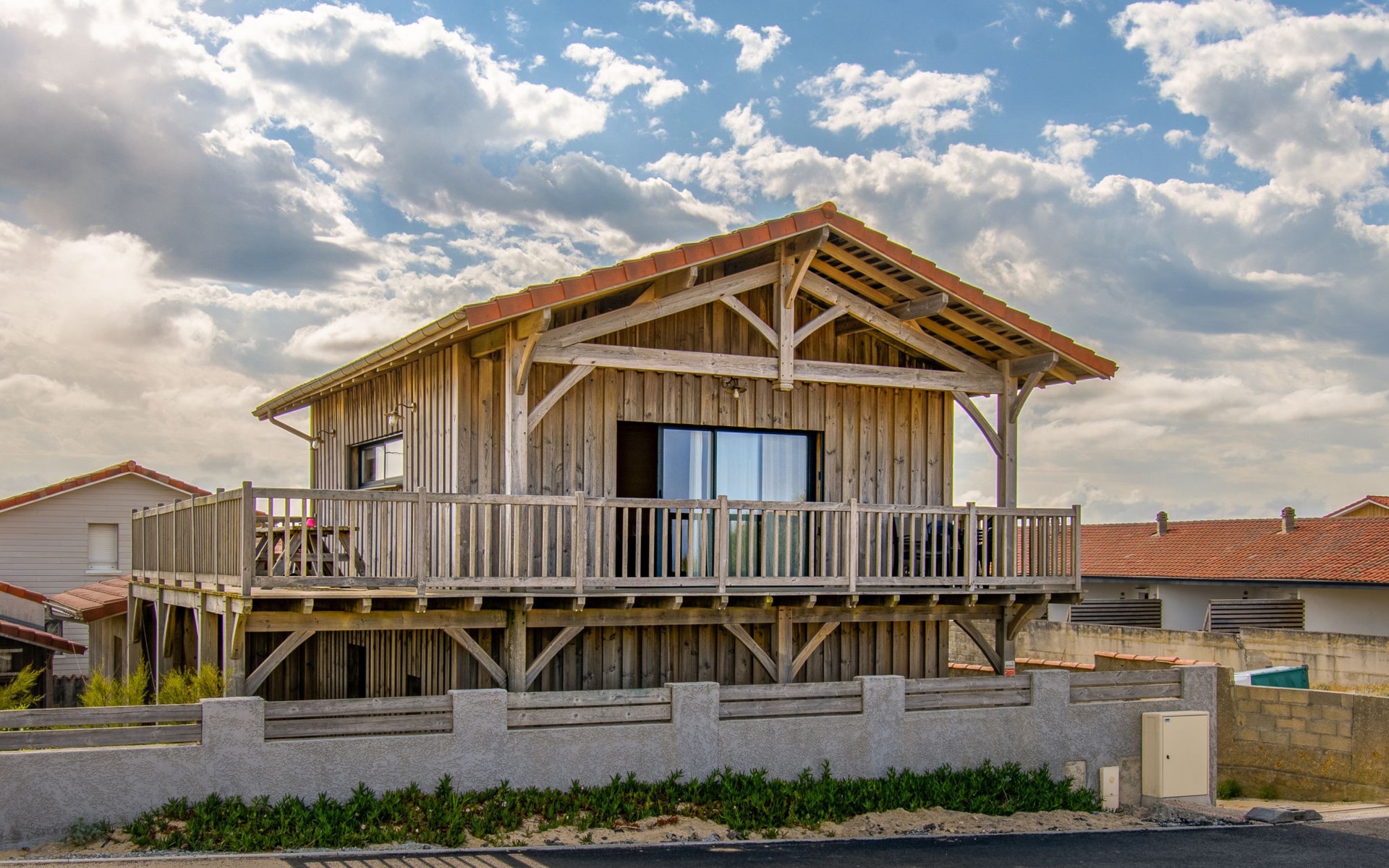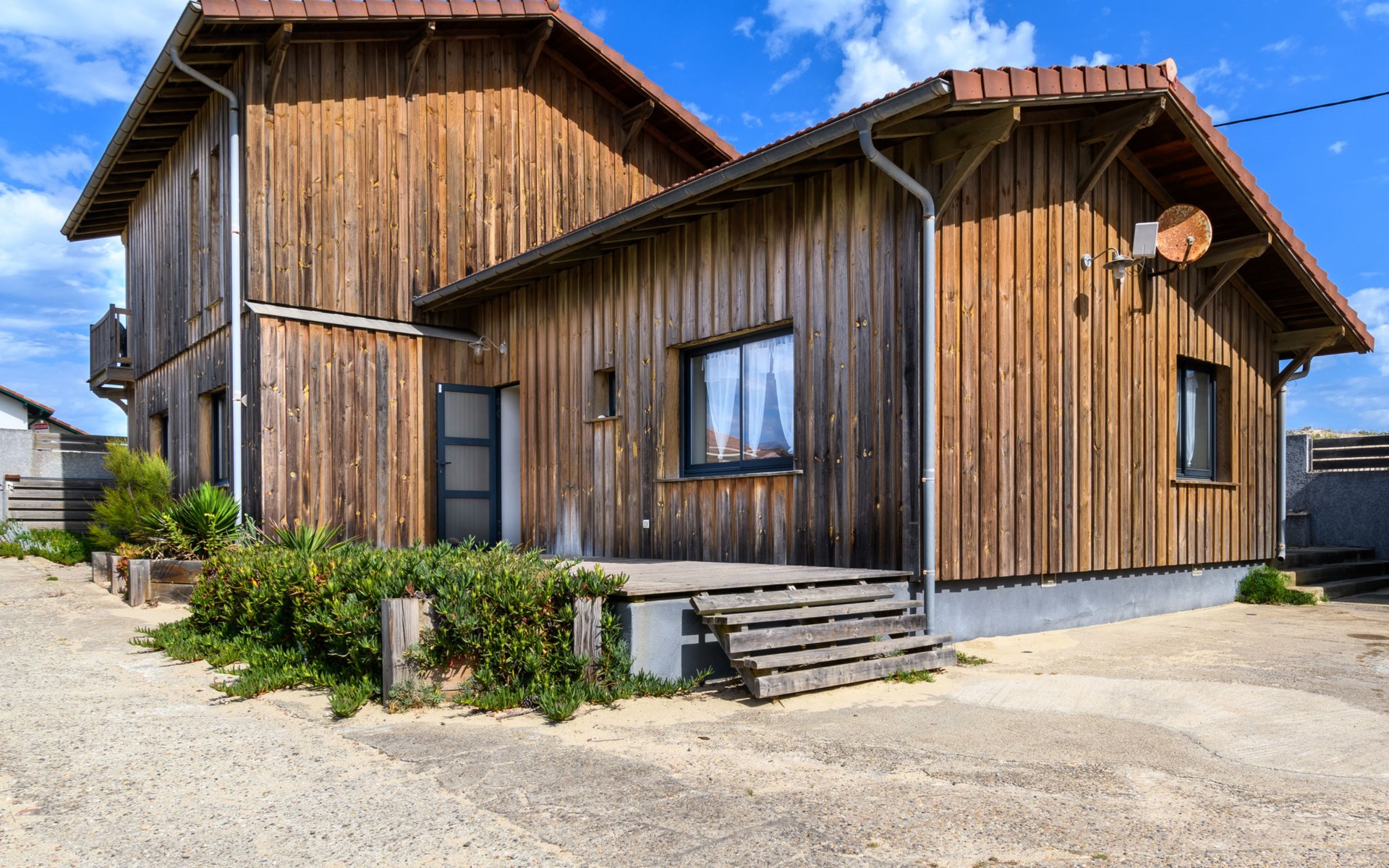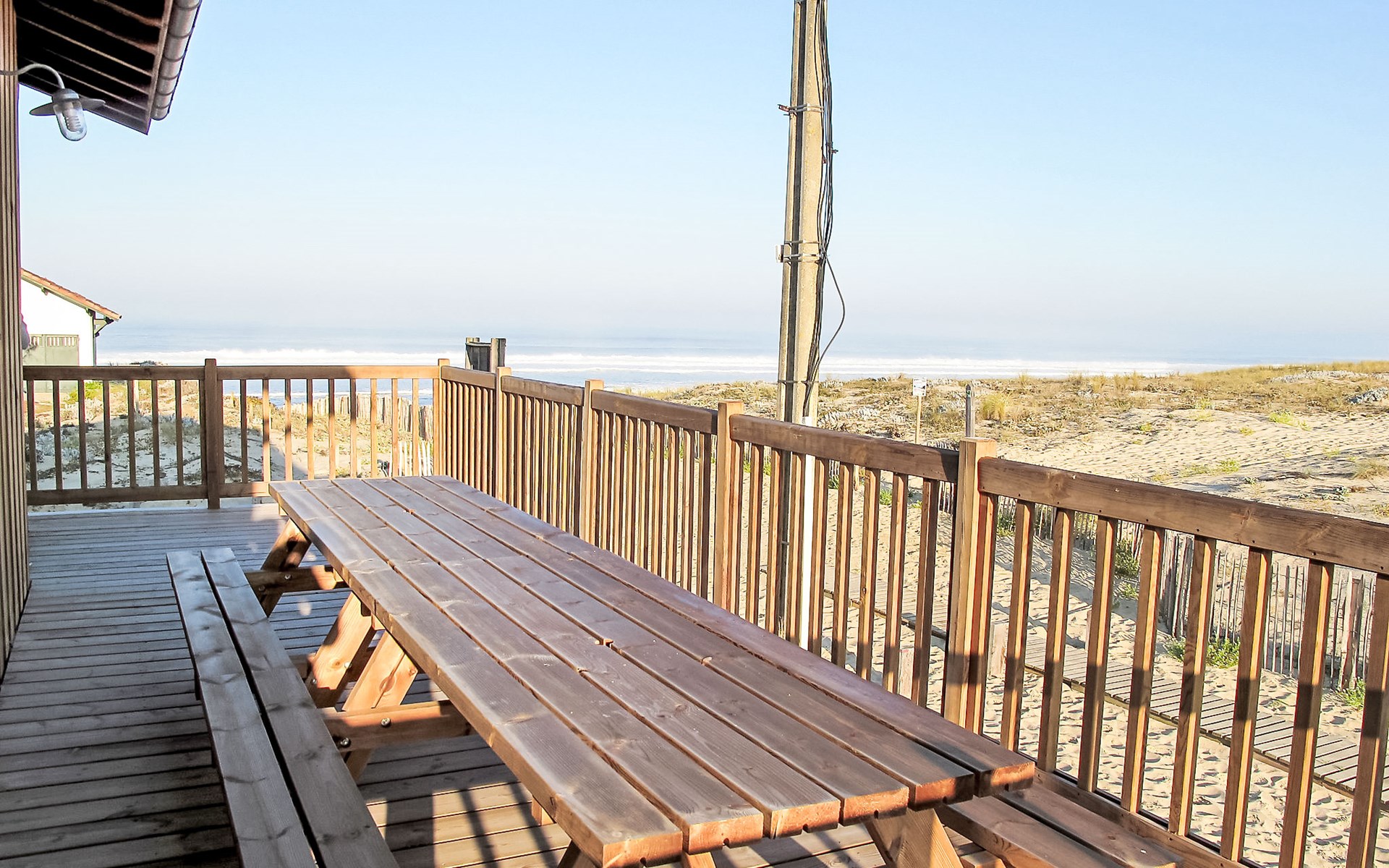 Single-family house "Les Mouettes", built in 2014. In the resort 750 m from the centre of Mimizan Plage, 50 m from the sea, 50 m from the beach, in a cul-de-sac. Private: natural state property 450 m2. Outdoor shower. In the house: storage room for bicycles. Motor access (via unmade road). Parking on the premises. Shop 750 m, grocery 1 km, restaurant 600 m, pedestrian zone 750 m, sandy beach "remember" 50 m, park "Landes Aventure" 6 km, indoor swimming pool 6 km, bathing lake "Aureilhan" 10 km. Golf course (9 hole) 6 km, surf school 700 m, riding stable 7 m. Nearby attractions: Arcachon 70 km, Biscarrosse 40 km, Casino Mimizan Plage 1.2 km. Please note: servitude in the back of the field.