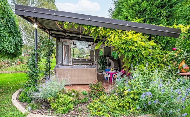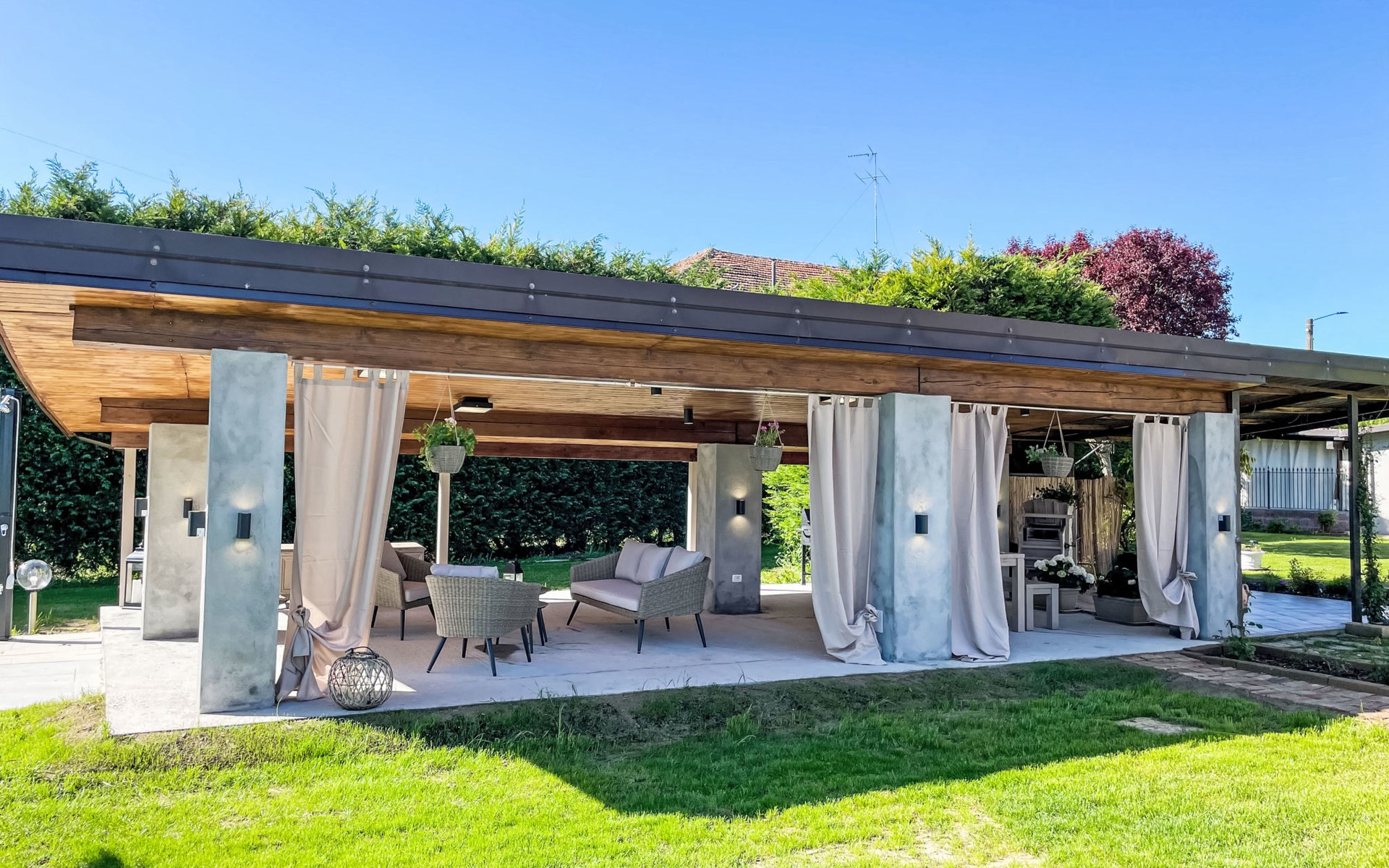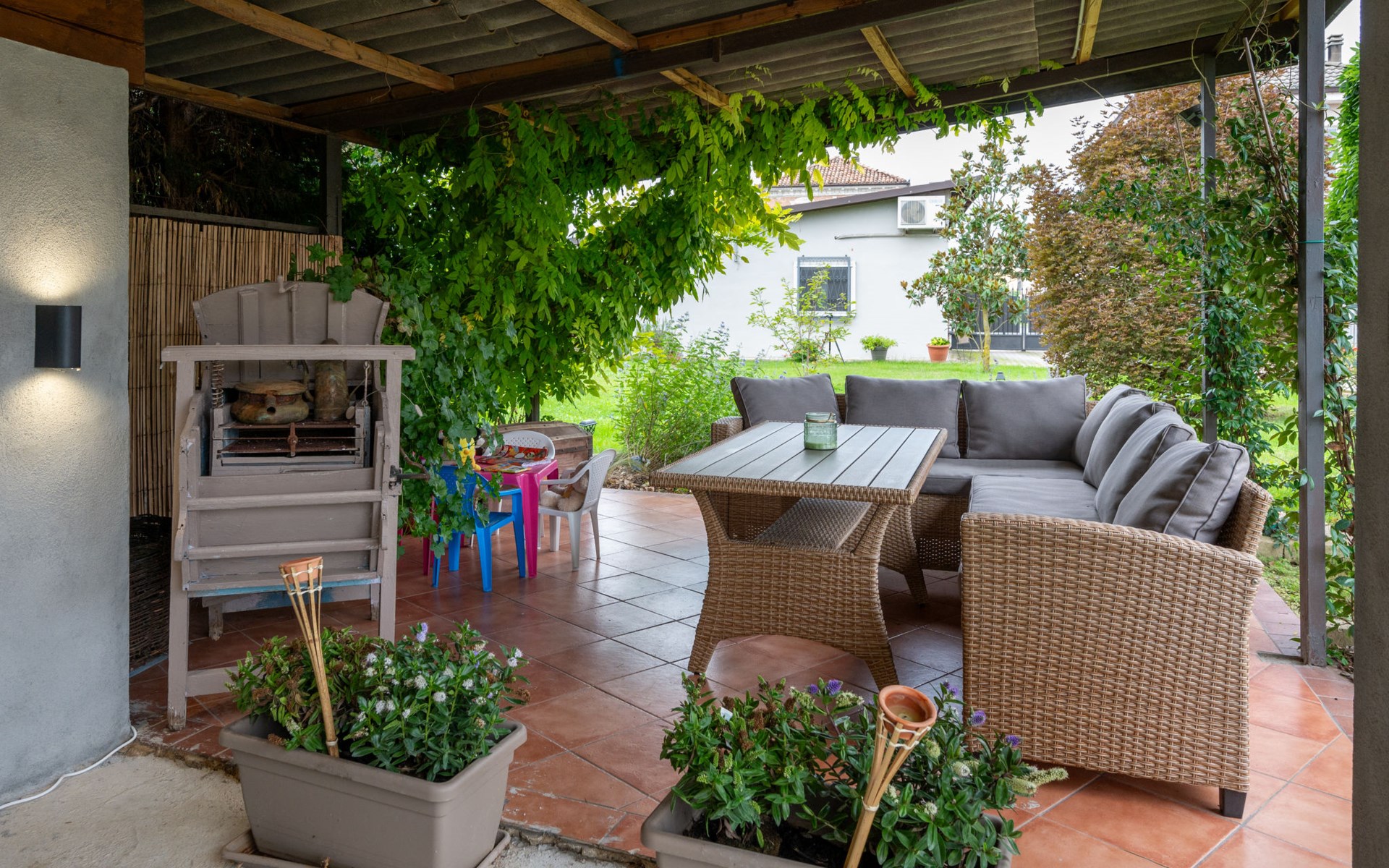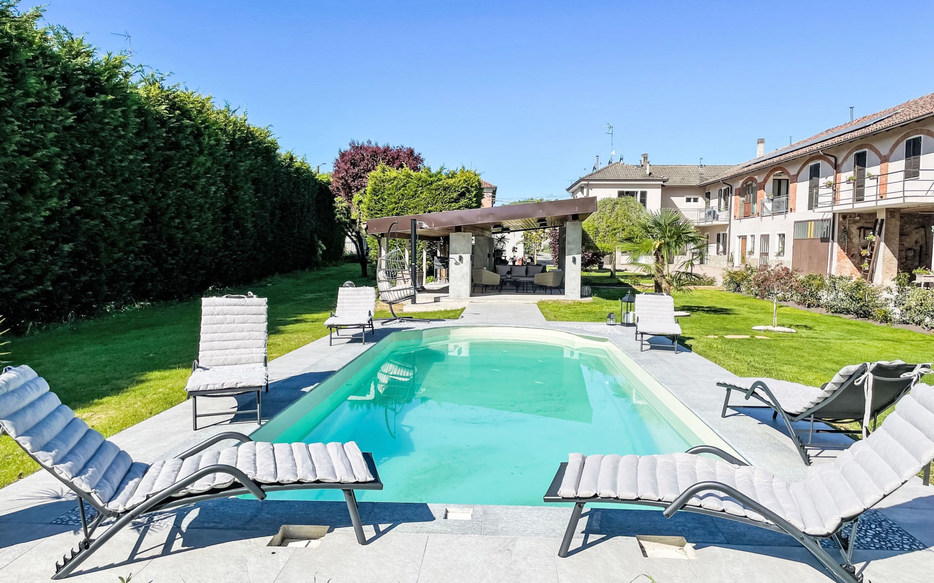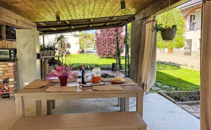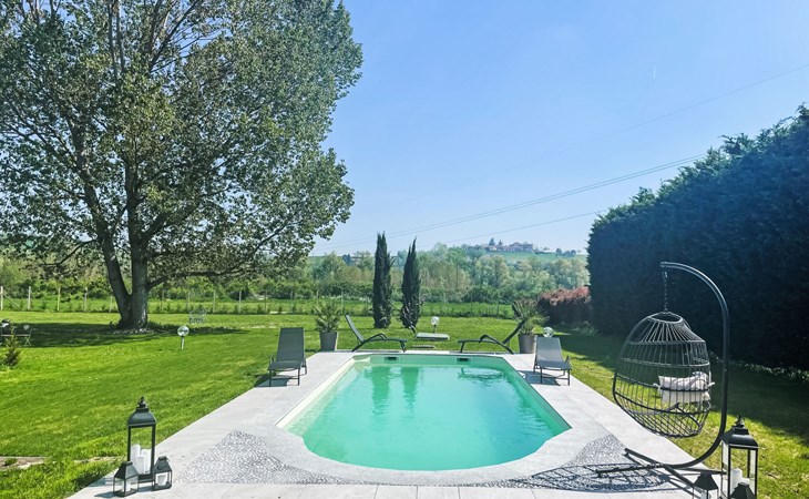 Cosy 3-family house "Tenuta Beatrice", 2 storeys, surrounded by meadows. 200 m from the centre of Castell' Alfero, in a busy position, on a main road. For shared use: property 5'000 m2 with lawn and trees, swimming pool (10 x 4 m, depth 160 cm, seasonal availability: 01.May. - 15.Oct.) with salt water. Outdoor shower, poolhouse with fridge and cooking stove, patio, garden furniture, barbecue, pool maintenance by the owner/gardener. In the house: storage room for bicycles. Parking at the house on the premises. Supermarket 1 km, restaurant 400 m, bus stop 100 m. Nearby attractions: Asti 12 km, Alba 43 km. Please note: car recommended. On the estate animal husbandry. The owner lives in the same residence. The owner has a dog.