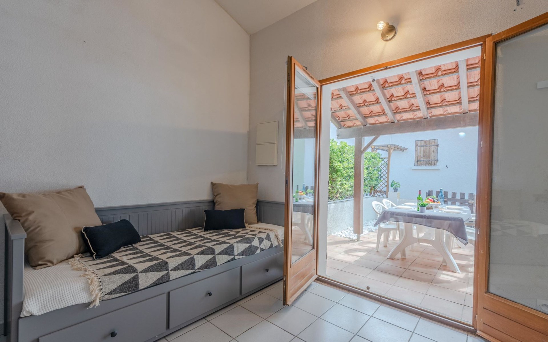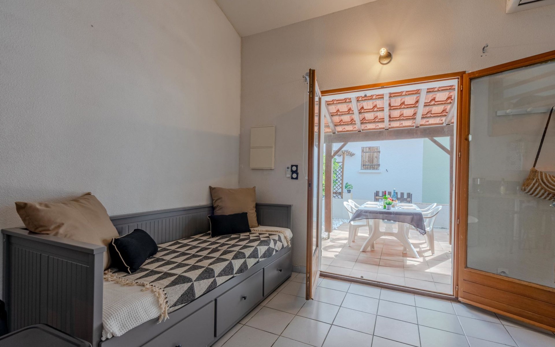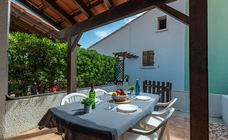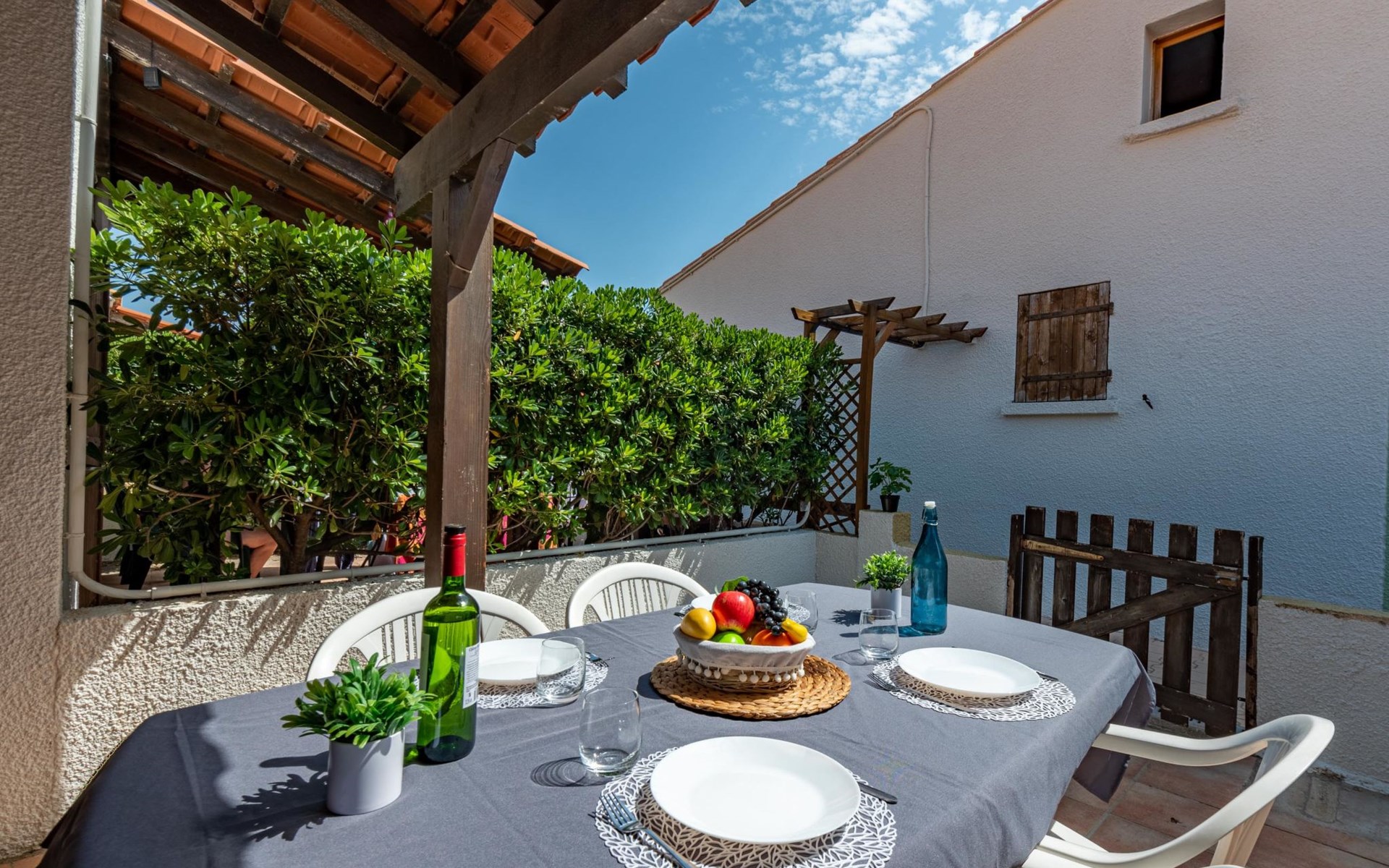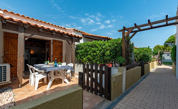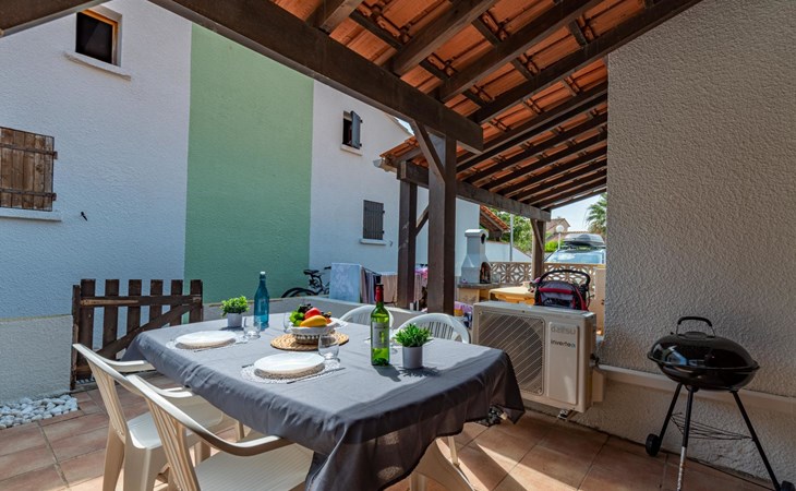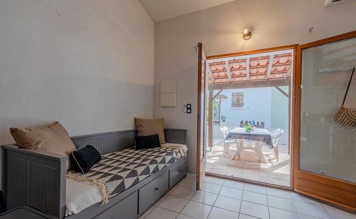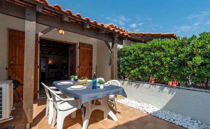 Residence "le Hameau Catalan", built in 1999. 6 km from the centre of Barcarès, 2 km from the sea, 150 m from the lake, 2 km from the beach. For shared use: swimming pool fenced (8 x 6 m, depth 120 - 130 cm, seasonal availability: 15.Jun. - 15.Sep. pool opening hours: 09:00-19:00). Parking. Shop 1 km, grocery 3 km, supermarket 5 km, restaurant 1 km, bakery 1 km, bus stop "Pêcheurs" 500 m, railway station "La Franqui" 20 km, sandy beach "Lydia" 2 km, diving center 6 km, outdoor swimming pool 4 km, nudist beach 7 km. Sports harbour 7 km, surf school 5 km, sailing school 300 m, tennis 200 m, minigolf 300 m, riding stable 8 km. Nearby attractions: Aqualand Port Leucate 7 km, Réserve Africaine de Sigean 41 km, Fort de Salses 20 km, Narbonne 55 km, Perpignan 25 km, Barcelone 315 km. Well-known lakes can easily be reached: Etang de Leucate ou Salses 7 km, Lac de Villeneuve de La Raho 28 km. Hiking paths: Sentier du guetteur 8 km, Station meteorologique de Opoul Perillos 25 km, Sentier du littoral Collioure 40 km. Please note: car recommended.