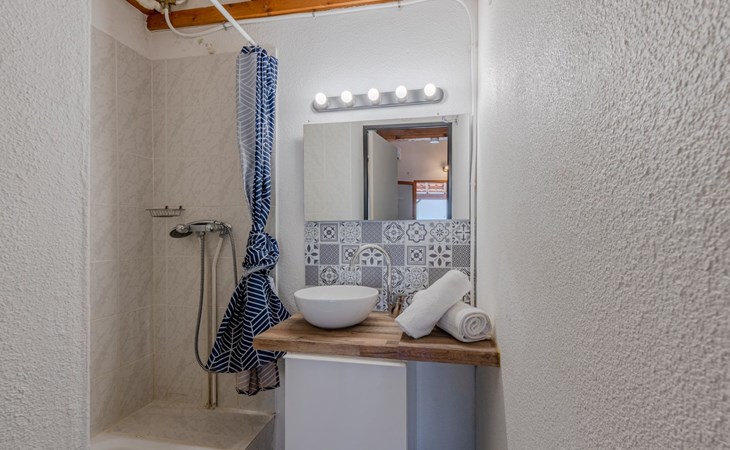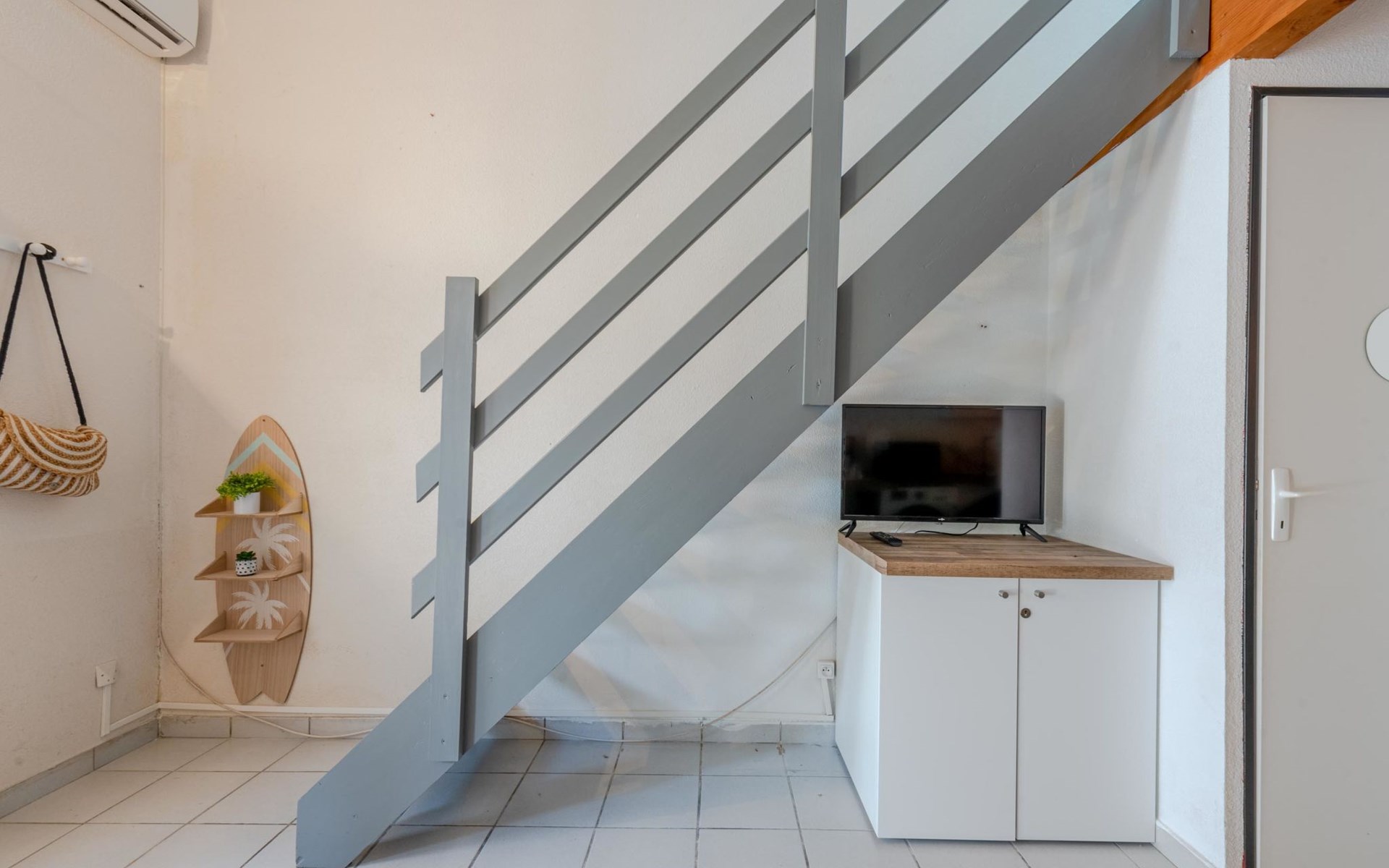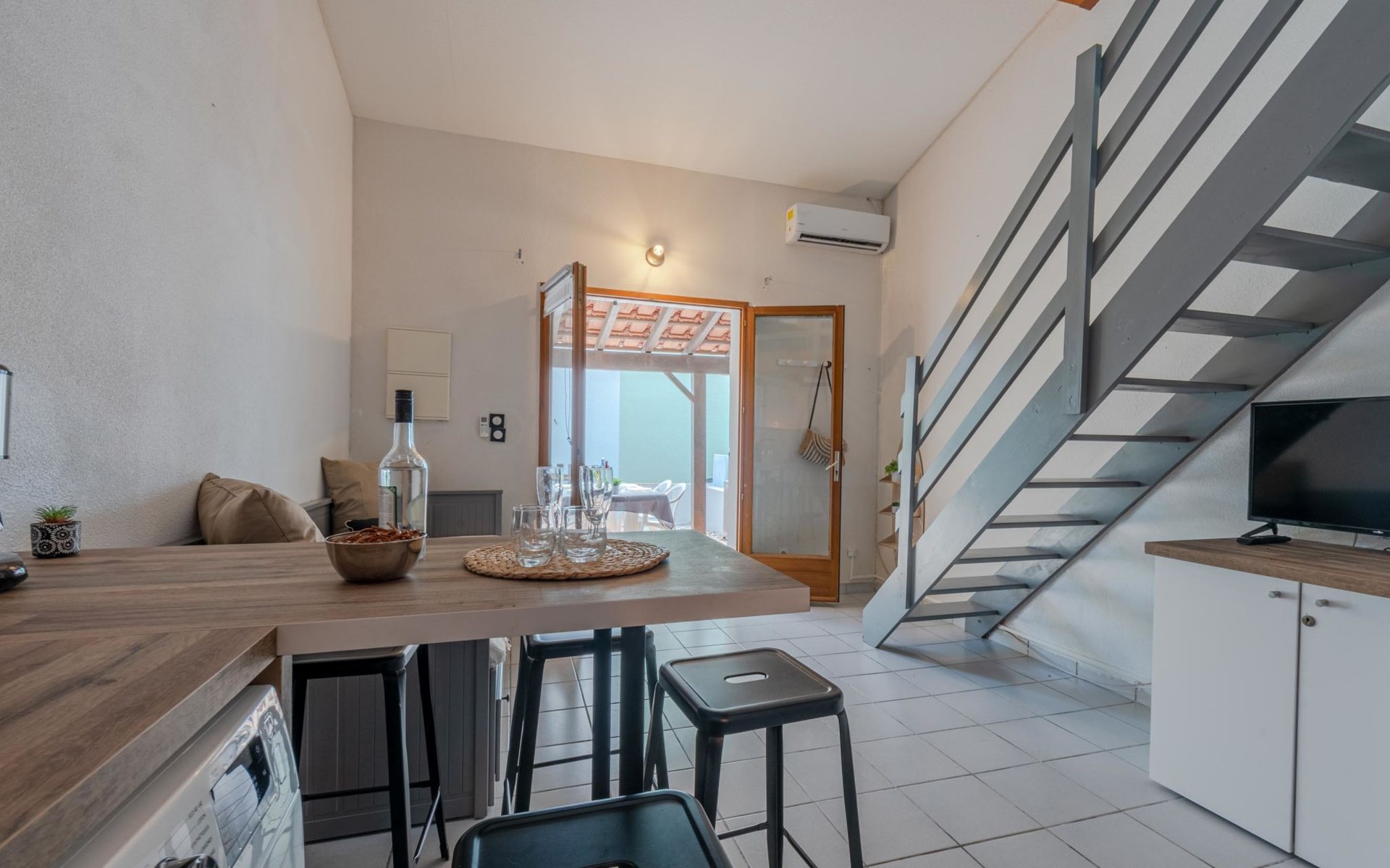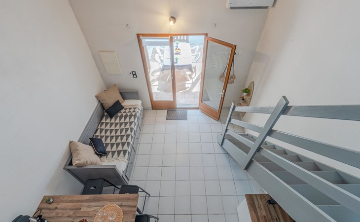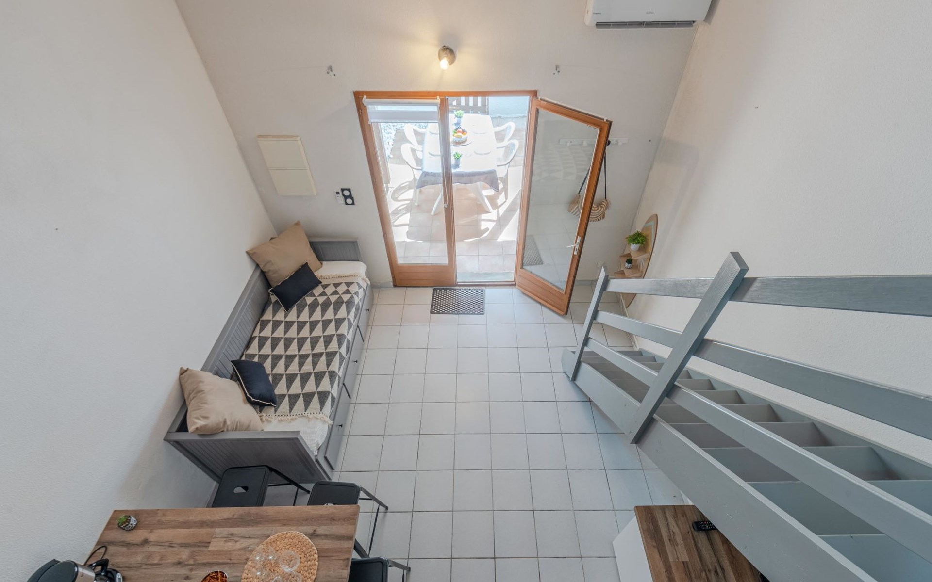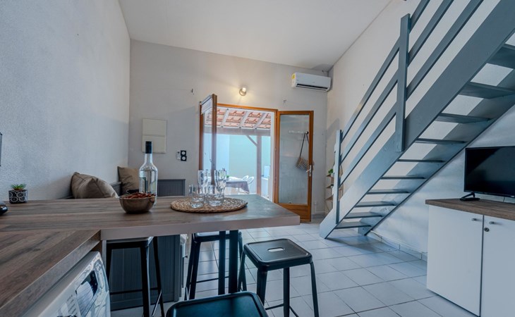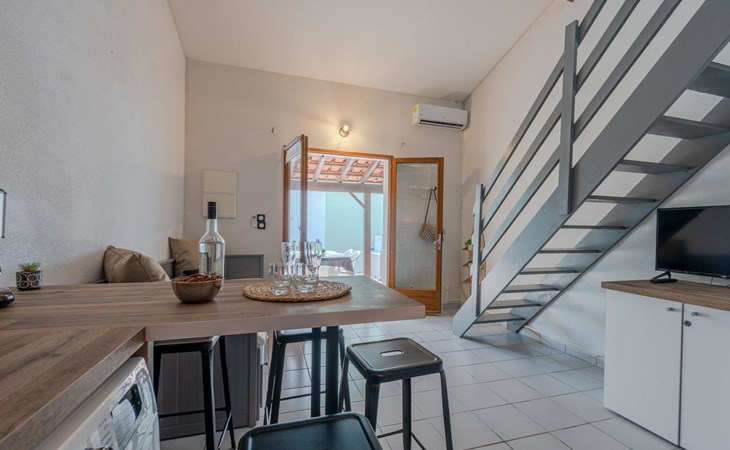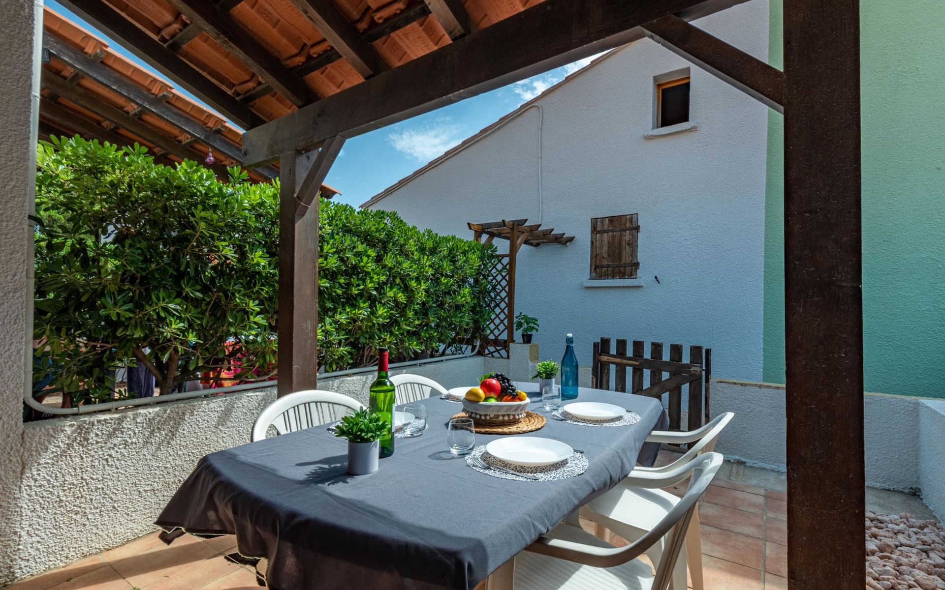 Residence "le Hameau Catalan", built in 1999. 6 km from the centre of Barcarès, 2 km from the sea, 150 m from the lake, 2 km from the beach. For shared use: swimming pool fenced (8 x 6 m, depth 120 - 130 cm, seasonal availability: 15.Jun. - 15.Sep. pool opening hours: 09:00-19:00). Parking. Shop 1 km, grocery 3 km, supermarket 5 km, restaurant 1 km, bakery 1 km, bus stop "Pêcheurs" 500 m, railway station "La Franqui" 20 km, sandy beach "Lydia" 2 km, diving center 6 km, outdoor swimming pool 4 km, nudist beach 7 km. Sports harbour 7 km, surf school 5 km, sailing school 300 m, tennis 200 m, minigolf 300 m, riding stable 8 km. Nearby attractions: Aqualand Port Leucate 7 km, Réserve Africaine de Sigean 41 km, Fort de Salses 20 km, Narbonne 55 km, Perpignan 25 km, Barcelone 315 km. Well-known lakes can easily be reached: Etang de Leucate ou Salses 7 km, Lac de Villeneuve de La Raho 28 km. Hiking paths: Sentier du guetteur 8 km, Station meteorologique de Opoul Perillos 25 km, Sentier du littoral Collioure 40 km. Please note: car recommended.