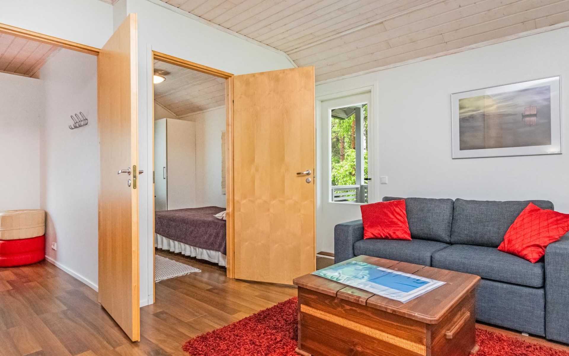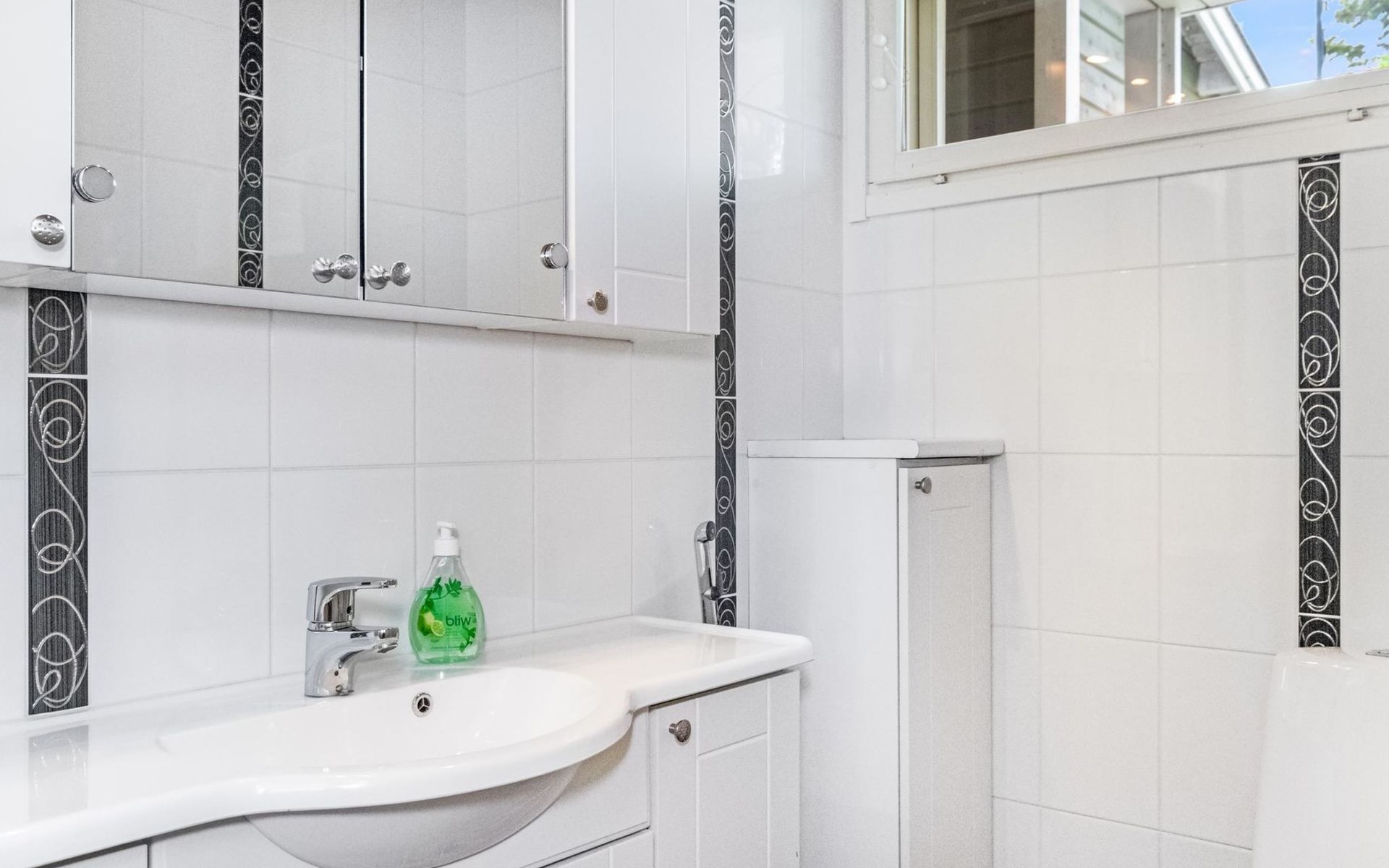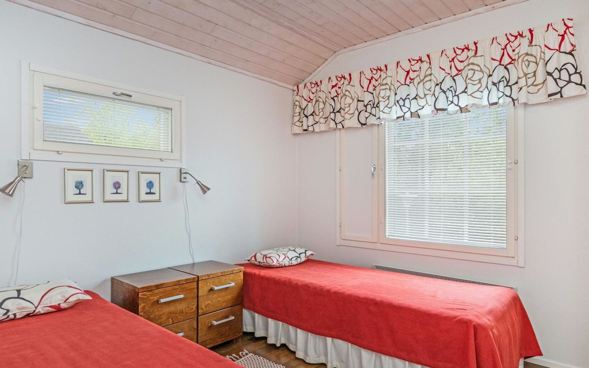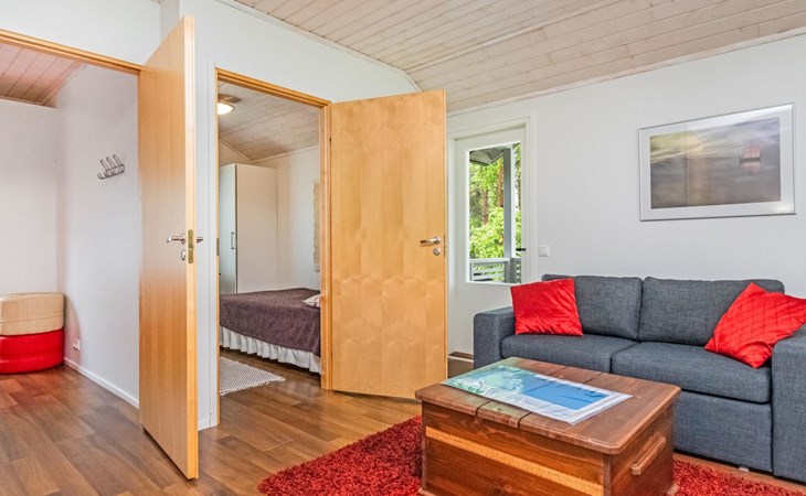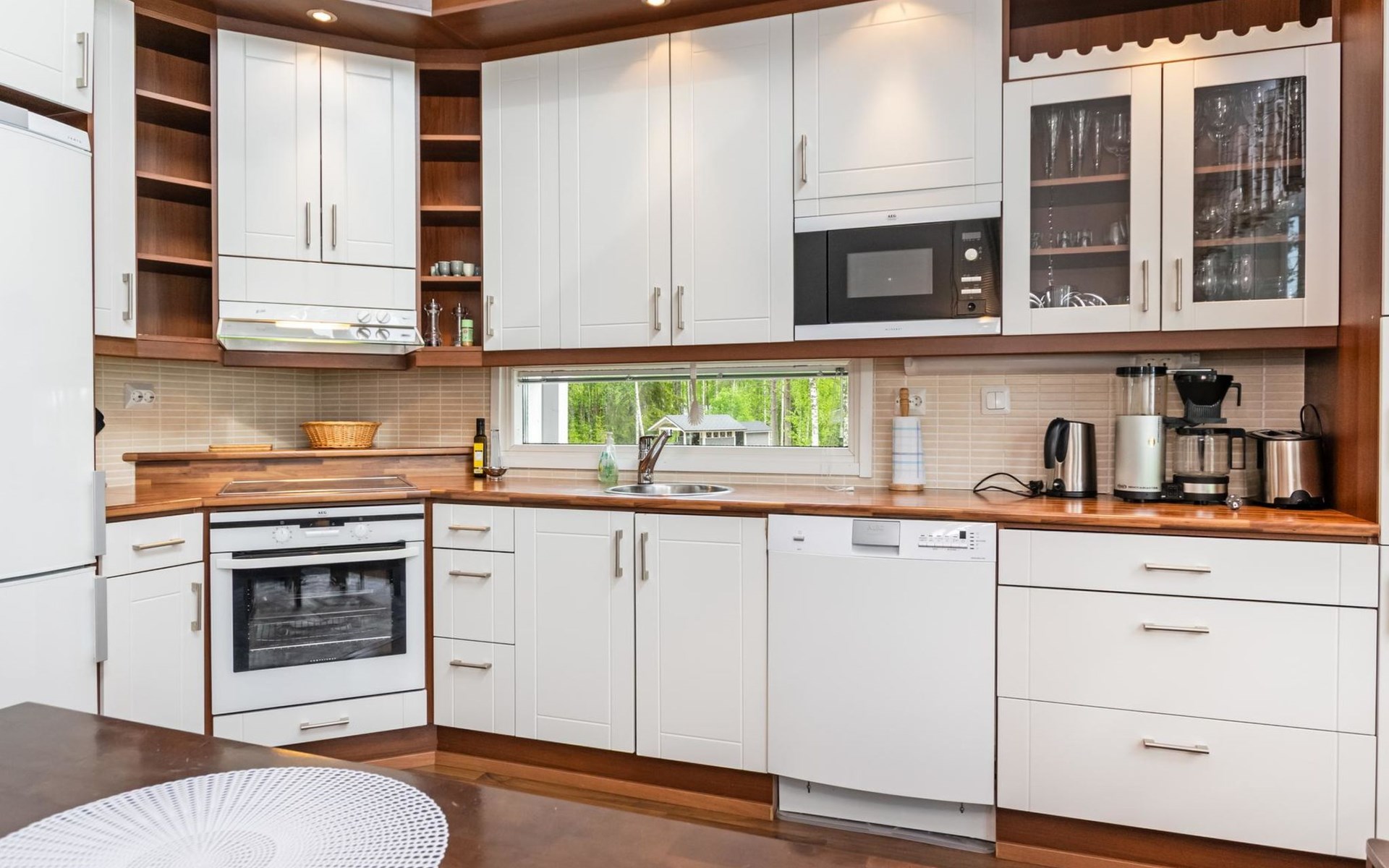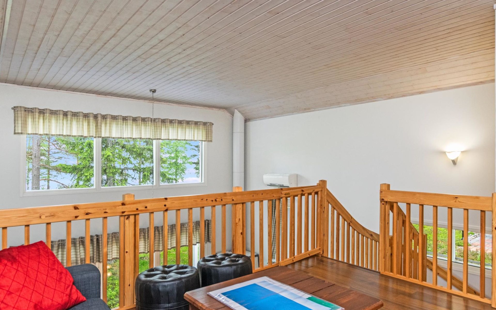 A two storey wooden house, built in 2010. Lowest floor: kitchen, bedroom with double bed (140cm wide), sauna (electric stove), bathroom with 2 showers, dressing room, toilet, terrace. Upstairs: bedroom with 2 beds, bedroom with a bed (120 cm wide), loft with a sofa bed, toilet, balcony.