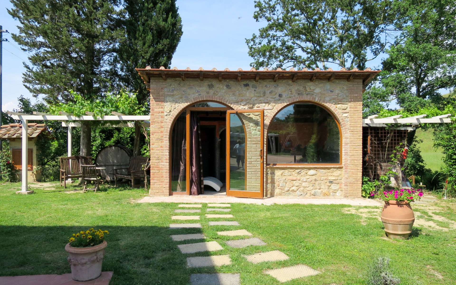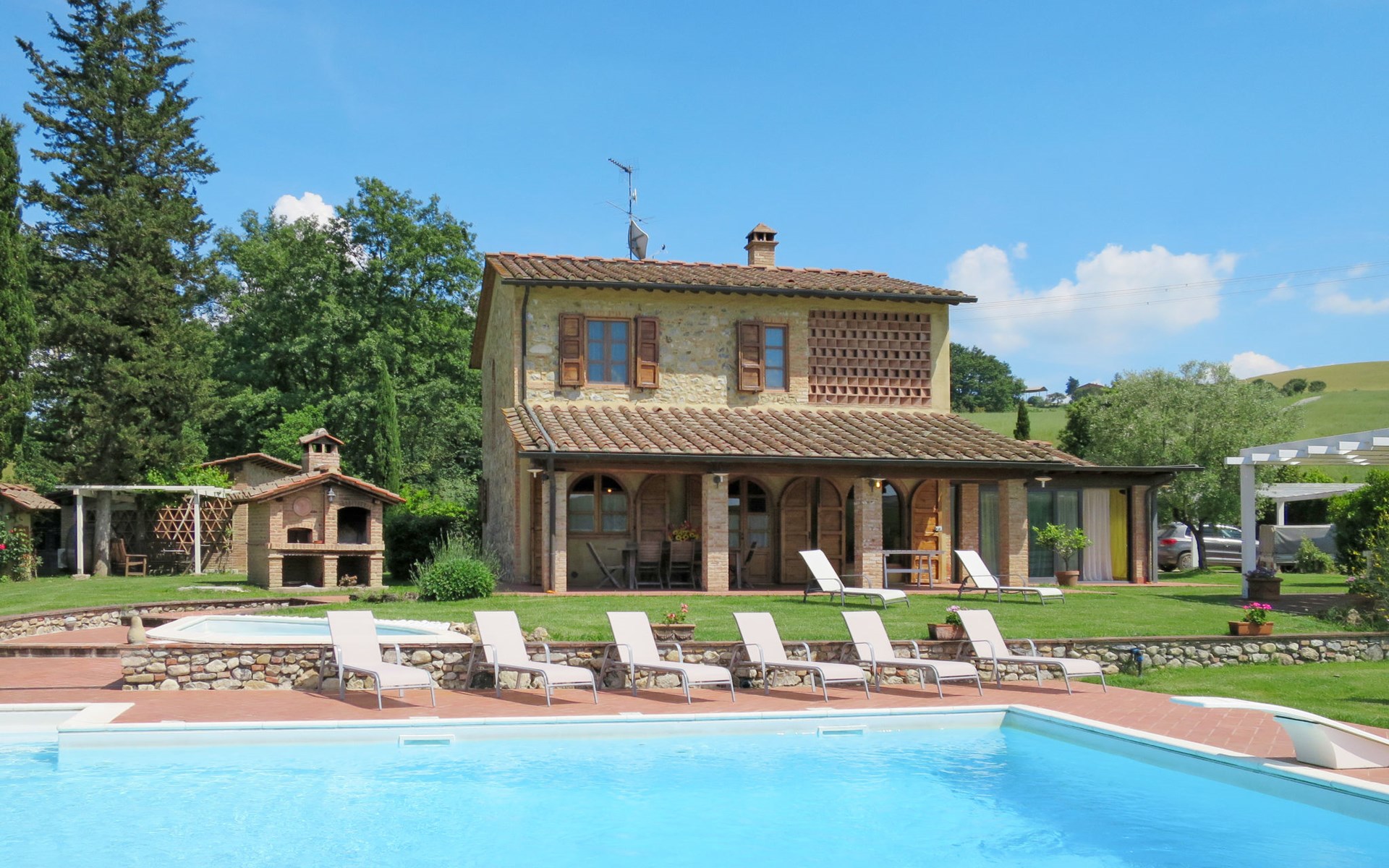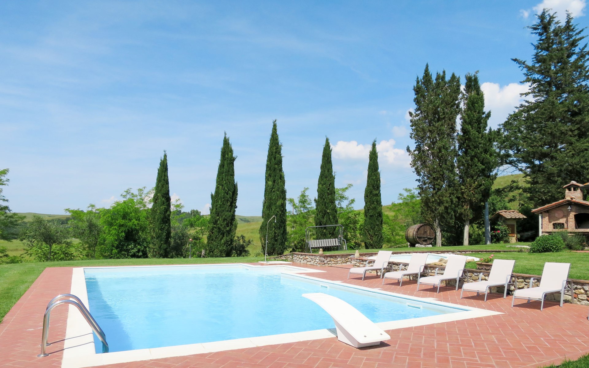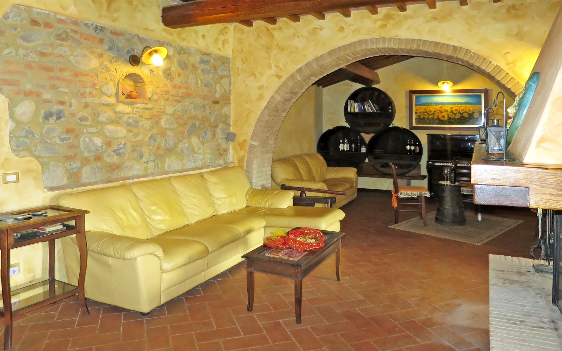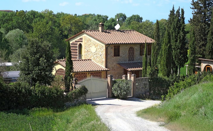 House, 2 storeys, surrounded by trees and fields. 13 km from the centre of Volterra, 8.5 km from the centre of Villamagna, 26 km from the centre of San Gimignano, in a secluded position, 48 km from the sea, in the countryside. Private: property 3'000 m2 (fenced), garden with lawn, swimming pool (12 x 6 m, seasonal availability: 16.Apr. - 21.Oct.). Outdoor shower, hot tub, pergola, terrace (25 m2), garden furniture, barbecue, pool maintenance by the owner/gardener. In the house: sauna (extra). Hot tub (extra). 700 m long bumpy motor access. Parking (for 3 cars) on the premises. Shop 8.5 km, supermarket 15 km, bus stop 1.5 km, sandy beach "Marina di Cecina" 48 km. Nearby attractions: Pisa 50 km, Siena 70 km, Firenze 90 km. Check-in after 8pm additional 150 euros to be paid on arrival.