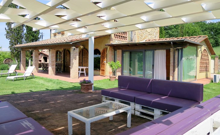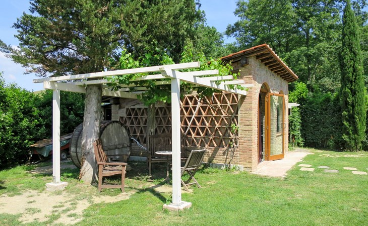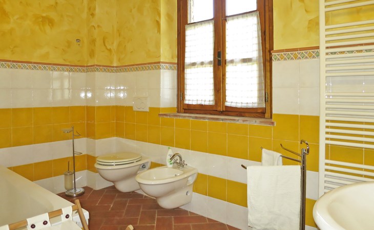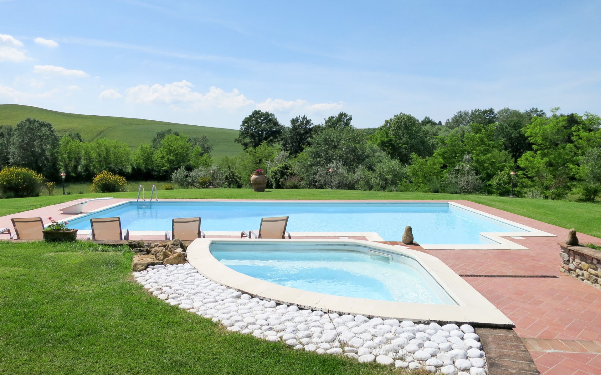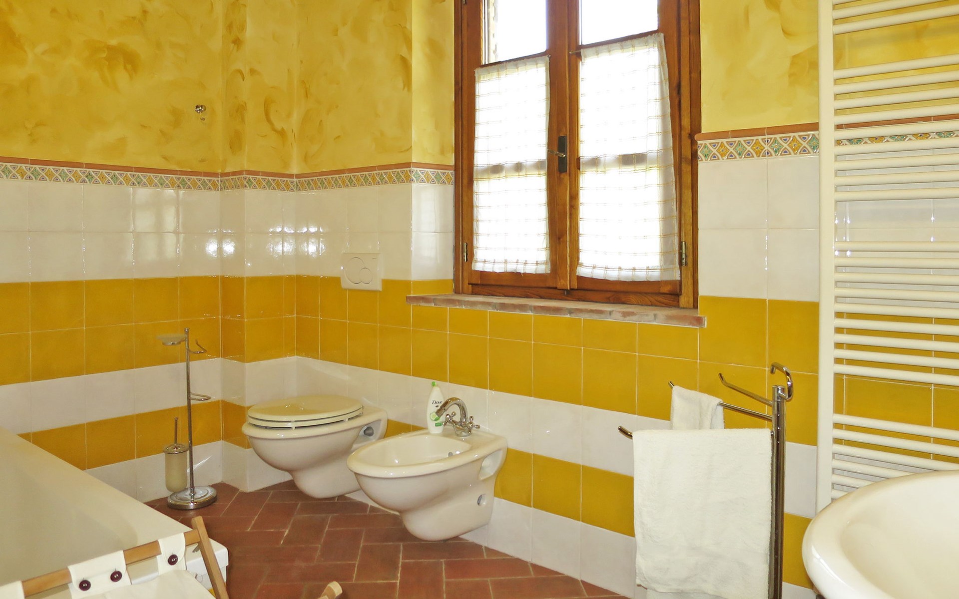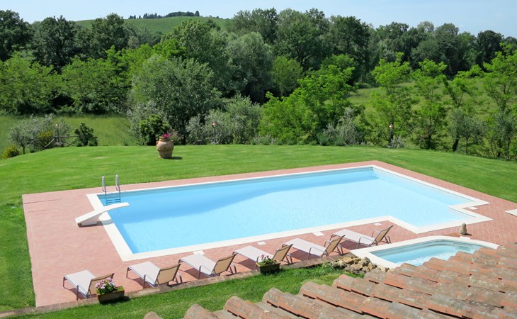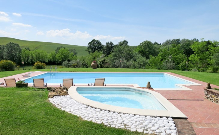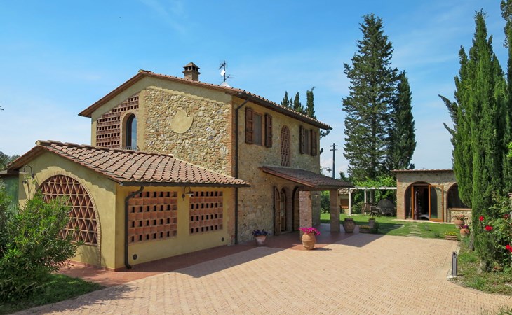 House, 2 storeys, surrounded by trees and fields. 13 km from the centre of Volterra, 8.5 km from the centre of Villamagna, 26 km from the centre of San Gimignano, in a secluded position, 48 km from the sea, in the countryside. Private: property 3'000 m2 (fenced), garden with lawn, swimming pool (12 x 6 m, seasonal availability: 16.Apr. - 21.Oct.). Outdoor shower, hot tub, pergola, terrace (25 m2), garden furniture, barbecue, pool maintenance by the owner/gardener. In the house: sauna (extra). Hot tub (extra). 700 m long bumpy motor access. Parking (for 3 cars) on the premises. Shop 8.5 km, supermarket 15 km, bus stop 1.5 km, sandy beach "Marina di Cecina" 48 km. Nearby attractions: Pisa 50 km, Siena 70 km, Firenze 90 km. Check-in after 8pm additional 150 euros to be paid on arrival.