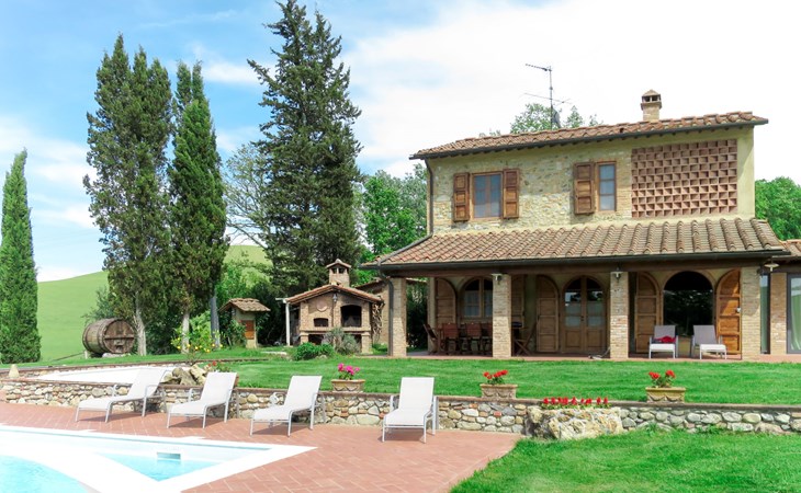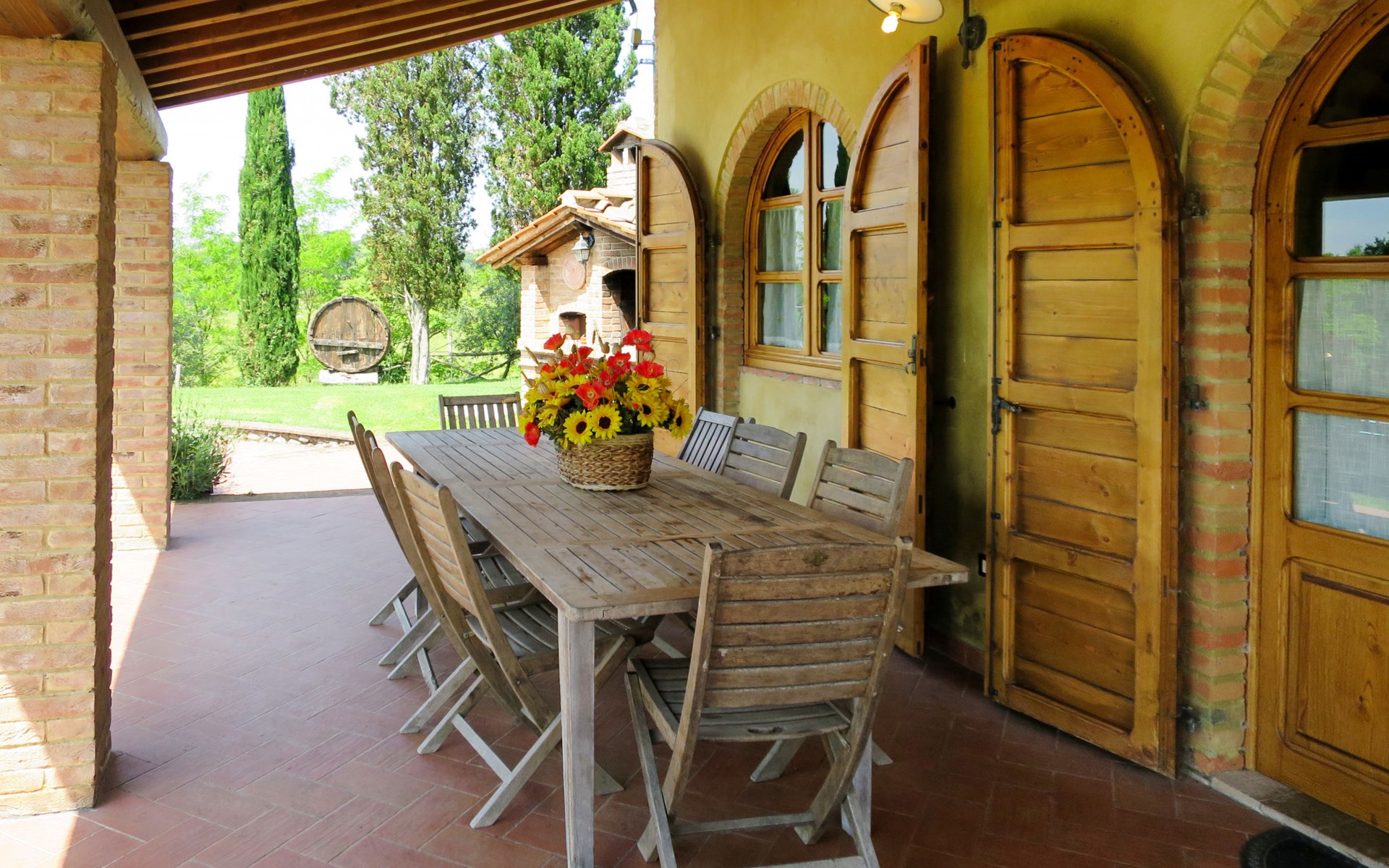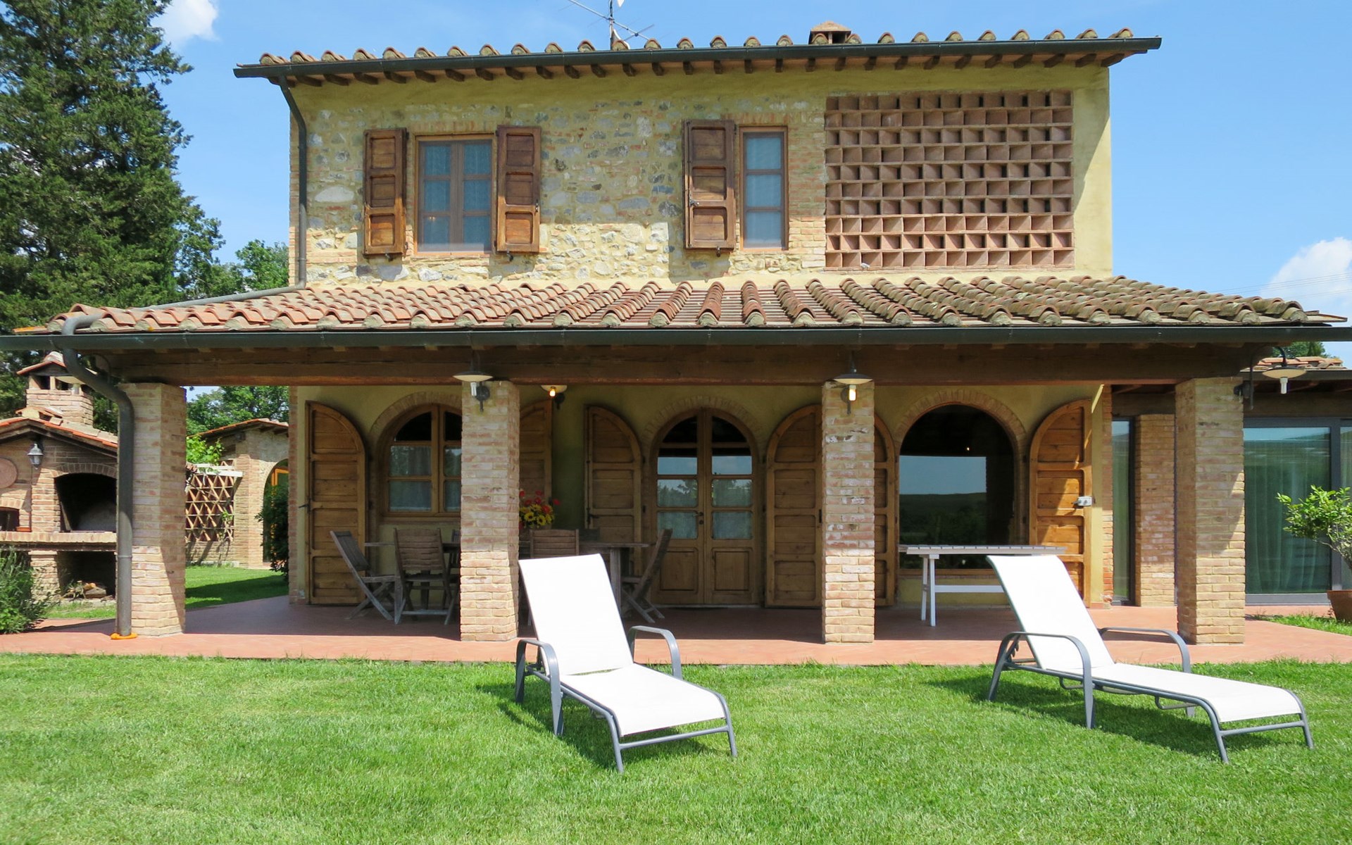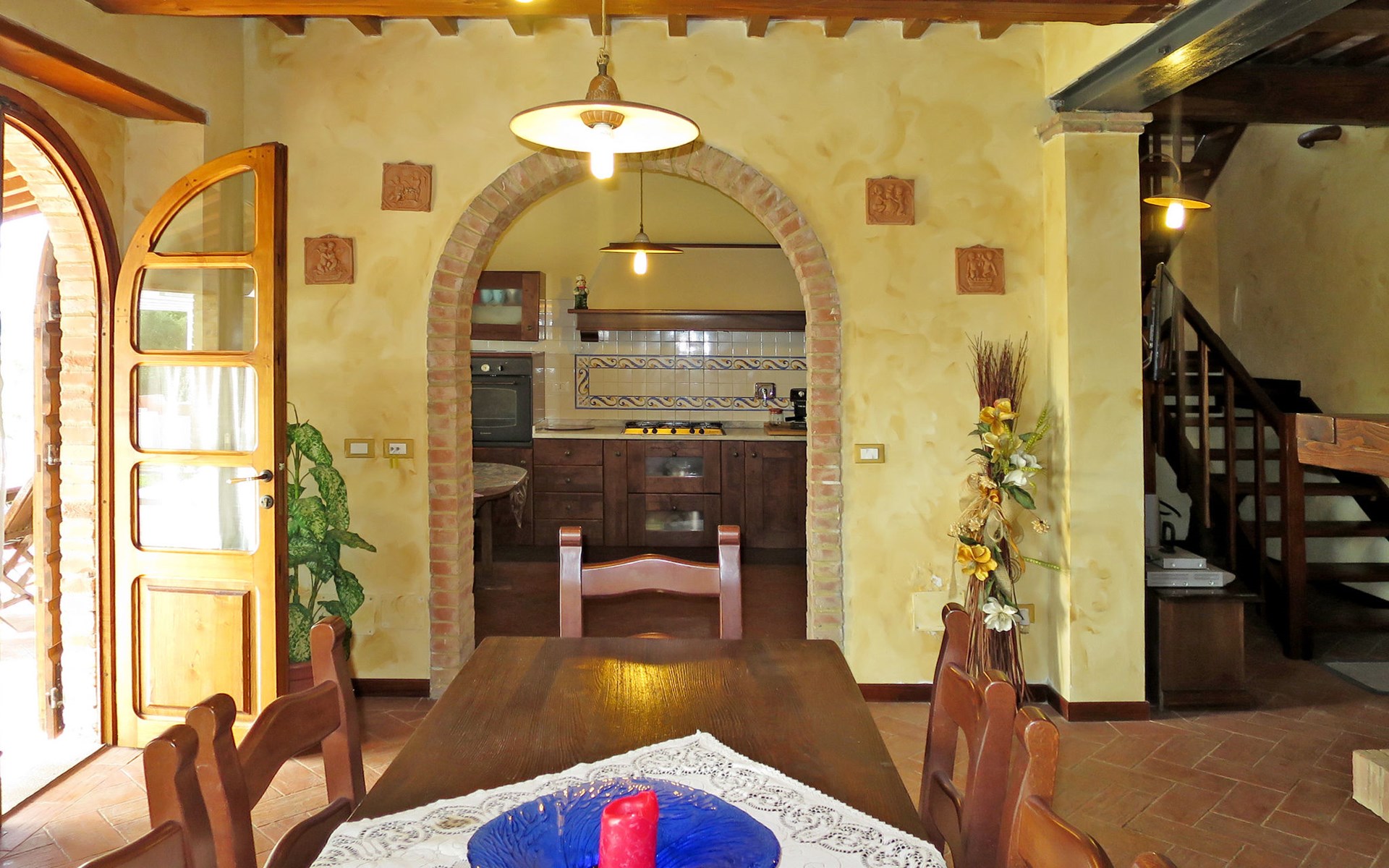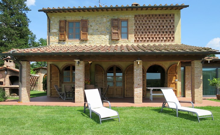 House, 2 storeys, surrounded by trees and fields. 13 km from the centre of Volterra, 8.5 km from the centre of Villamagna, 26 km from the centre of San Gimignano, in a secluded position, 48 km from the sea, in the countryside. Private: property 3'000 m2 (fenced), garden with lawn, swimming pool (12 x 6 m, seasonal availability: 16.Apr. - 21.Oct.). Outdoor shower, hot tub, pergola, terrace (25 m2), garden furniture, barbecue, pool maintenance by the owner/gardener. In the house: sauna (extra). Hot tub (extra). 700 m long bumpy motor access. Parking (for 3 cars) on the premises. Shop 8.5 km, supermarket 15 km, bus stop 1.5 km, sandy beach "Marina di Cecina" 48 km. Nearby attractions: Pisa 50 km, Siena 70 km, Firenze 90 km. Check-in after 8pm additional 150 euros to be paid on arrival.