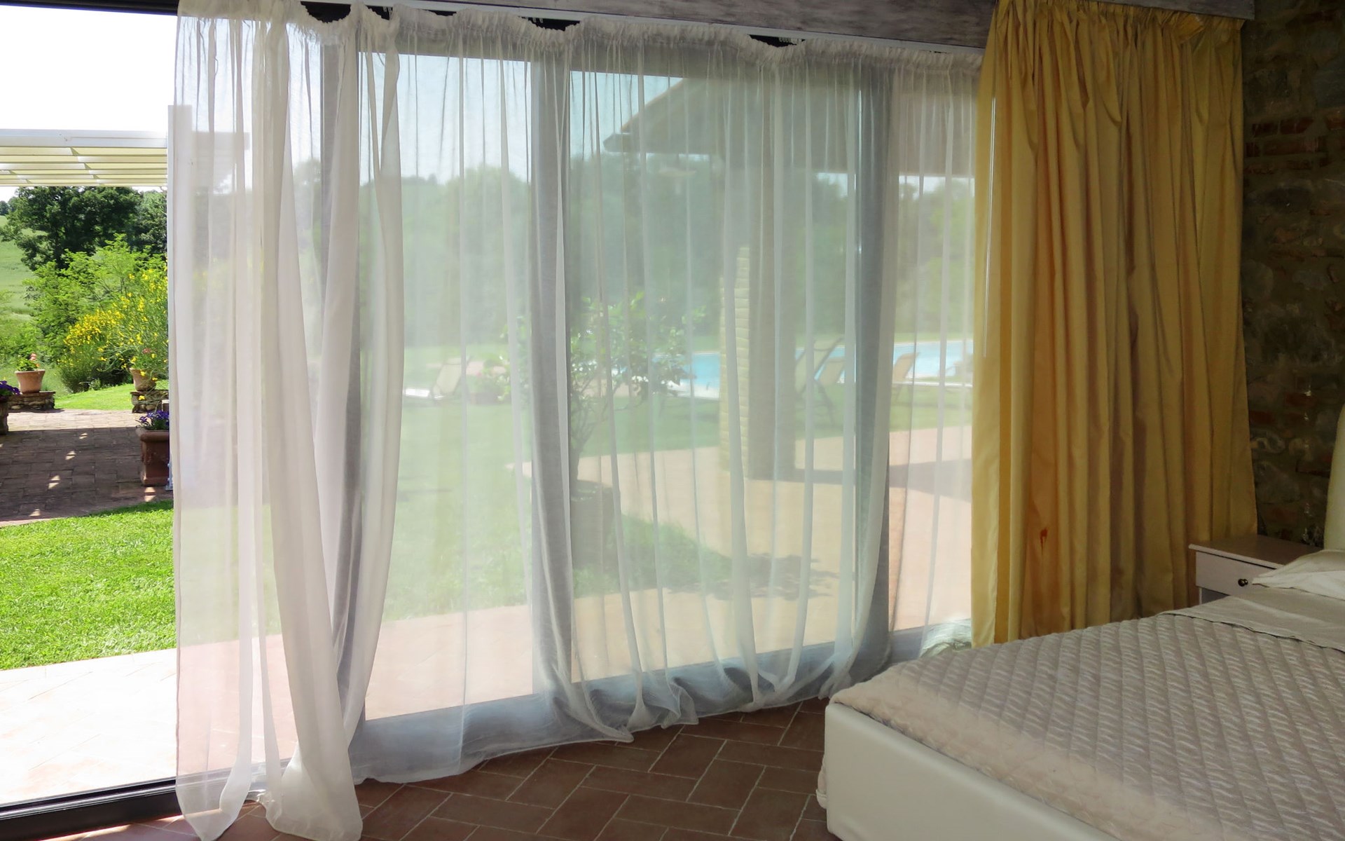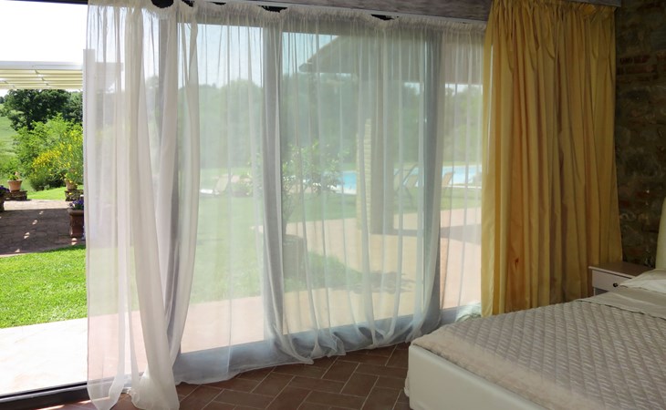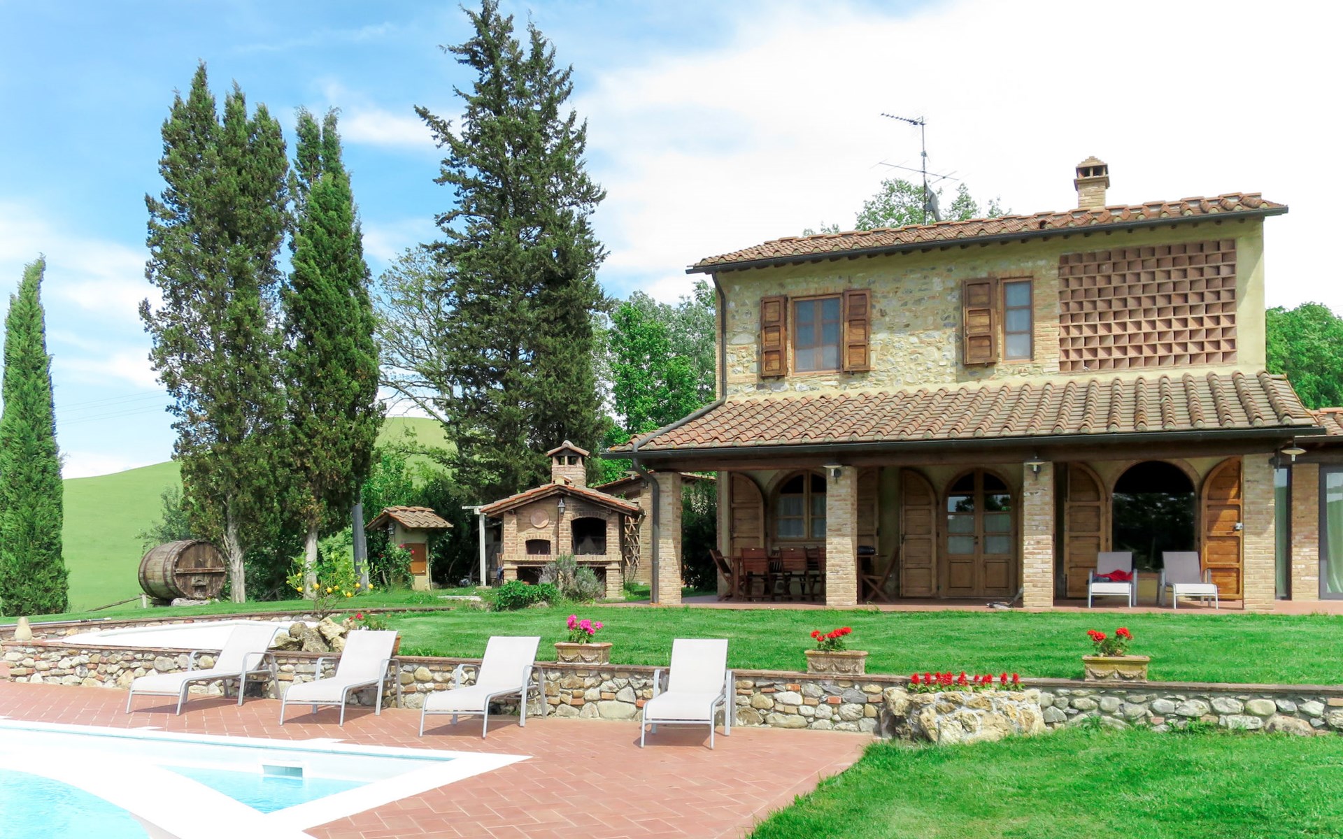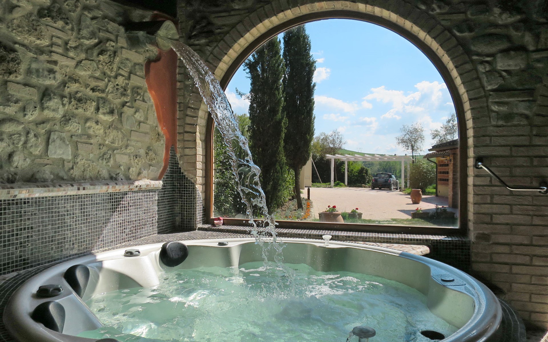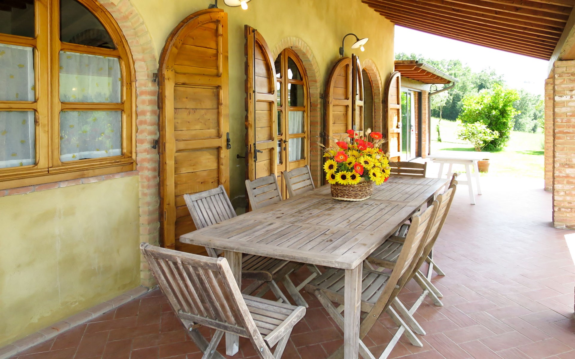 House, 2 storeys, surrounded by trees and fields. 13 km from the centre of Volterra, 8.5 km from the centre of Villamagna, 26 km from the centre of San Gimignano, in a secluded position, 48 km from the sea, in the countryside. Private: property 3'000 m2 (fenced), garden with lawn, swimming pool (12 x 6 m, seasonal availability: 16.Apr. - 21.Oct.). Outdoor shower, hot tub, pergola, terrace (25 m2), garden furniture, barbecue, pool maintenance by the owner/gardener. In the house: sauna (extra). Hot tub (extra). 700 m long bumpy motor access. Parking (for 3 cars) on the premises. Shop 8.5 km, supermarket 15 km, bus stop 1.5 km, sandy beach "Marina di Cecina" 48 km. Nearby attractions: Pisa 50 km, Siena 70 km, Firenze 90 km. Check-in after 8pm additional 150 euros to be paid on arrival.