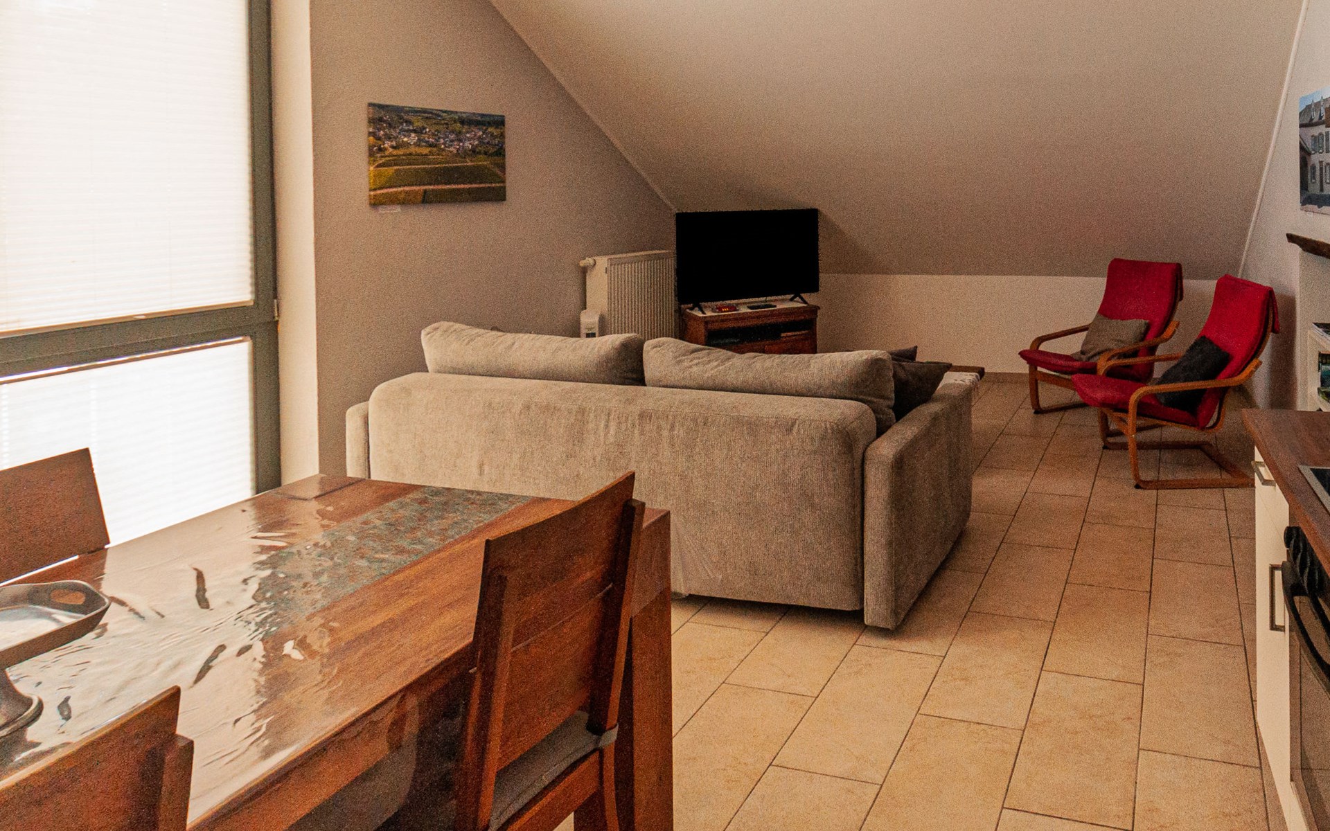 Greiveldange 21 km from Luxemburg: Comfortable farmhouse "Greiweldenger Leit As", 2 storeys. 3 apartments in the residence. In the resort, in a quiet position, 2 km from the river, in the countryside. In the house: washing machine, tumble dryer. Parking at the house. Supermarket 7 km, restaurant 1 km, bus stop "Gemengebréck Grieveldange" 100 m. Golf course (18 hole) 5 km. Nearby attractions: Weinbaumuseum 3 km, De Pfaffenthal 21 km, Parc Merveilleux 23 km. Hiking paths: Mullerthal Trail 35 km. Please note: car recommended, no lift. Baby equipment (included). Long stays (longer than 14 days) only on request.