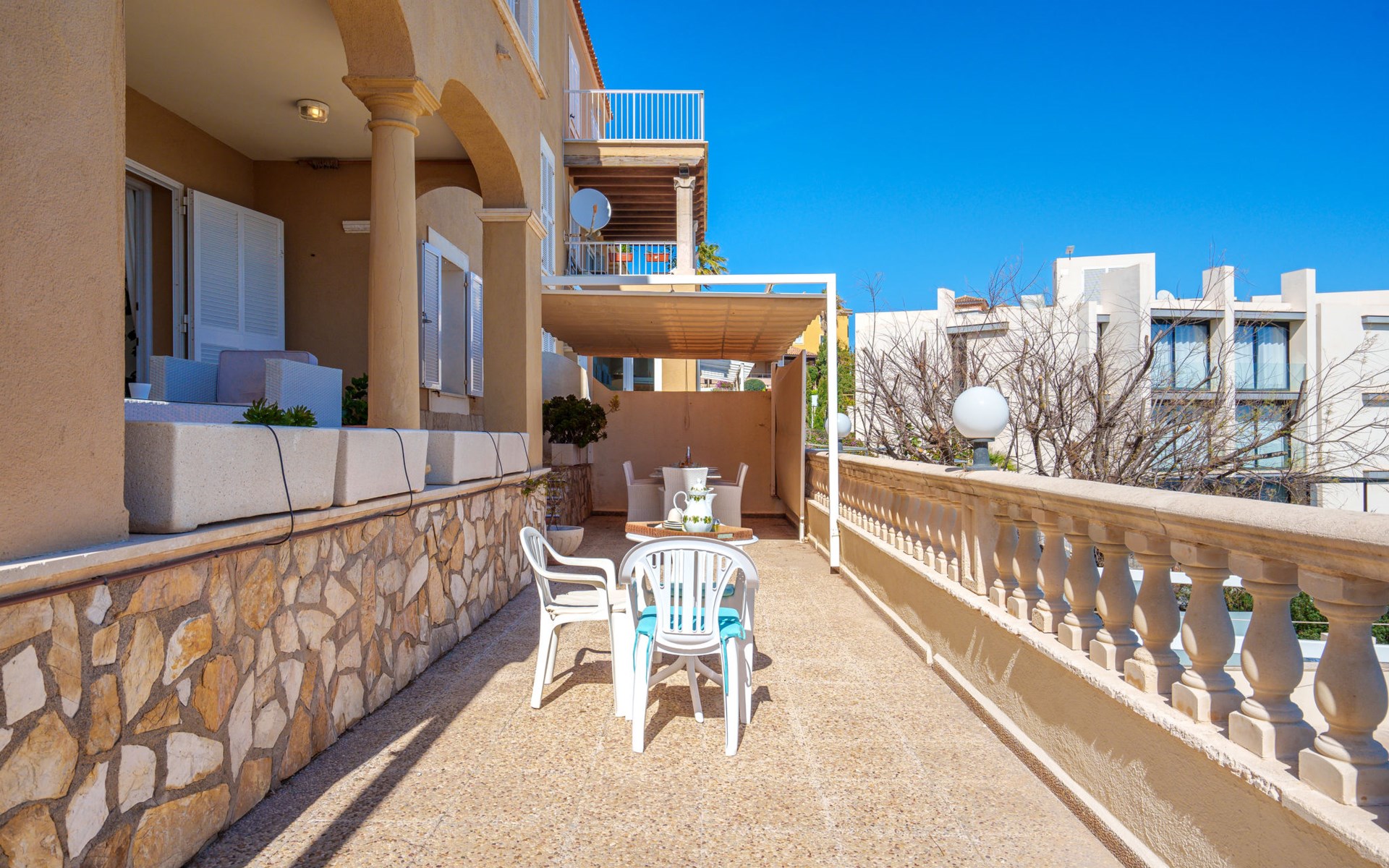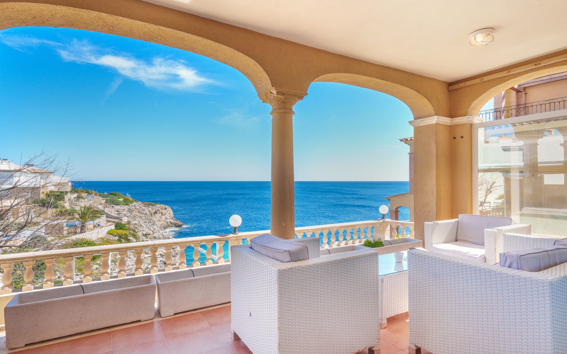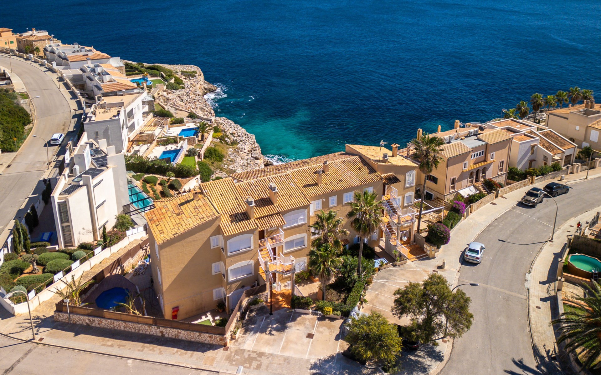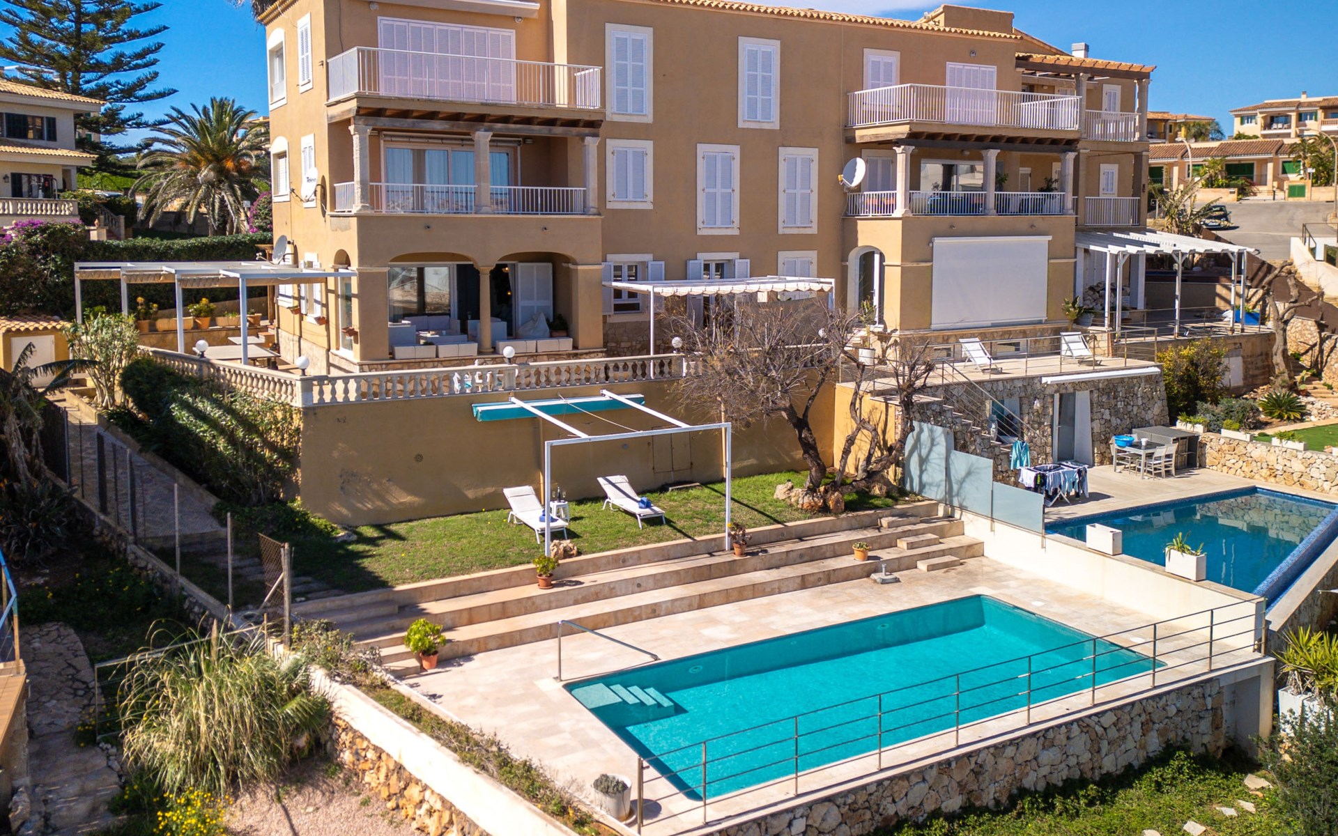 Cosy, simple apartment block "Magrana Over The Sea (Private Pool)". In the district of Cala Magrana, in the resort 1 km from the centre of Porto Cristo Novo, in a sunny position residential area (villas), 2 km from the edge of the forest, 20 m from the sea, 800 m from the beach, south-east facing position. Private: garden with lawn, swimming pool angular (7 x 3 m, depth 100 - 200 cm, seasonal availability: 01.Jan. - 31.Dec.). Outdoor shower, patio, pergola, garden furniture, barbecue, pool maintenance by the owner/gardener. In the house: central heating system. Shop 1 km, grocery 1 km, supermarket 1 km, restaurant 2 km, bar 2 km, bakery 1 km, café 1 km, pedestrian zone 1 km, 10 minute walk to the centre, bus stop "Bus Porto Cristo" 2.9 km, railway station "Manacor" 15 km, sandy beach "Cala Anguila" 800 m, rocky beach "Cala Magrana" 20 m, diving center 4 km. Sports harbour 4 km, marina 4 km, golf course (18 hole) 17 km, surf school 4 km, sailing school 4 km, tennis 17 km, riding stable 4 km, sports centre 17 km, walking paths from the house 500 m, cycle lane 50 m. Nearby attractions: Rafa Nadal Tennis Academy 17 km, Cuevas del Drach 5 km, Cuevas dels Hams 3.5 km, Cala Anguila - Cala Mendia, Portocristo. Please note: car recommended. Object suitable for 6 adults. The owner does not accept any youth groups. Airfield 62 km from the property. Neighbourhood highly sensitive to noise. Quietness and good behaviour expected.