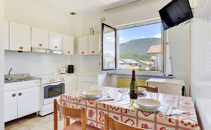 Beautiful apartment block "Agostini", 450 m a.s.l., 3 storeys. 7 apartments in the property. 800 m from the centre of Caldonazzo, 3.5 km from the centre of Levico, 21 km from the centre of Trento, in a sunny position in the residential district, 1.5 km from the lake. For shared use: property (fenced), beautiful, well-kept garden (fenced) with lawn and plants. Patio, garden furniture, barbecue (slide, swing). In the house: storage room for bicycles. Parking at the house on the premises. Supermarket 300 m, restaurant 400 m, bicycle rental 800 m, bus stop "Linee B401/450 (Trento-Levico)" 500 m, railway station "Caldonazzo (Trento-Bassano)", pebble beach 1.6 km, indoor swimming pool 3.8 km, thermal baths "Vetriolo Terme" 15 km. Golf course (6 hole) 11 km, cycle lane 800 m. Nearby attractions: Parco Fluviale 'Torrente Centa' 4 km, Ciclabile/Radweg/Cycle Path Valsugana 800 m, Mountainbike: Giro dei Laghi (24 km) 800 m, Giro Antiche Tradizioni (28 km) 1 km, Giro delle Pozze (21 km, Vetriolo) 17 km. Hiking paths: Caldonazzo: Sentiero della Pace 1 km, Tenna: Arborè 7 km, Monte Panarotta (2002 m) 22 km. Please note: the owner lives in the same residence. Additional accommodations can be booked. Property ref. IT3665.608.1-2 is situated on the same property.