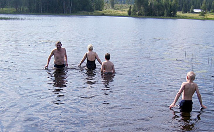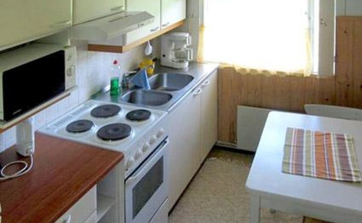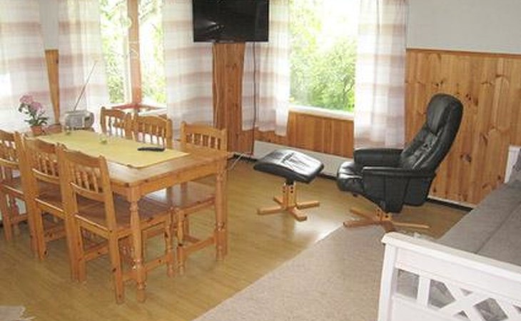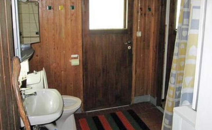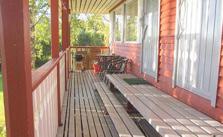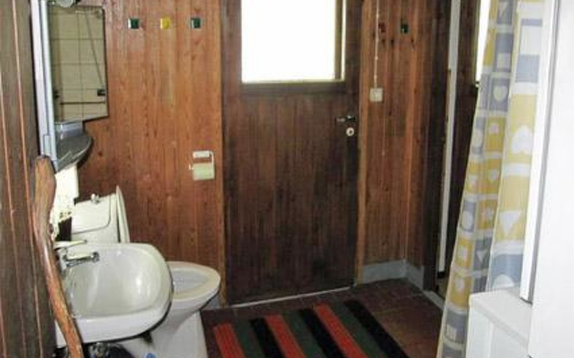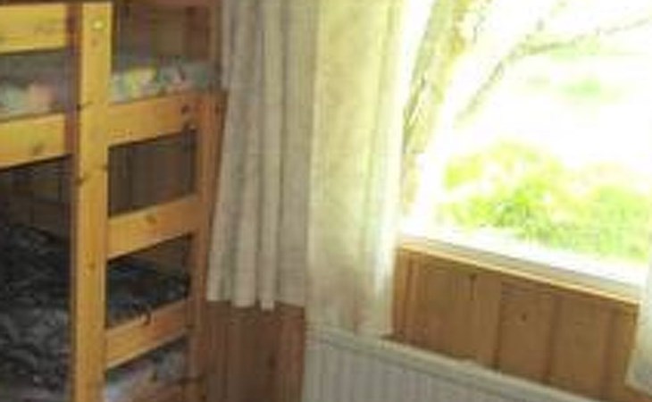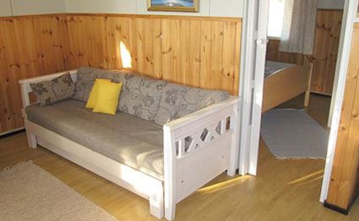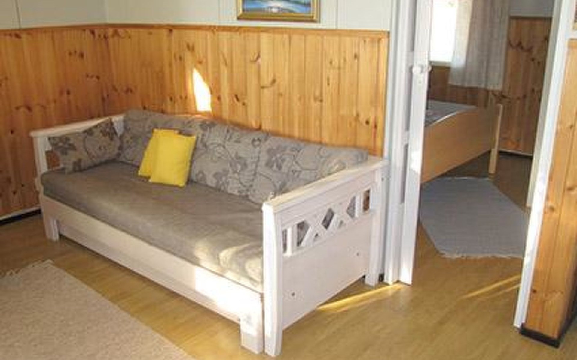 Wooden cabin 1980, renovated 2008, living room/kitchen with 2 extra beds, bedroom with double bed, bedroom with bunk bed, sauna, washroom, open vernada.
