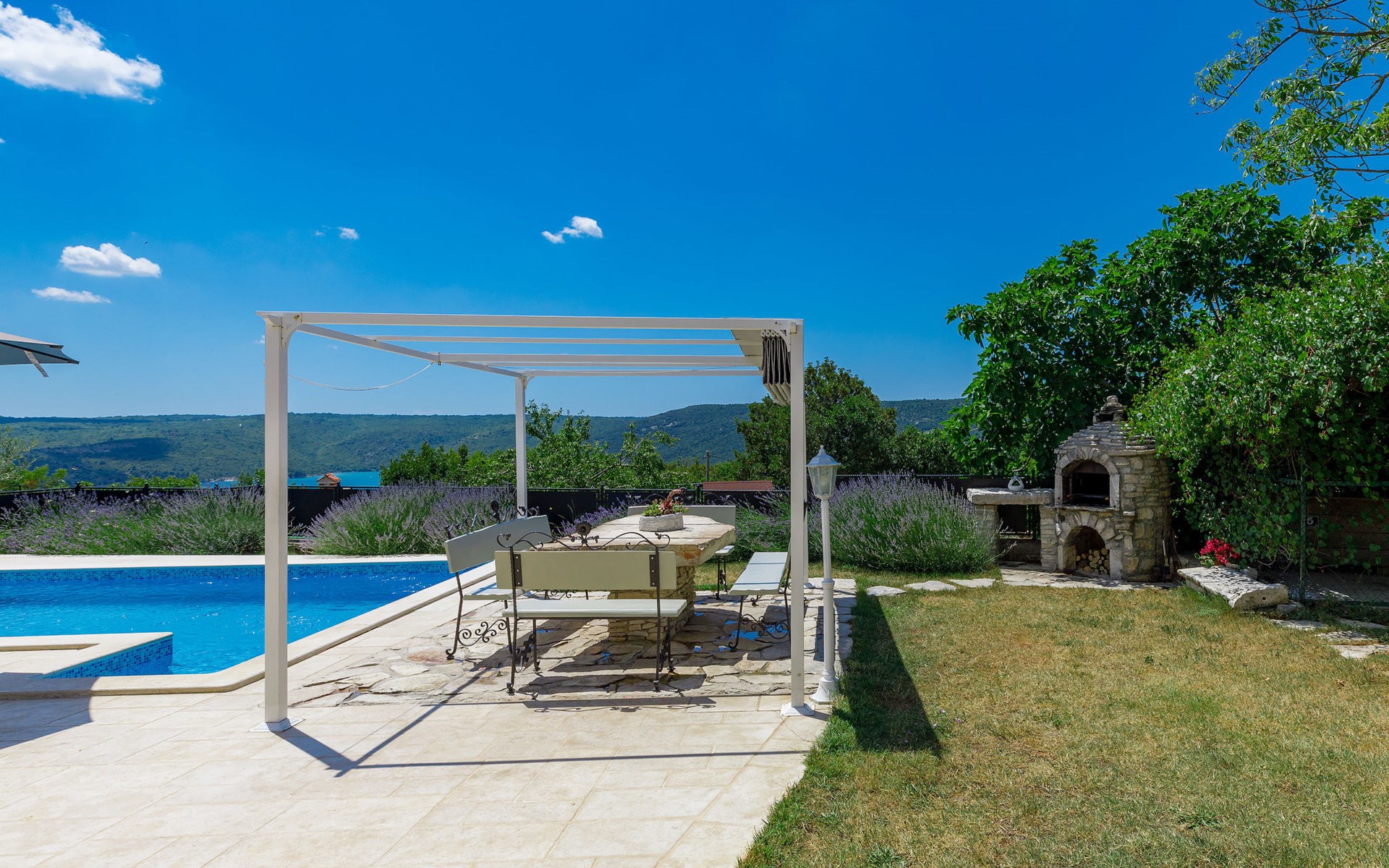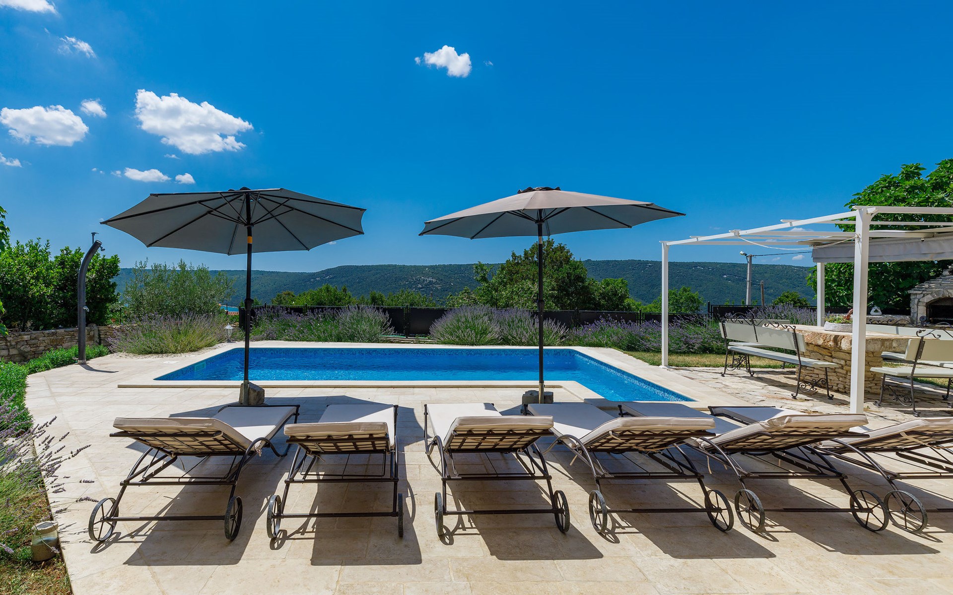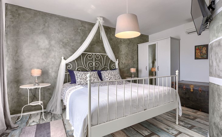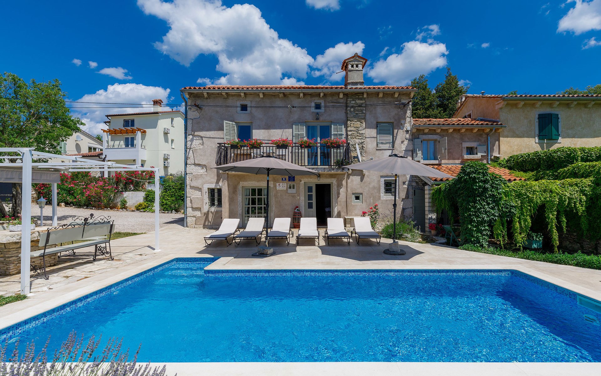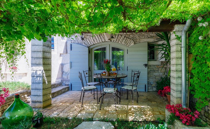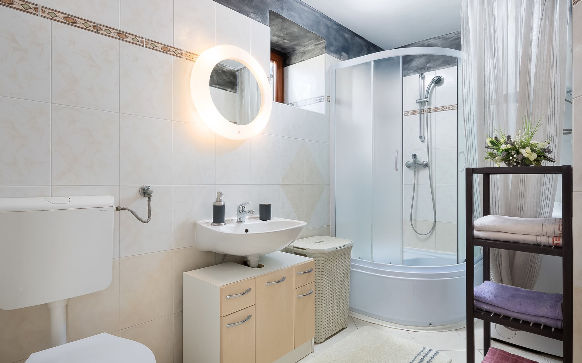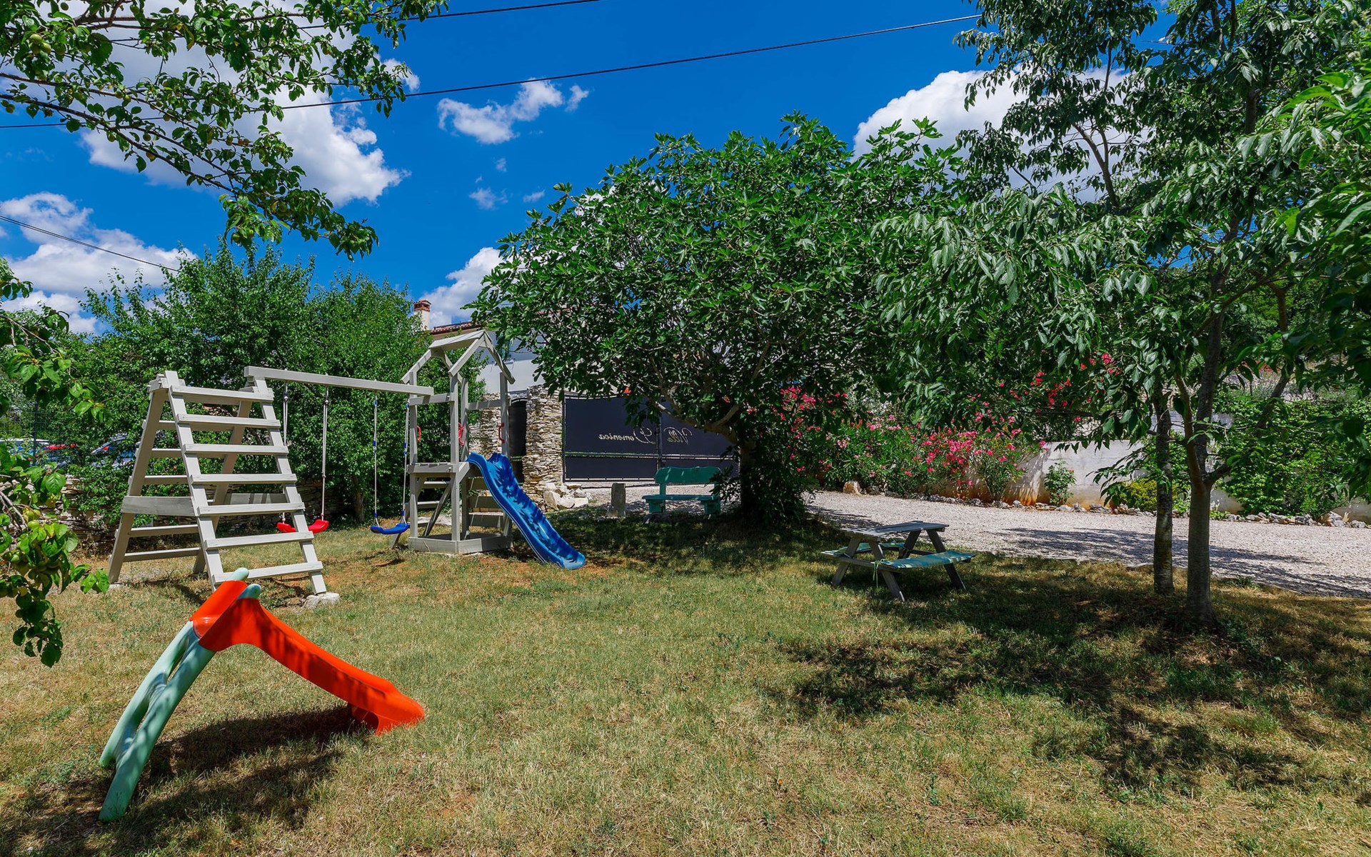 Semi-detached house "Villa Domenica", 2 storeys, from the 18th century, renovated. 1.1 km from the centre of Trget, outside the resort, in a quiet, sunny, elevated position, 900 m from the sea, 900 m from the beach, in a cul-de-sac. Private: property 700 m2, garden with wildlife garden, swimming pool angular (8 x 3 m, depth 140 cm, seasonal availability: 11.Apr. - 24.Oct.) with internal staircase. Outdoor shower, terrace (10 m2), garden furniture, barbecue, children's playground (swing). In the house: internet access, washing machine. Parking (for 3 cars) at the house on the premises. Shop 1.1 km, restaurant 600 m, bus stop 6.6 km, pebble beach 900 m. Available: box for dogs (included in the price).