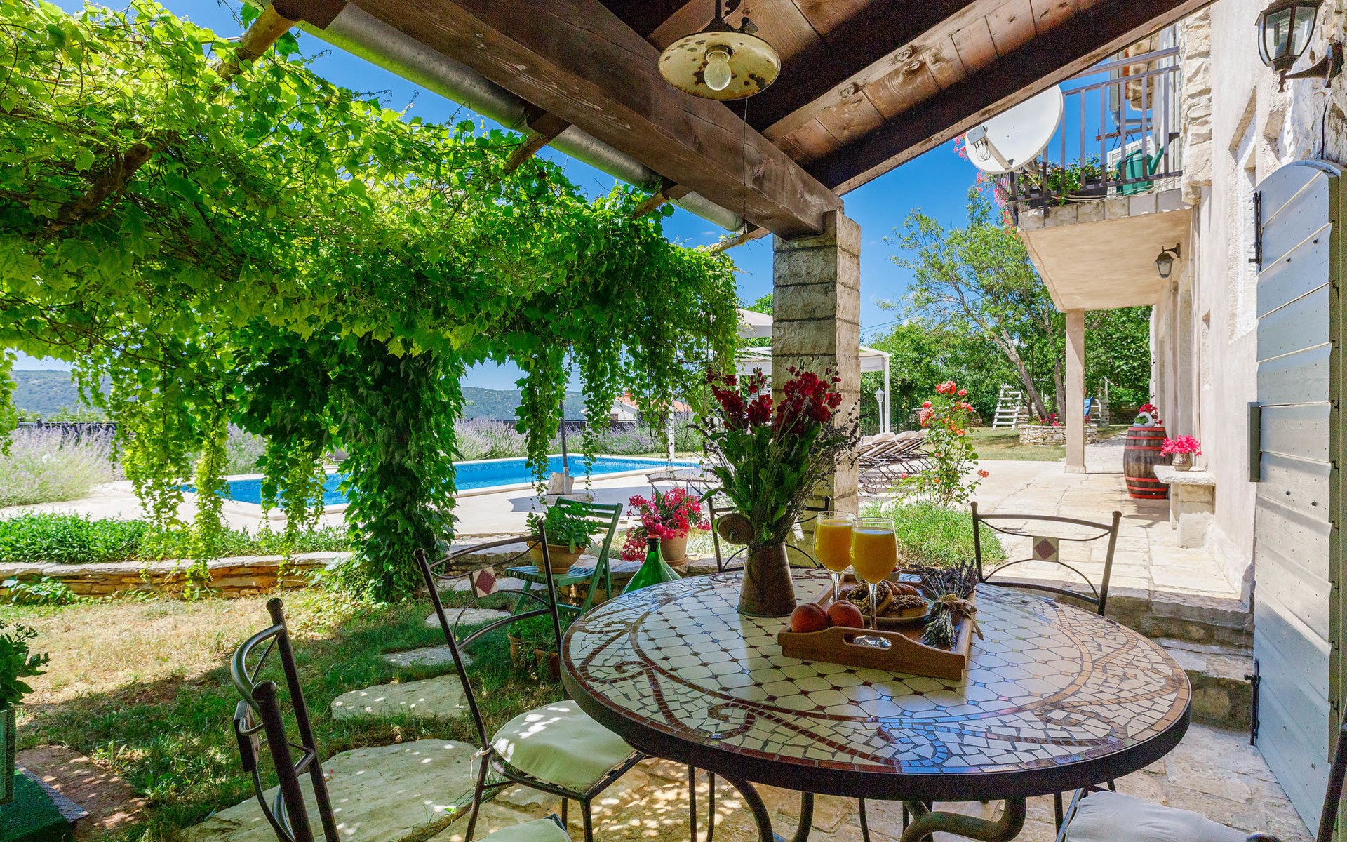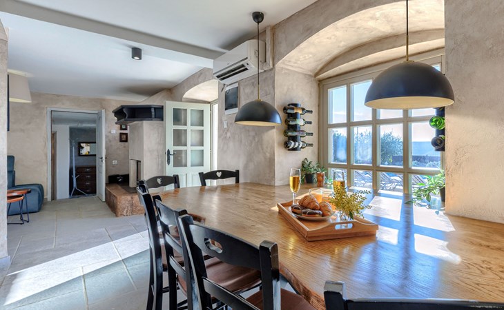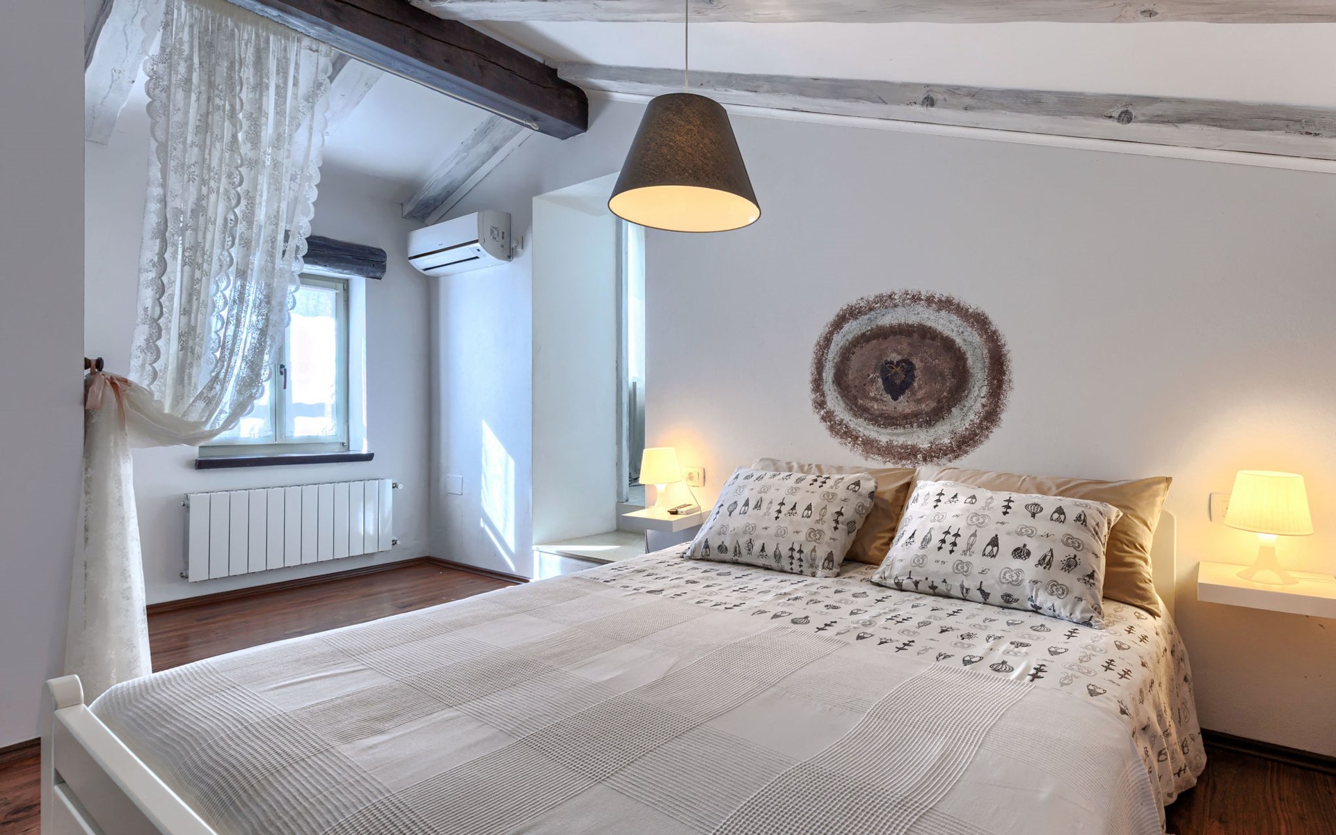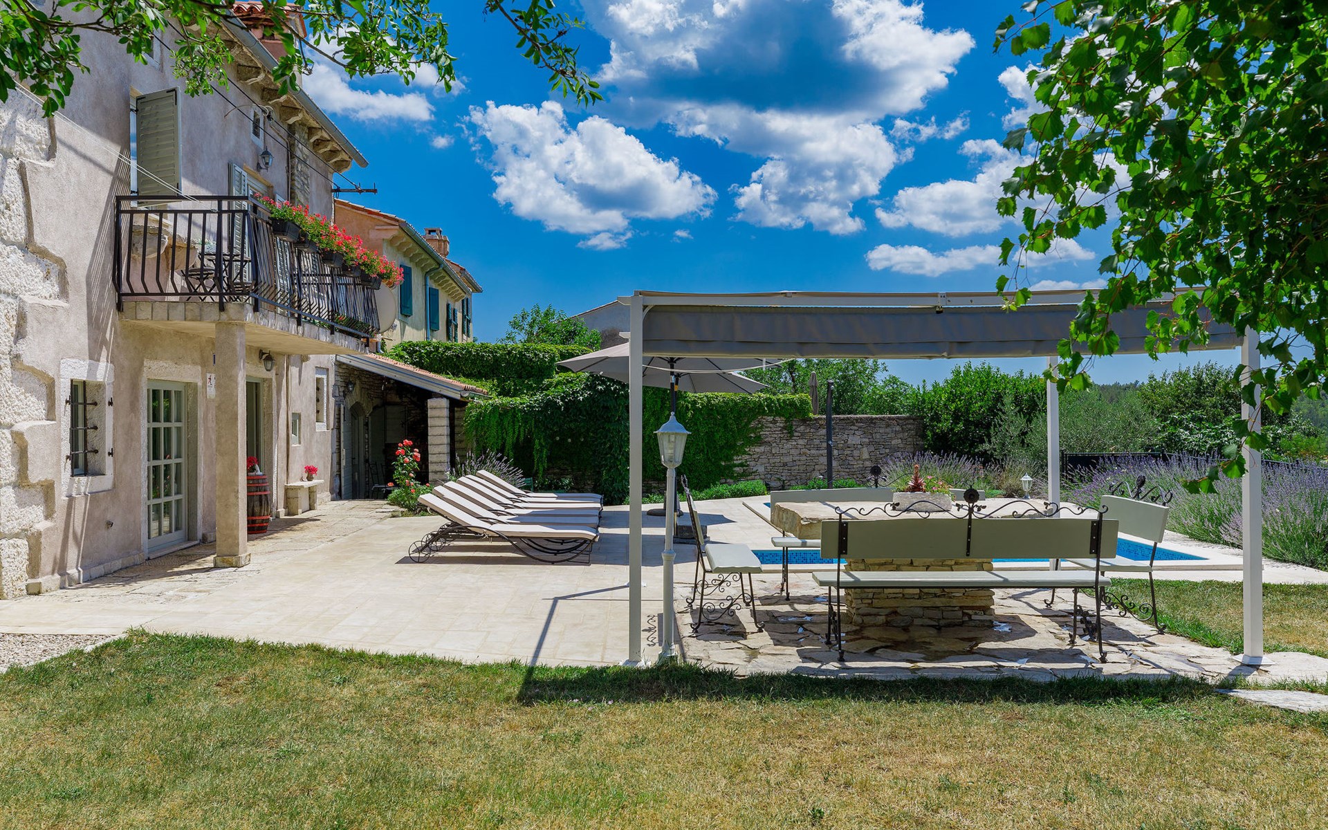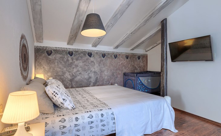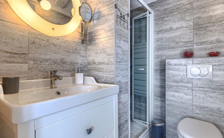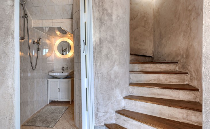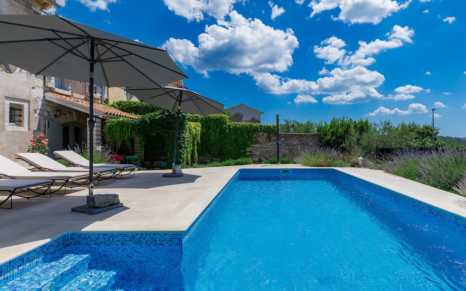 Semi-detached house "Villa Domenica", 2 storeys, from the 18th century, renovated. 1.1 km from the centre of Trget, outside the resort, in a quiet, sunny, elevated position, 900 m from the sea, 900 m from the beach, in a cul-de-sac. Private: property 700 m2, garden with wildlife garden, swimming pool angular (8 x 3 m, depth 140 cm, seasonal availability: 11.Apr. - 24.Oct.) with internal staircase. Outdoor shower, terrace (10 m2), garden furniture, barbecue, children's playground (swing). In the house: internet access, washing machine. Parking (for 3 cars) at the house on the premises. Shop 1.1 km, restaurant 600 m, bus stop 6.6 km, pebble beach 900 m. Available: box for dogs (included in the price).