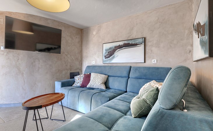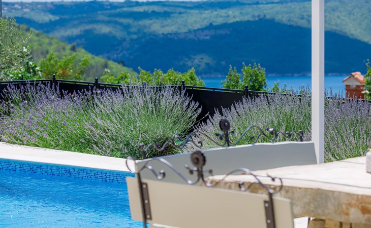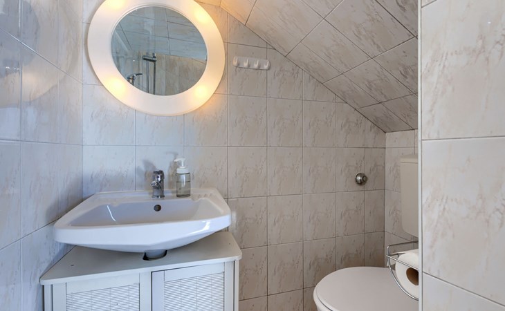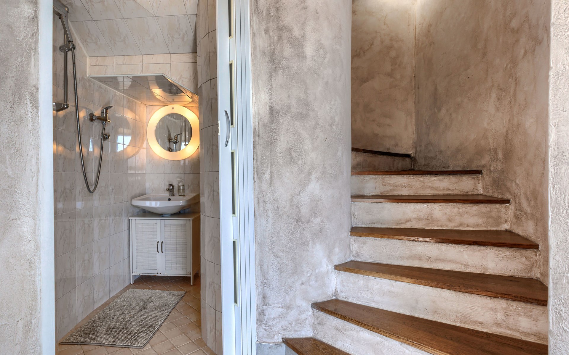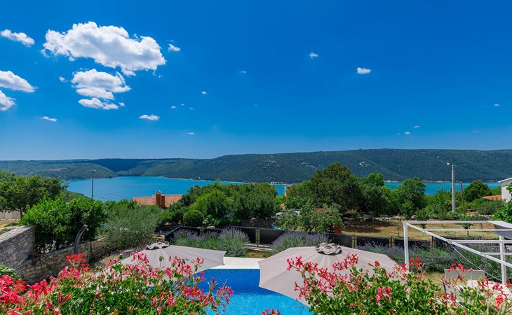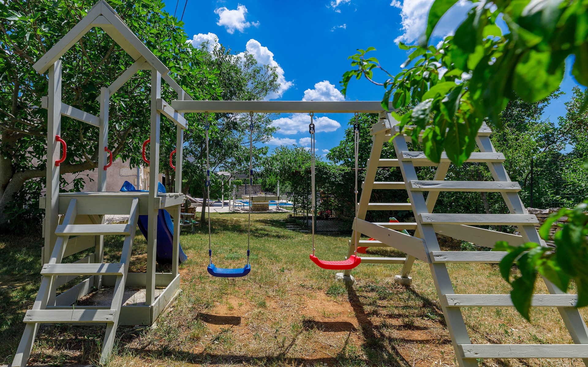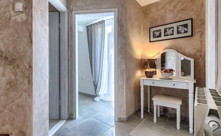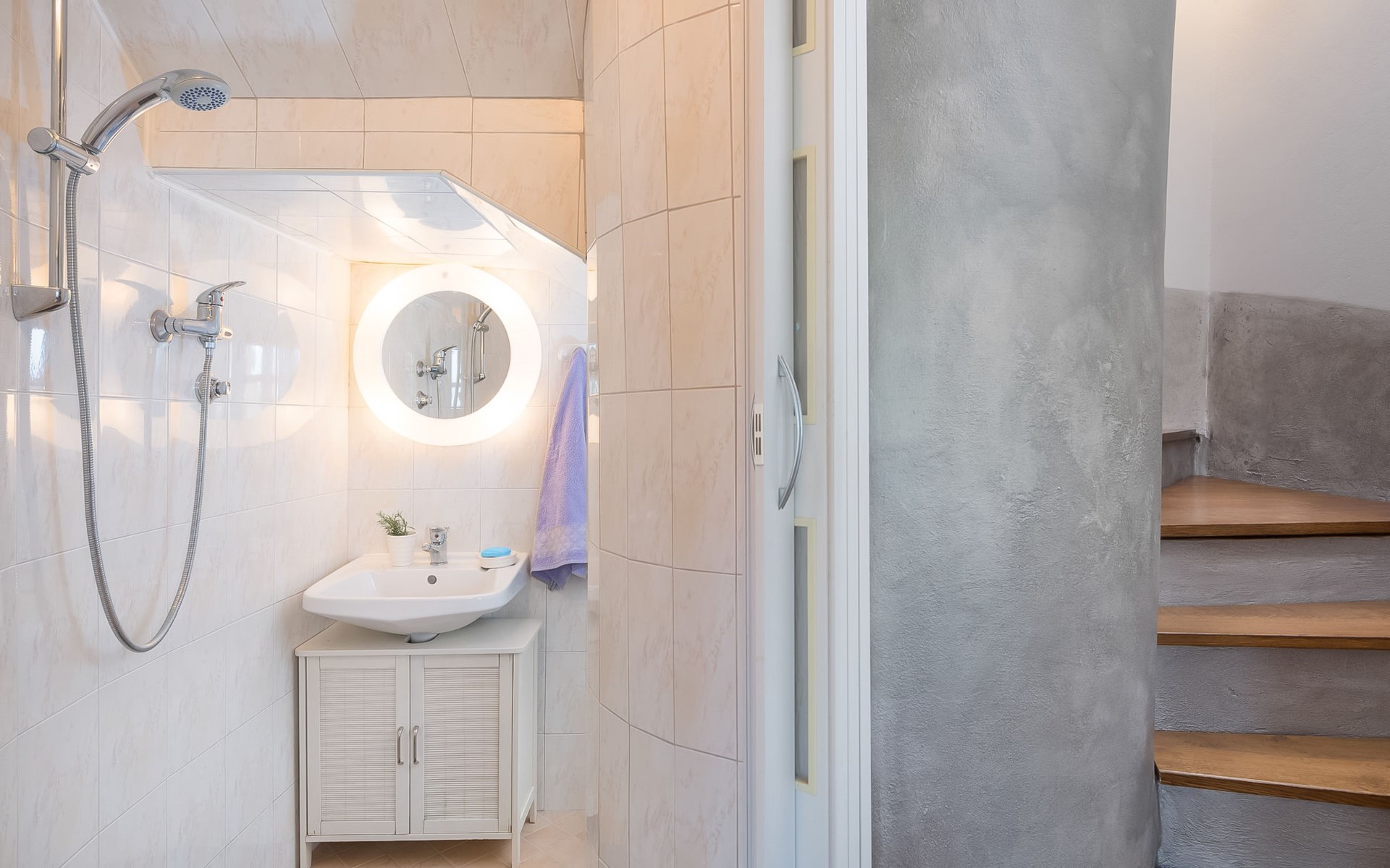 Semi-detached house "Villa Domenica", 2 storeys, from the 18th century, renovated. 1.1 km from the centre of Trget, outside the resort, in a quiet, sunny, elevated position, 900 m from the sea, 900 m from the beach, in a cul-de-sac. Private: property 700 m2, garden with wildlife garden, swimming pool angular (8 x 3 m, depth 140 cm, seasonal availability: 11.Apr. - 24.Oct.) with internal staircase. Outdoor shower, terrace (10 m2), garden furniture, barbecue, children's playground (swing). In the house: internet access, washing machine. Parking (for 3 cars) at the house on the premises. Shop 1.1 km, restaurant 600 m, bus stop 6.6 km, pebble beach 900 m. Available: box for dogs (included in the price).