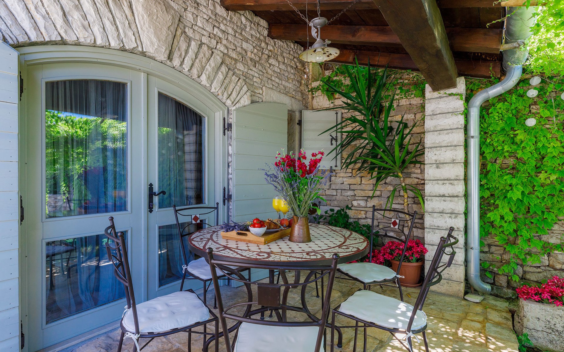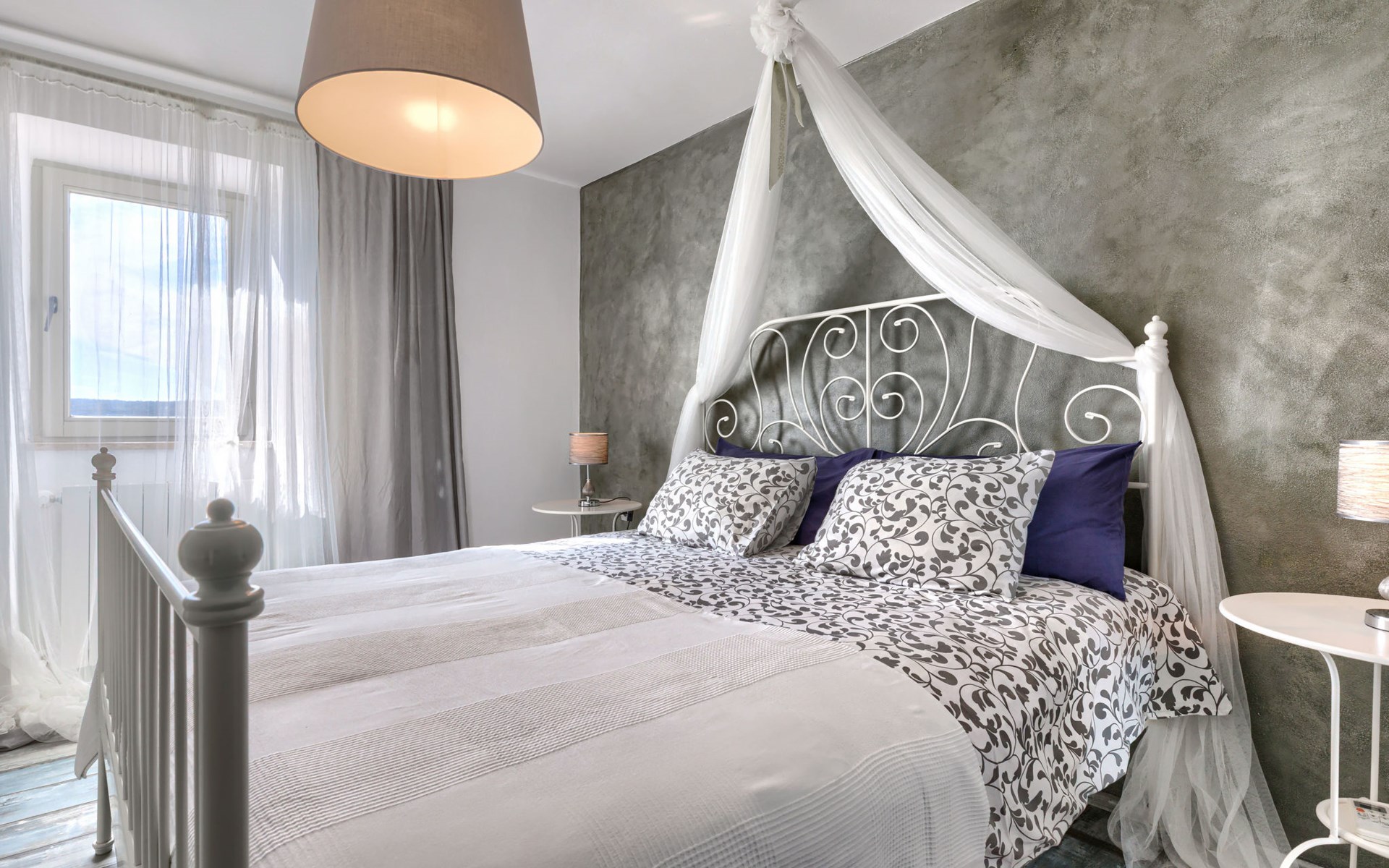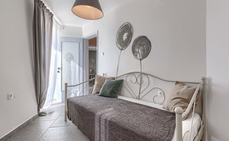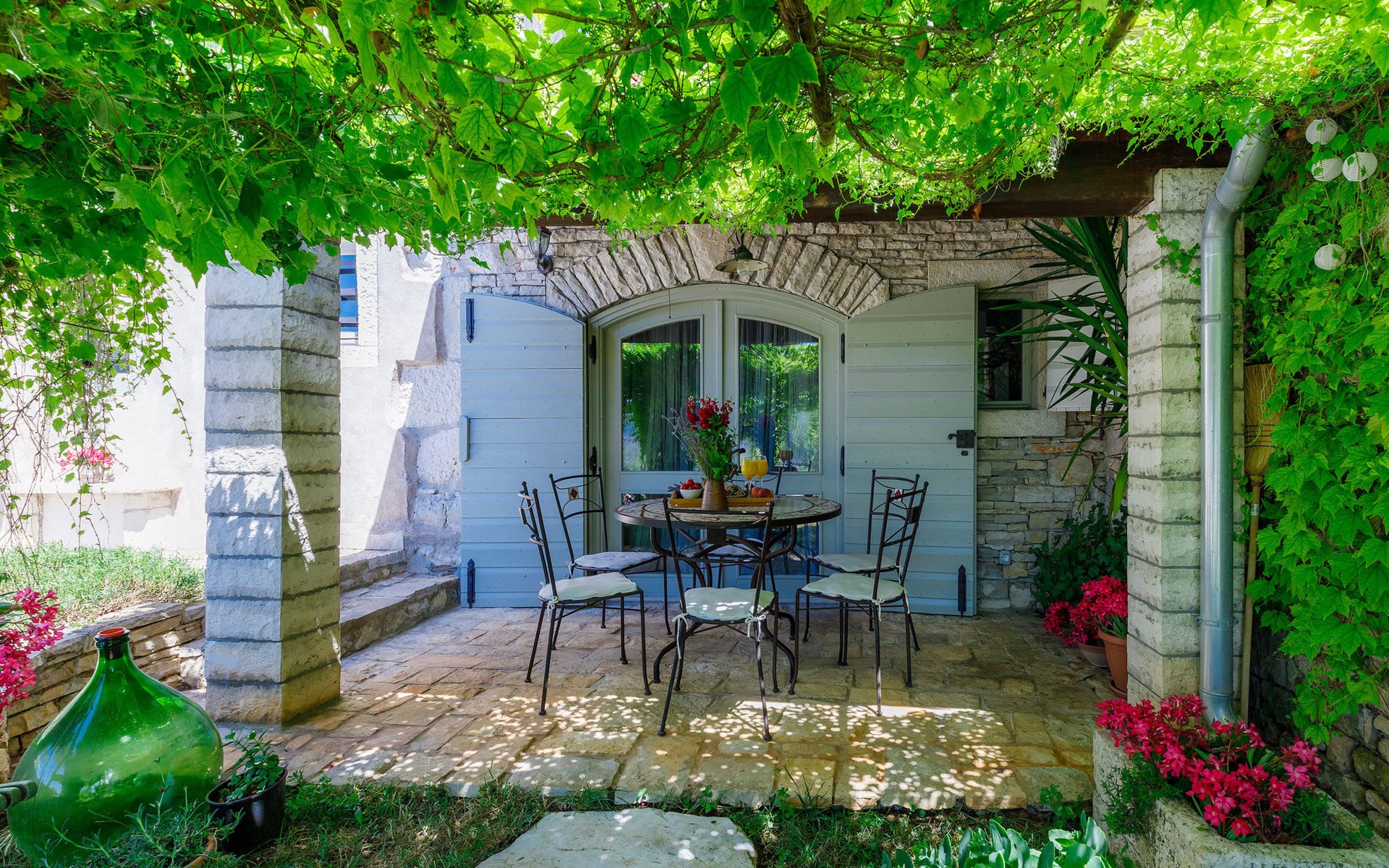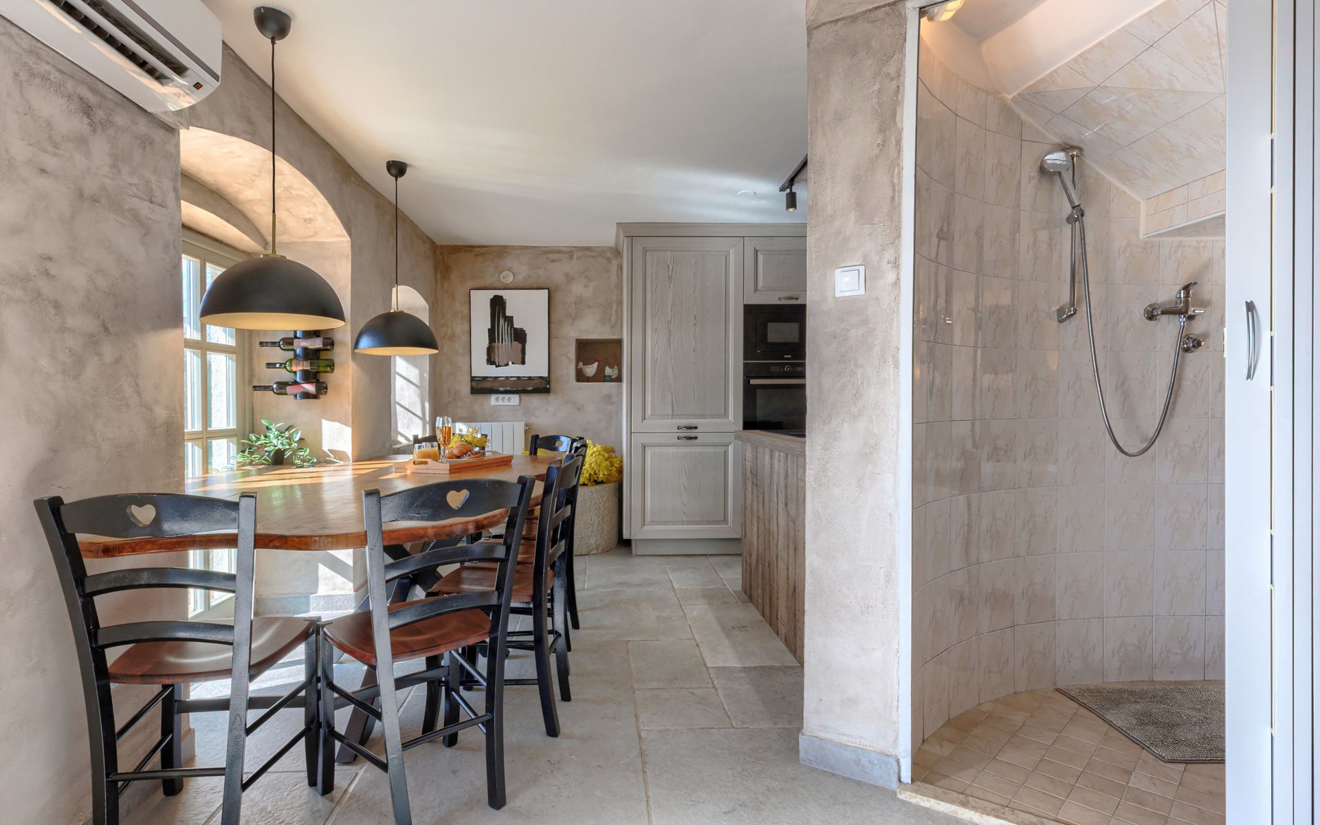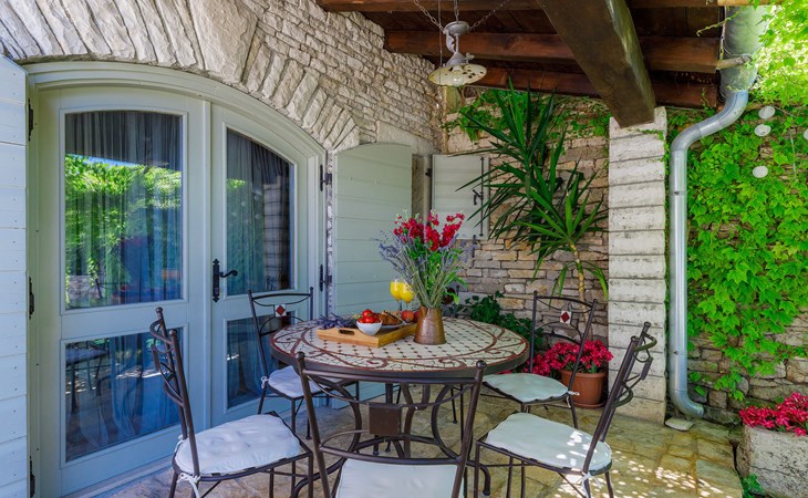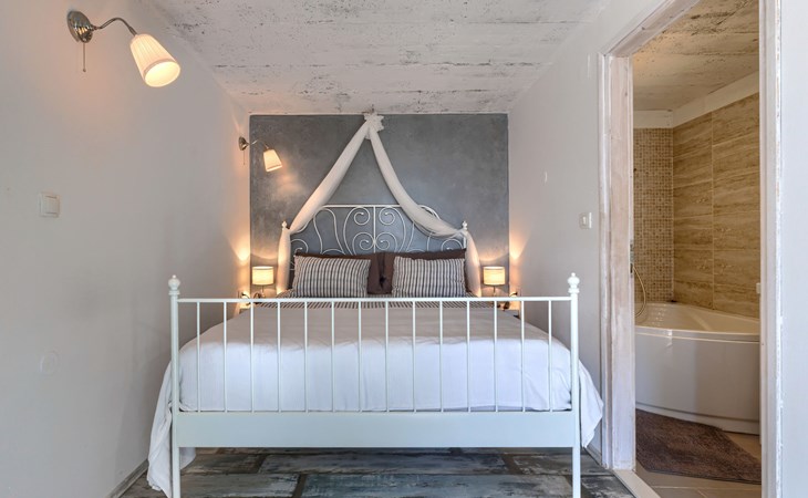 Semi-detached house "Villa Domenica", 2 storeys, from the 18th century, renovated. 1.1 km from the centre of Trget, outside the resort, in a quiet, sunny, elevated position, 900 m from the sea, 900 m from the beach, in a cul-de-sac. Private: property 700 m2, garden with wildlife garden, swimming pool angular (8 x 3 m, depth 140 cm, seasonal availability: 11.Apr. - 24.Oct.) with internal staircase. Outdoor shower, terrace (10 m2), garden furniture, barbecue, children's playground (swing). In the house: internet access, washing machine. Parking (for 3 cars) at the house on the premises. Shop 1.1 km, restaurant 600 m, bus stop 6.6 km, pebble beach 900 m. Available: box for dogs (included in the price).