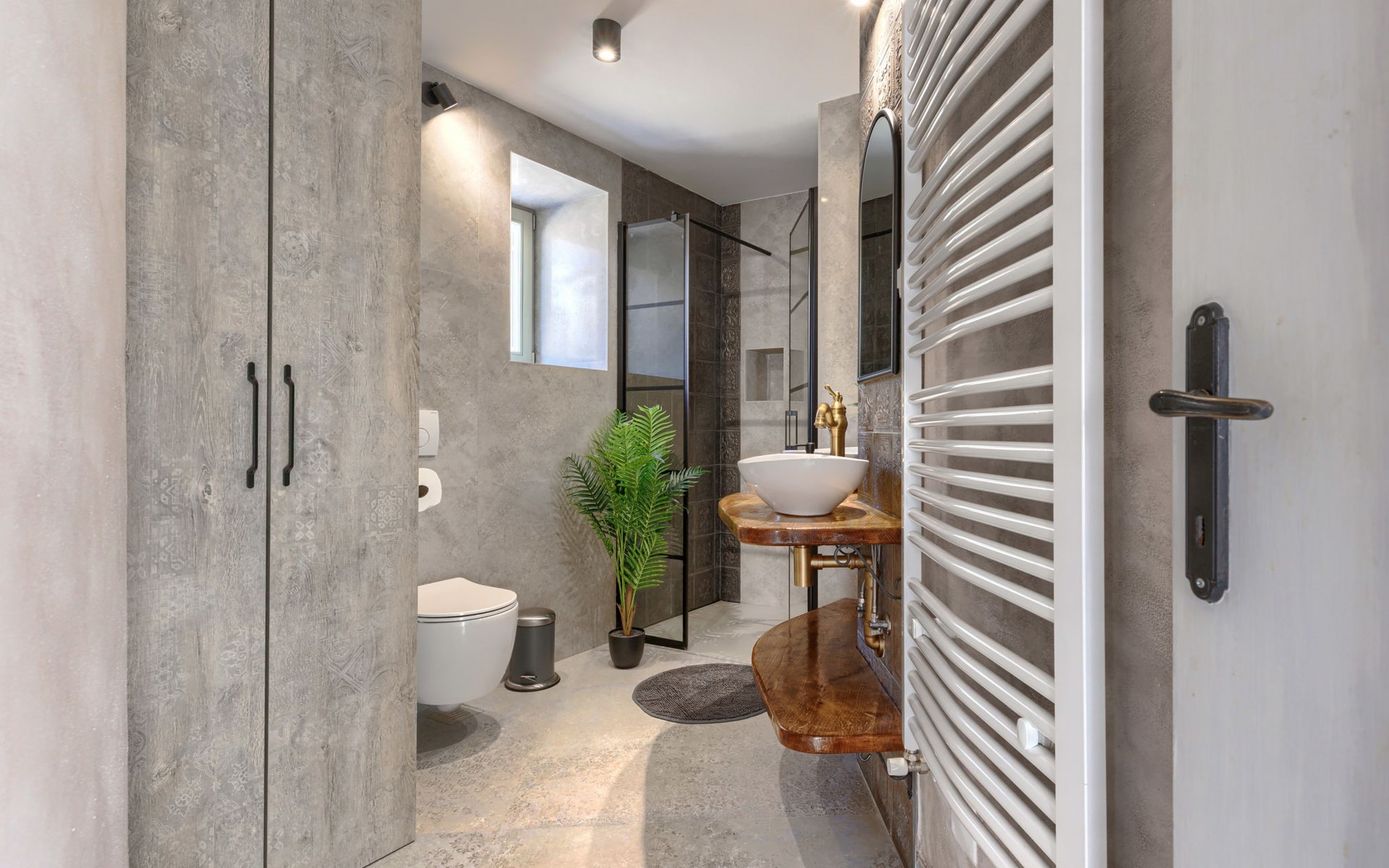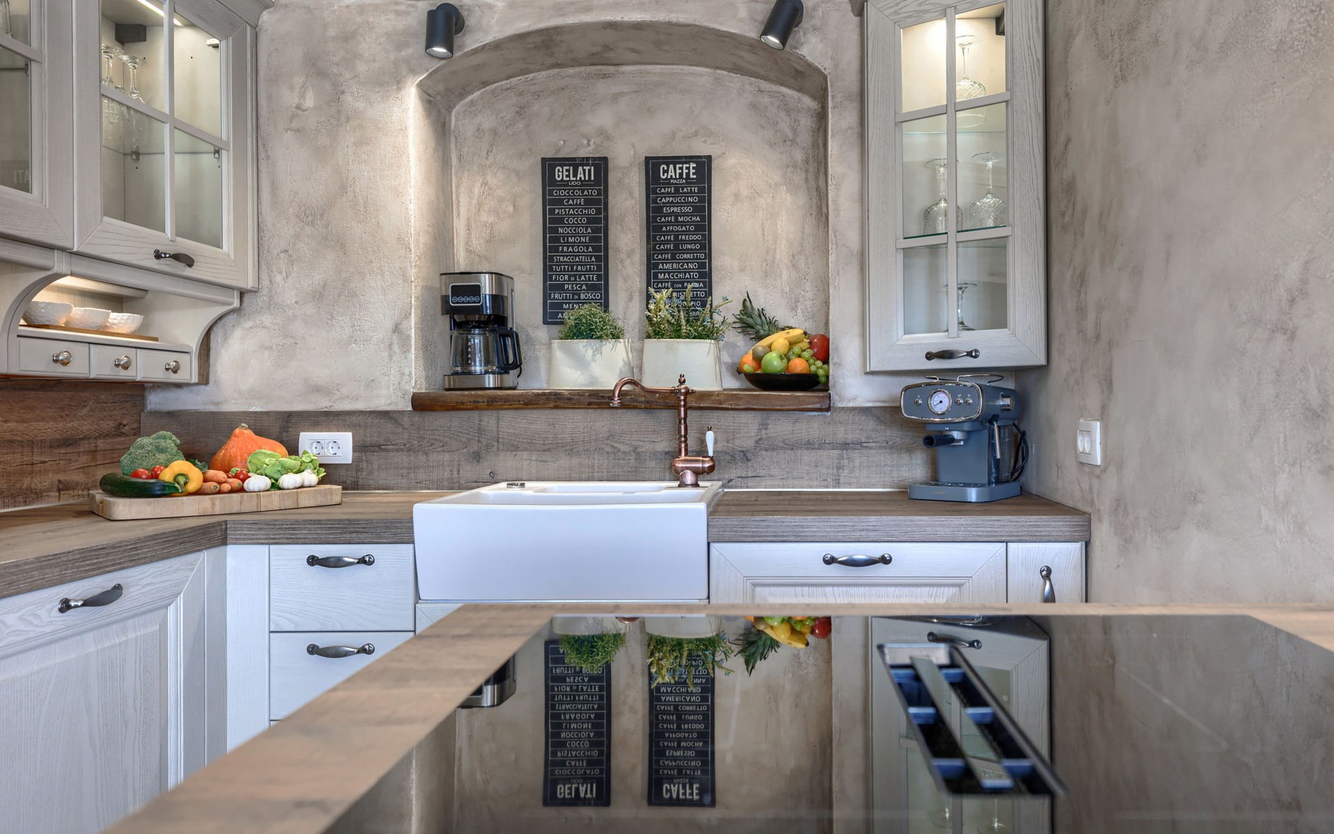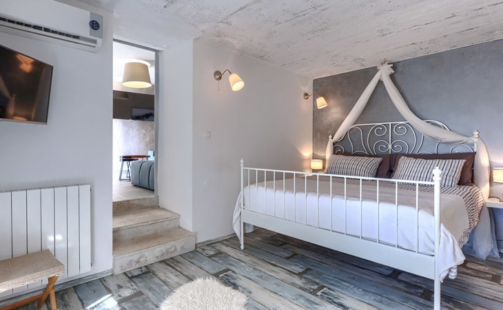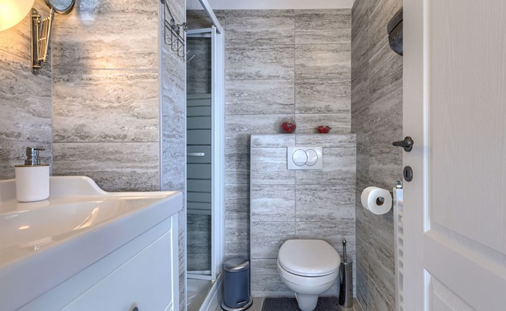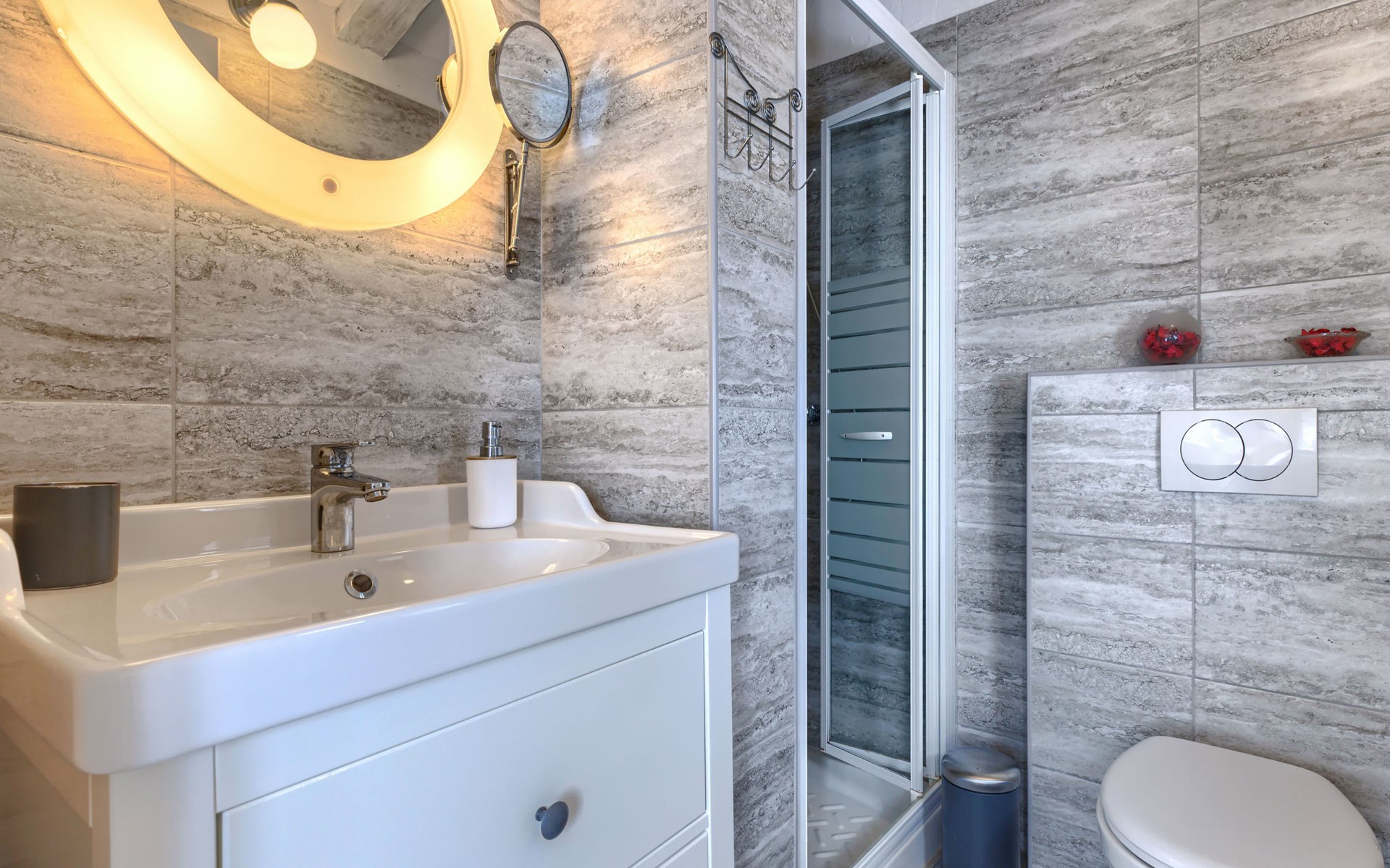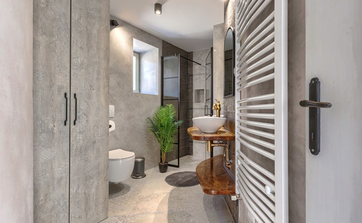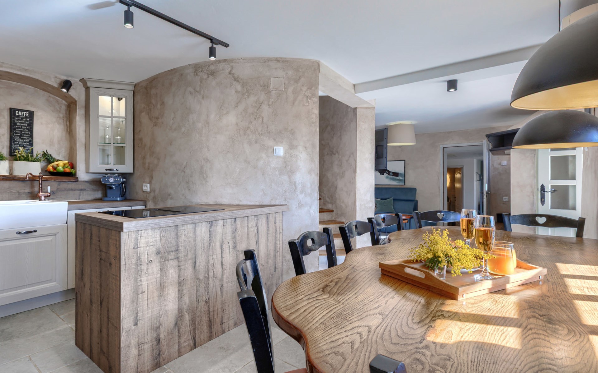 Semi-detached house "Villa Domenica", 2 storeys, from the 18th century, renovated. 1.1 km from the centre of Trget, outside the resort, in a quiet, sunny, elevated position, 900 m from the sea, 900 m from the beach, in a cul-de-sac. Private: property 700 m2, garden with wildlife garden, swimming pool angular (8 x 3 m, depth 140 cm, seasonal availability: 11.Apr. - 24.Oct.) with internal staircase. Outdoor shower, terrace (10 m2), garden furniture, barbecue, children's playground (swing). In the house: internet access, washing machine. Parking (for 3 cars) at the house on the premises. Shop 1.1 km, restaurant 600 m, bus stop 6.6 km, pebble beach 900 m. Available: box for dogs (included in the price).