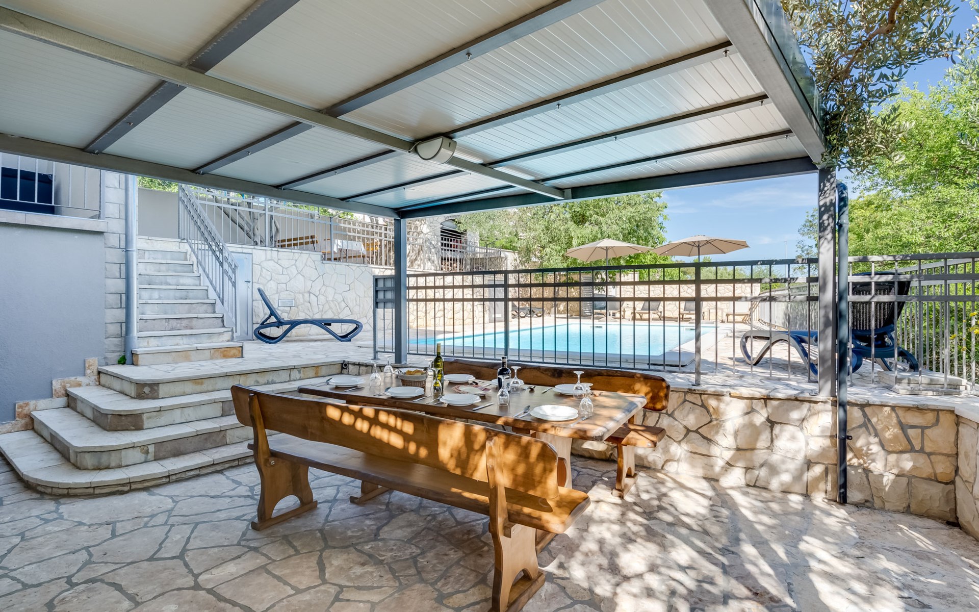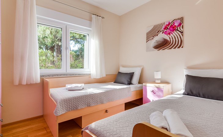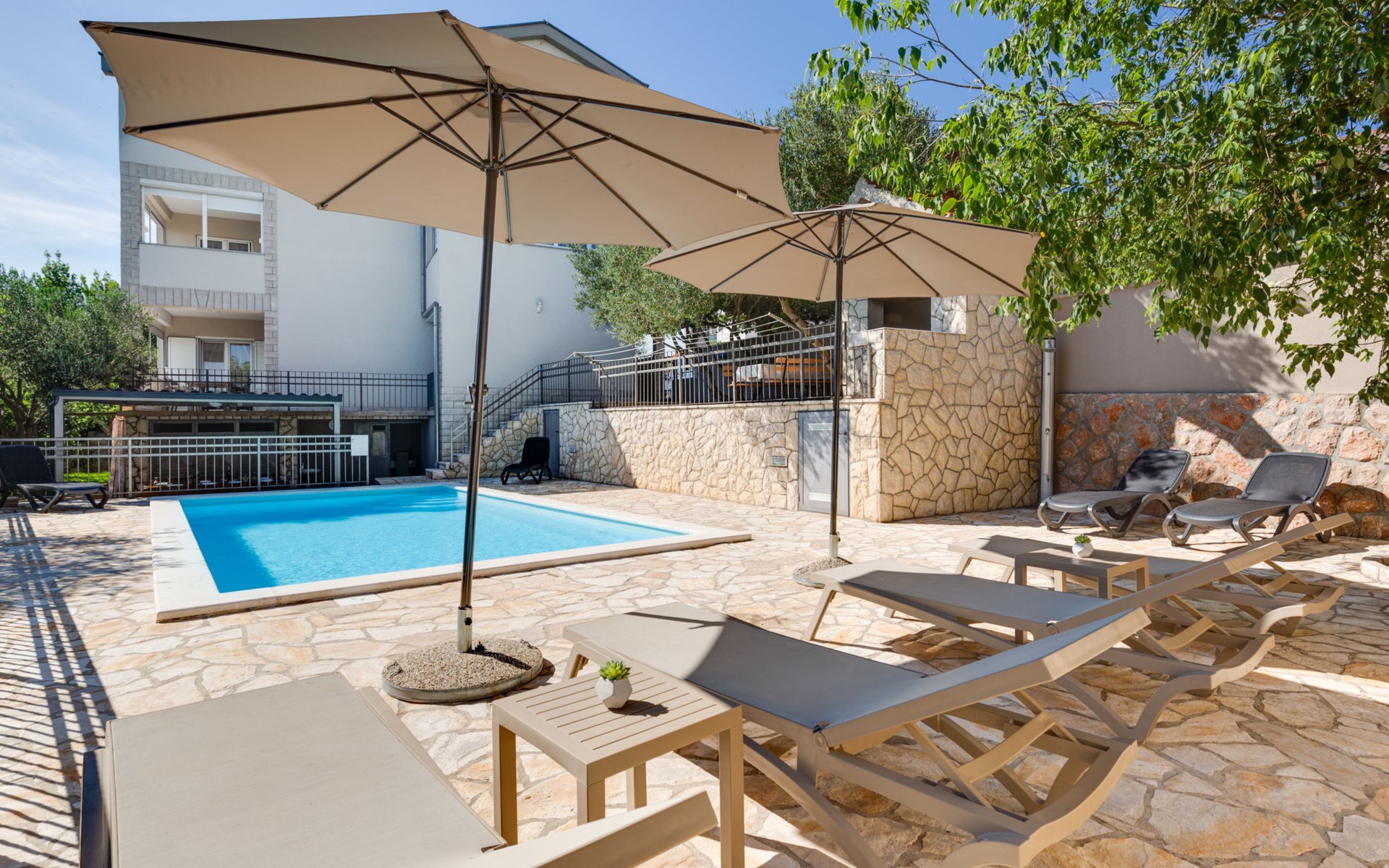 Apartment house "Relax". 16 km from the centre of Obrovac, in a sunny, elevated position, 150 m from the sea, 150 m from the beach, located by a road. For shared use: property 300 m2 (fenced), swimming pool angular (8 x 4 m, depth 150 cm, seasonal availability: 02.May. - 26.Sep.). Garden furniture, barbecue. In the house: internet access, washing machine (for shared use). Parking at the house on the premises. Shop 10 m, restaurant 100 m, bus stop 1 km, pebble beach 150 m. Nearby attractions: NP Paklenica 17 km, rafting Zrmanja 35 km.