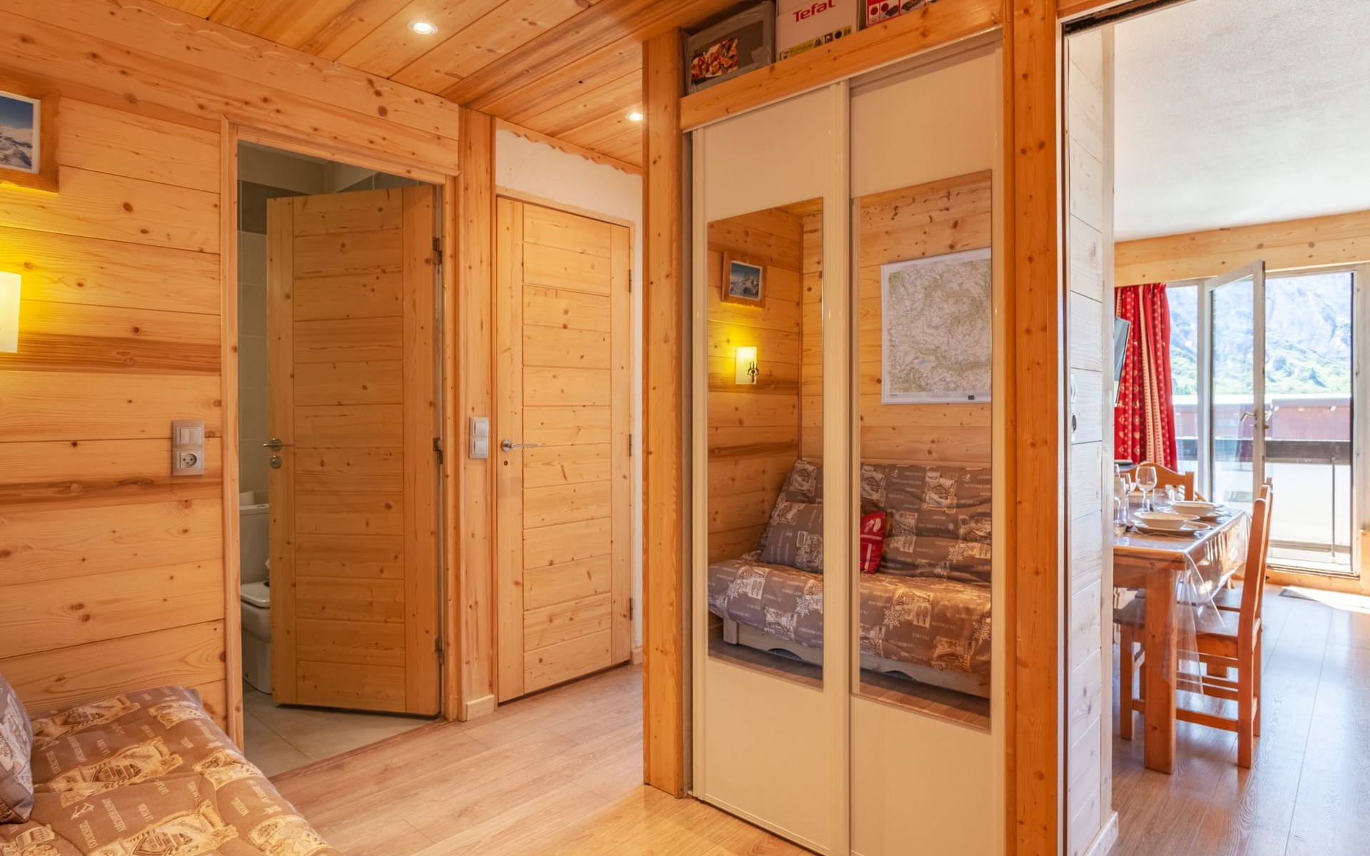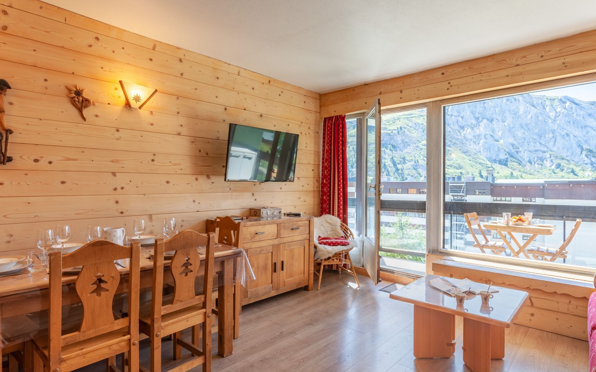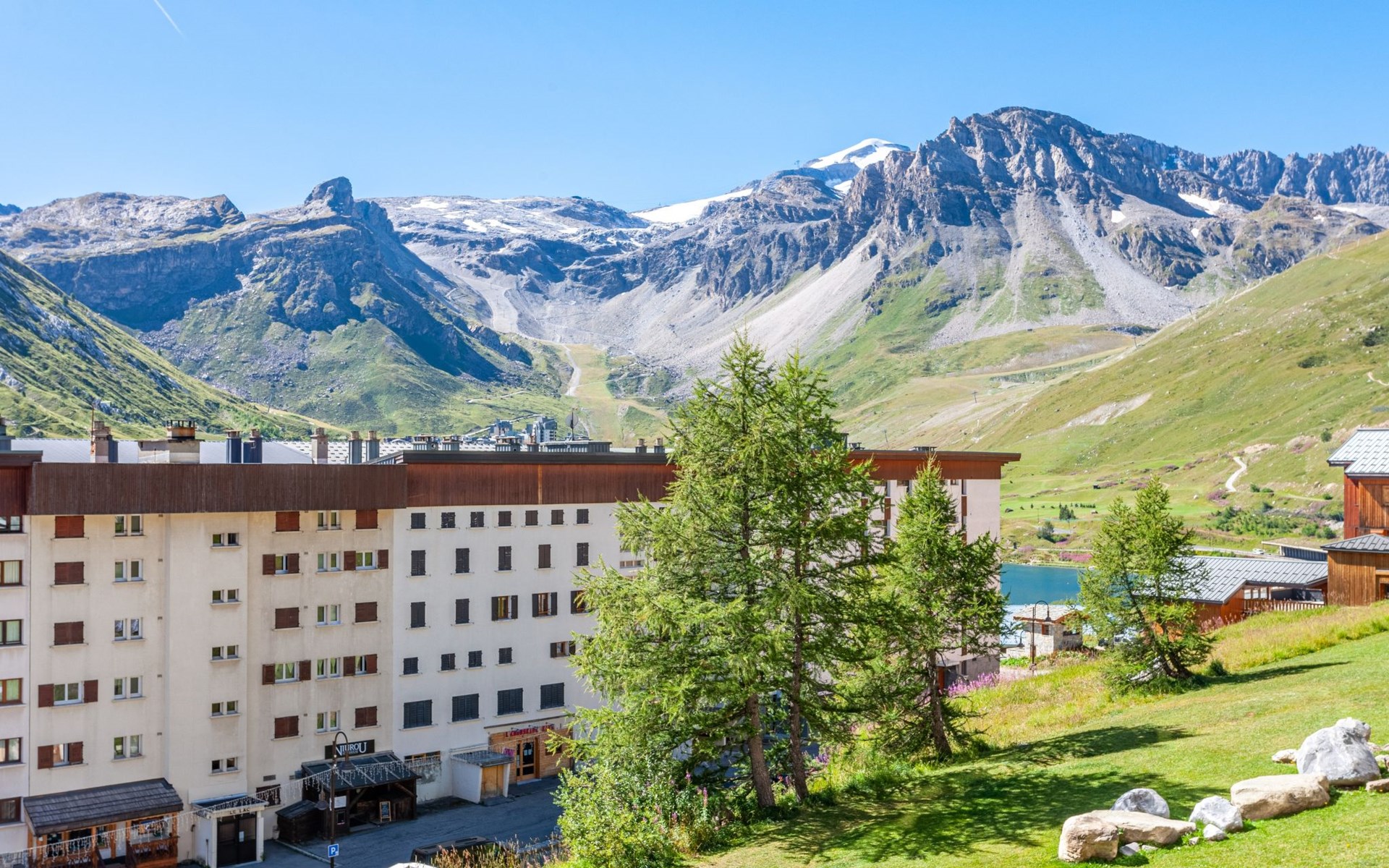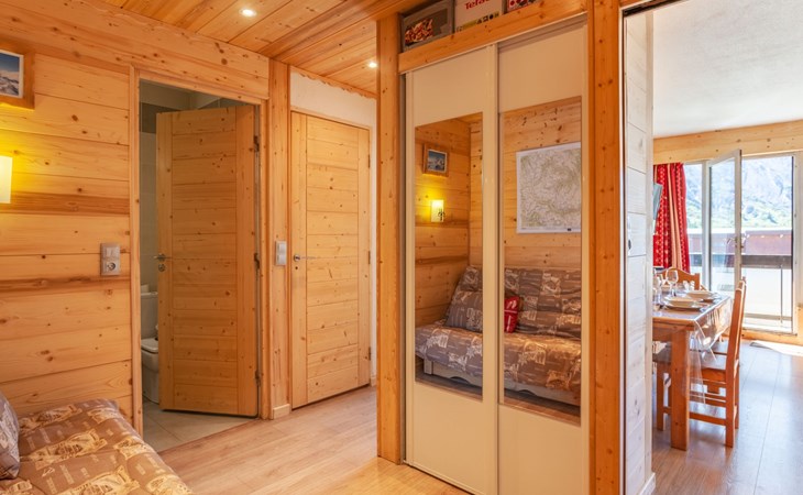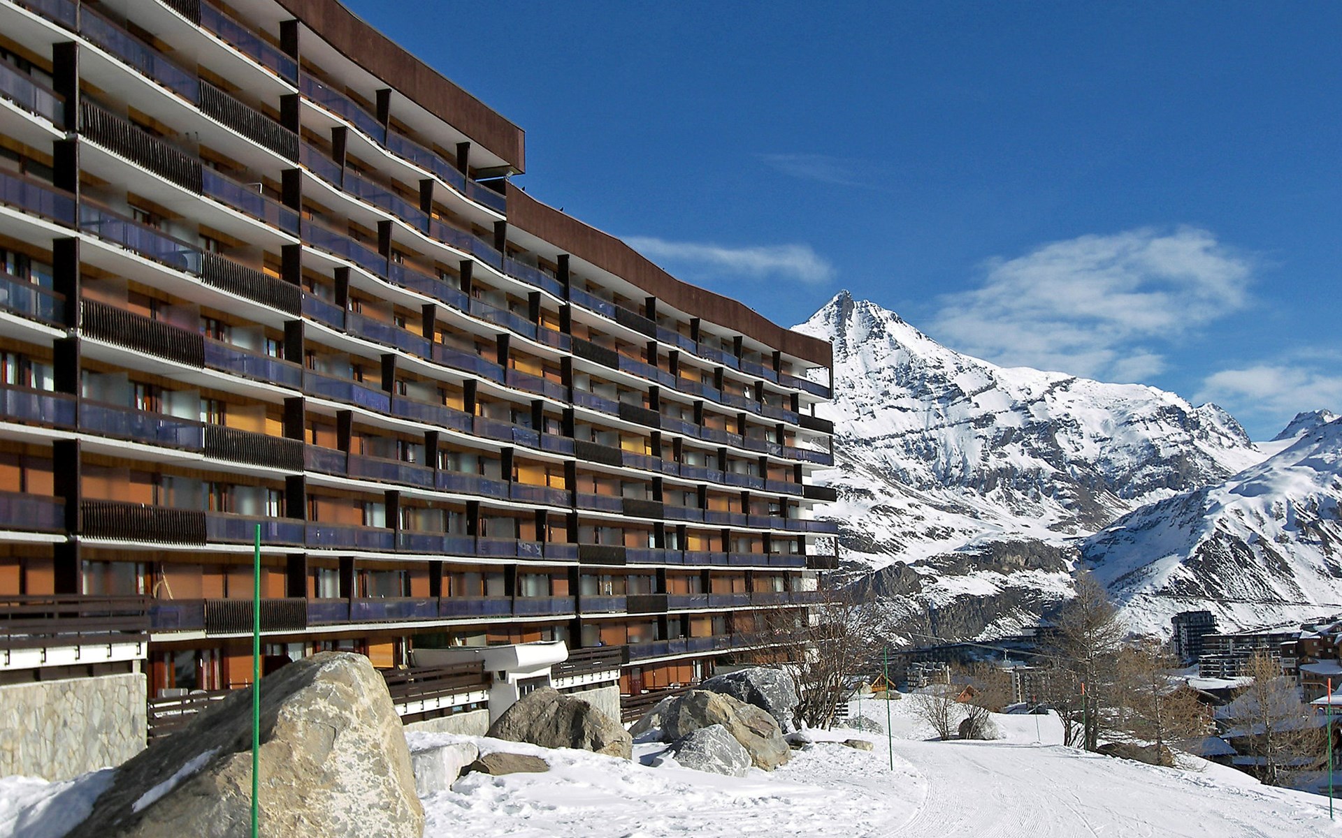 Tignes le Lac: Residence "Le Bec Rouge (Le Lac)", 8 storeys. Excellent location: right in the centre but still quiet, 150 m from the skiing area. In the complex: lift, storage room for skis, central heating system. Shop 200 m, grocery 200 m, supermarket, shopping centre, restaurant 100 m, bar 100 m, bakery 100 m, bus stop, indoor swimming pool 200 m, 200 m. Golf course (18 hole) 1 km, minigolf 1 km, sports centre, chair lift 100 m, gondola lift 200 m, skisport facilities 150 m, slopes 200 m, ski rental 200 m, ski bus stop, ski school 400 m, fishing possibilities 200 m. Nearby attractions: Le Lagon (Piscine, wellness, fitness) 200 m, Centre Sportif Tignespace 200 m, Cinéma 1 km, Bike park l'été 100 m, Base nautique l'été 200 m. Well-known ski regions can easily be reached: Tignes & Val d'Isère 300km de pistes 100 m. Well-known lakes can easily be reached: Le Lac de Tignes 200 m. Hiking paths: Le Parc National de la Vanoise 100 m. Please note: ski bus (free of charge). Free ski bus service to the ski region Tignes & Val d'Isère. In case of good snow conditions, the house is accessible on skis. Please note: Loading and unloading of baggage is possible at the holiday house. Guarded residence. The keys‘ handover takes place by the agency Interhome in Tignes le Lac. Additional accommodations can be booked.