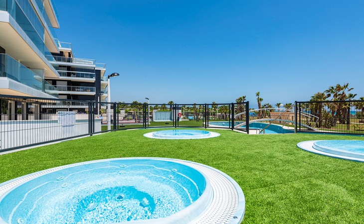Comfortable residence "Ciudad Jardin 2 - Marina d'Or". In the district of Torre la Sal, in a quiet, sunny position, 50 m from the sea, 50 m from the beach. For shared use: park, swimming pool (depth 150 cm, seasonal availability: 01.Jun. - 30.Sep.). Unconventional pool shape. Children's pool, outdoor shower, hot tub, children's playground. In the house: lift. Parking, public parking on the road. Parking space or garage only for small to medium-sized cars. Supermarket, restaurant, bar, café 500 m, bus stop 800 m, railway station 4.5 km, sandy beach 50 m. Sports harbour 6 km, marina 6 km, surf school 6 km. The owner does not accept any youth groups. Neighbourhood highly sensitive to noise. Quietness and good behaviour expected.