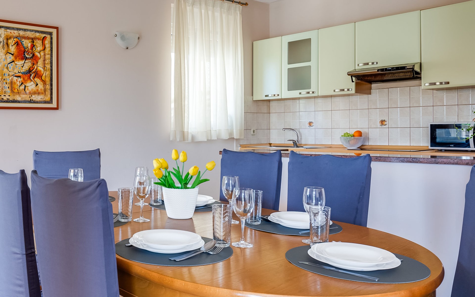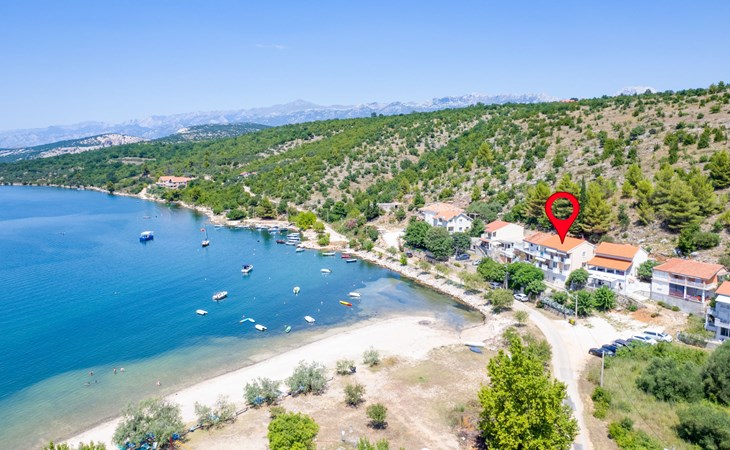 Ribnica 15 km from Novigrad: Apartment house "Daria". 7 km from the centre of Obrovac, in a quiet, sunny position, 40 m from the sea, 40 m from the beach. For shared use: barbecue. In the house: internet access. Parking at the house. Shop 400 m, restaurant 1.5 km, bus stop 25.3 km, pebble beach 40 m. The house is situated in a quiet bay with a gentle slope. It is an ideal place for children.
