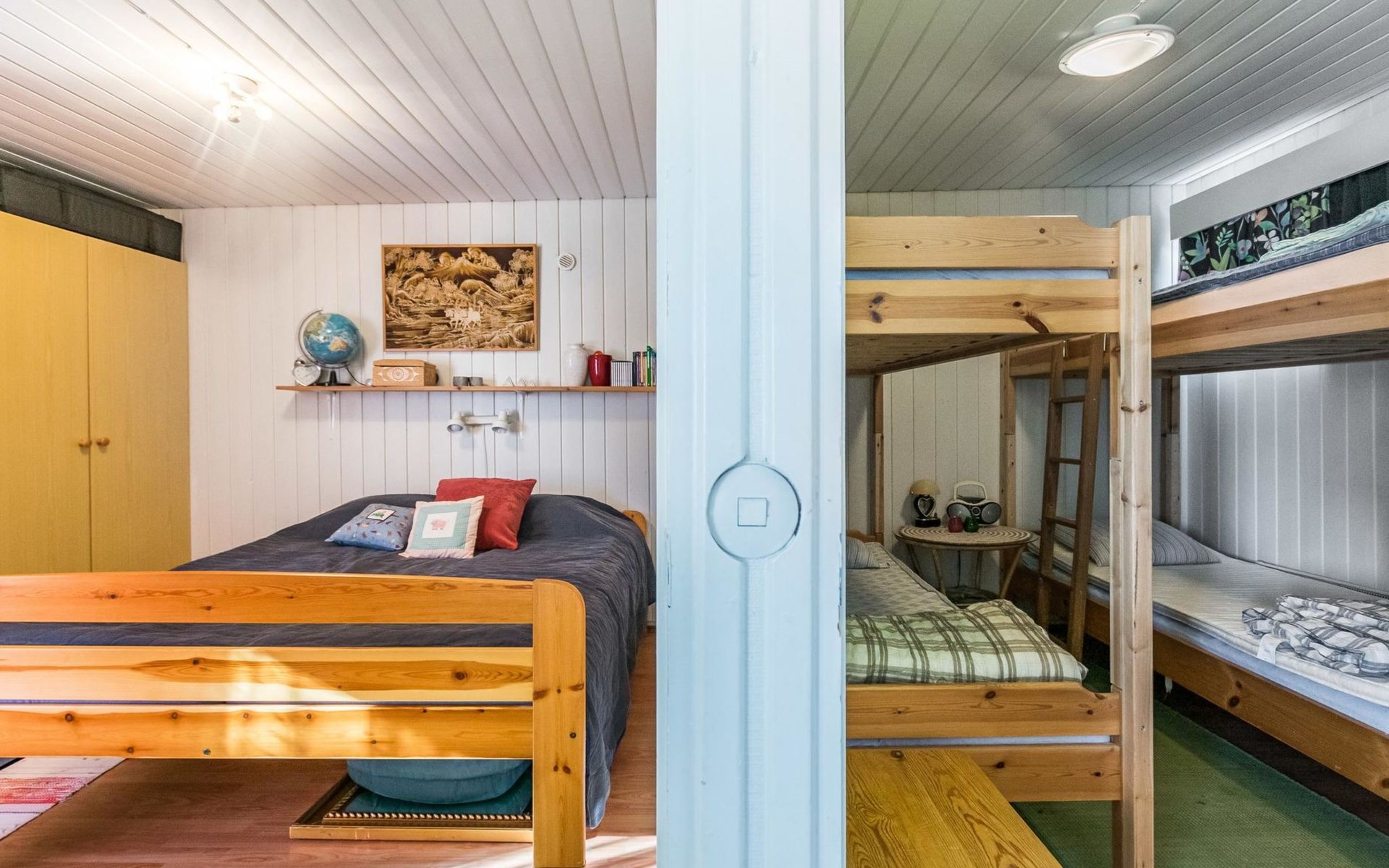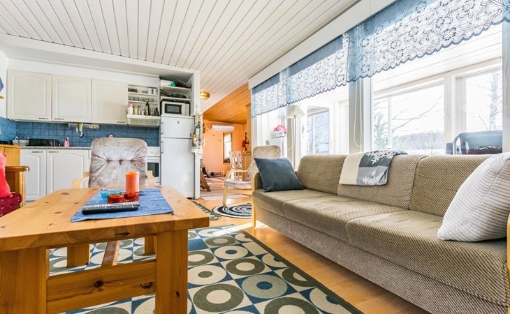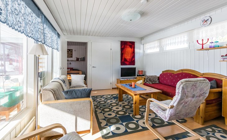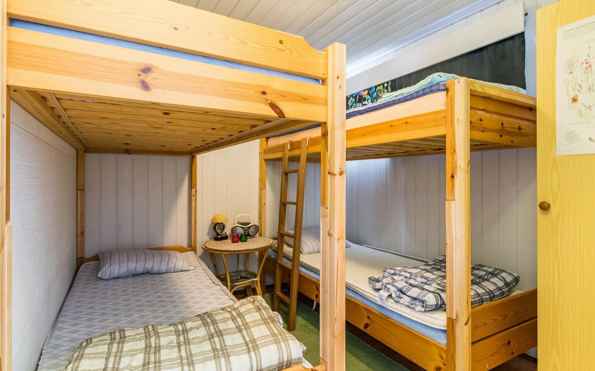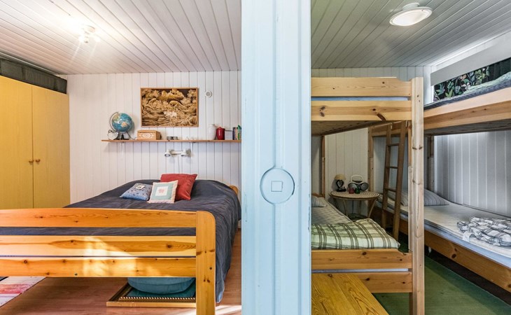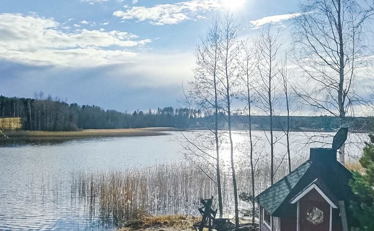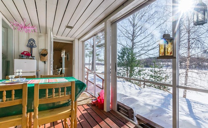 Wooden cabin 1988, bedroom 1: double bed, bedroom 2: 2 bunk beds, washroom, WC in washroom, sauna (electric sauna stove), glazed porch. Cooking hut with outdoor kitchen. The cabin is located in a former holiday village, the cabins are now privately owned. Sloping plot, stairs to the beach at the steepest point, lawn yard. The beach is facing to the west. Spa hotel Peurunka in Laukaa; golf course, gym, spa, disc golf, ice hall and restaurant. Distance 16 km.