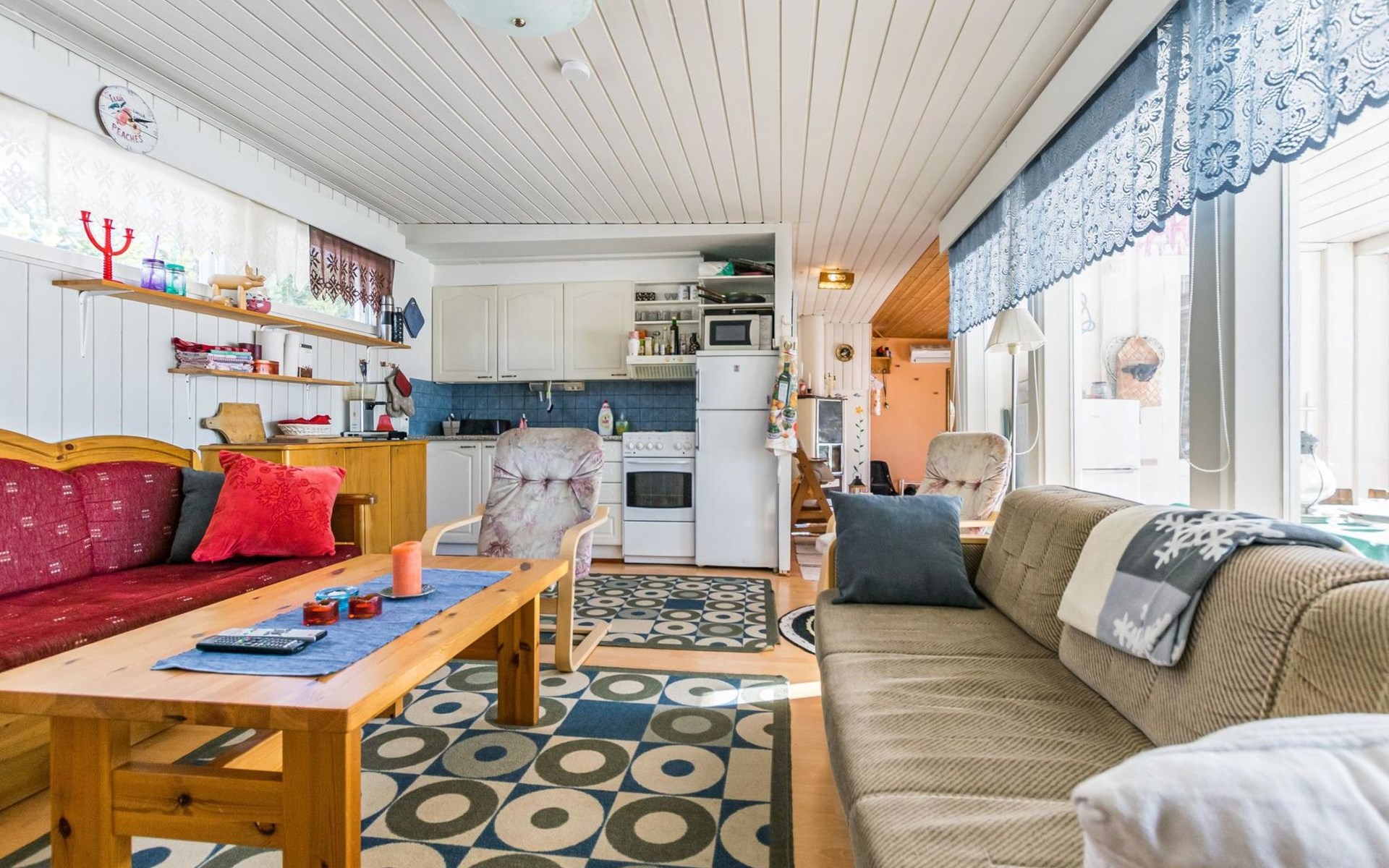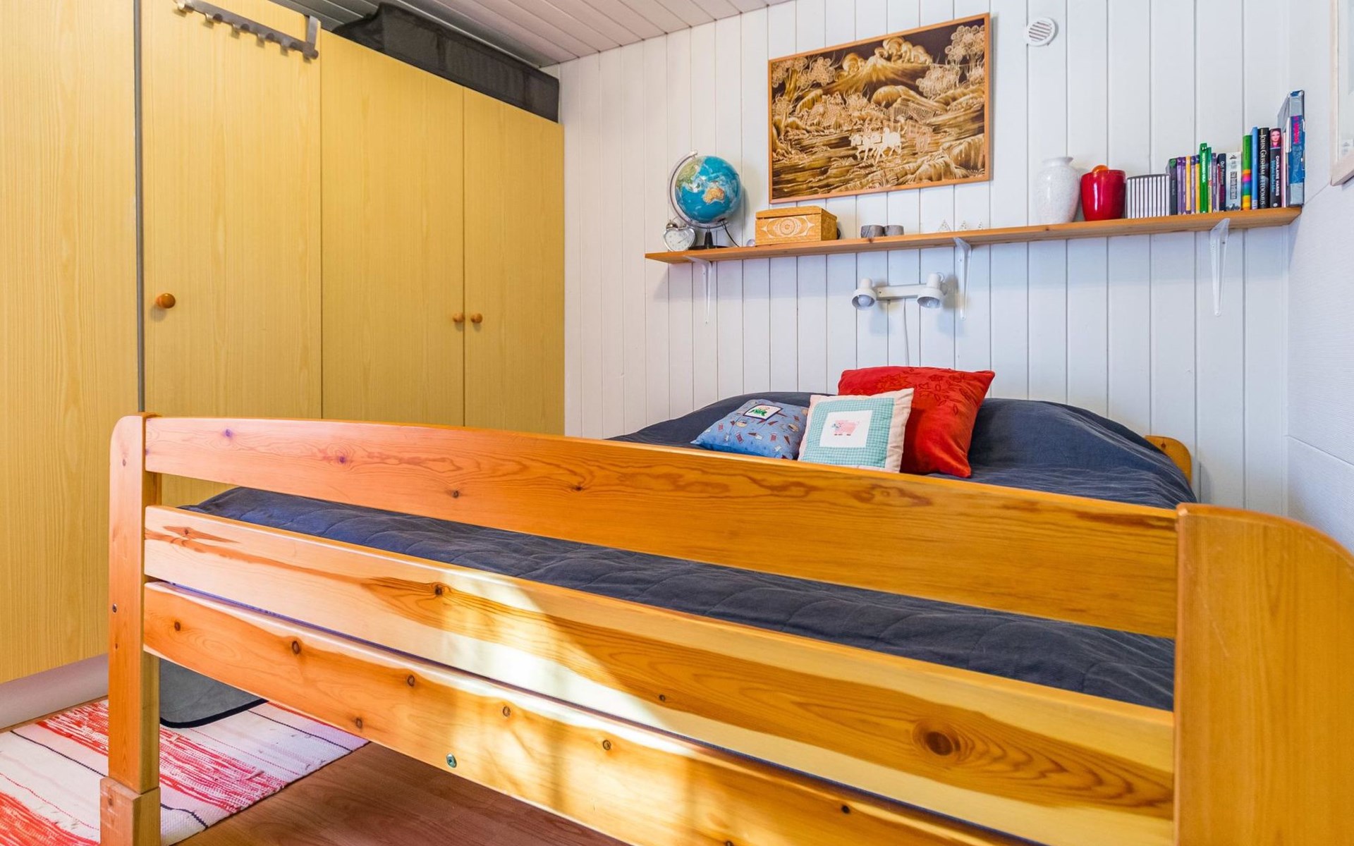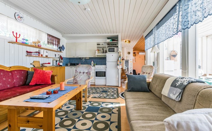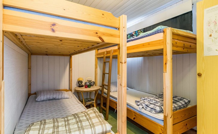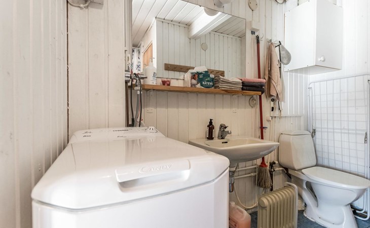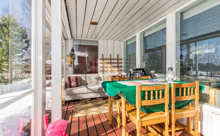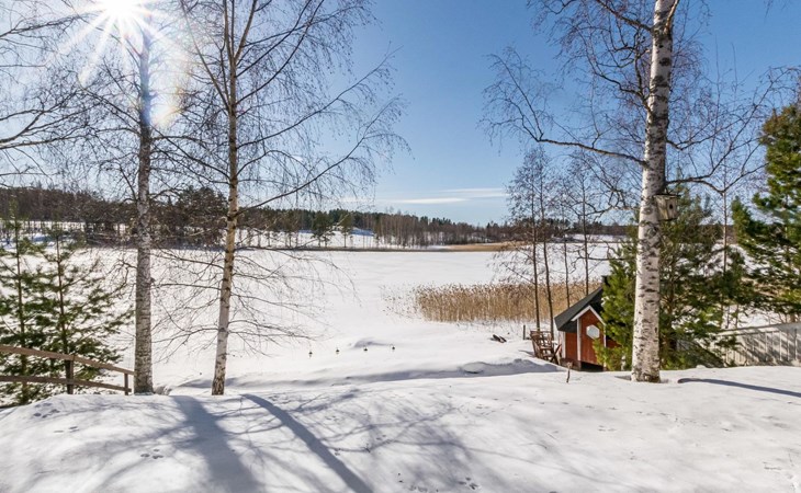 Wooden cabin 1988, bedroom 1: double bed, bedroom 2: 2 bunk beds, washroom, WC in washroom, sauna (electric sauna stove), glazed porch. Cooking hut with outdoor kitchen. The cabin is located in a former holiday village, the cabins are now privately owned. Sloping plot, stairs to the beach at the steepest point, lawn yard. The beach is facing to the west. Spa hotel Peurunka in Laukaa; golf course, gym, spa, disc golf, ice hall and restaurant. Distance 16 km.