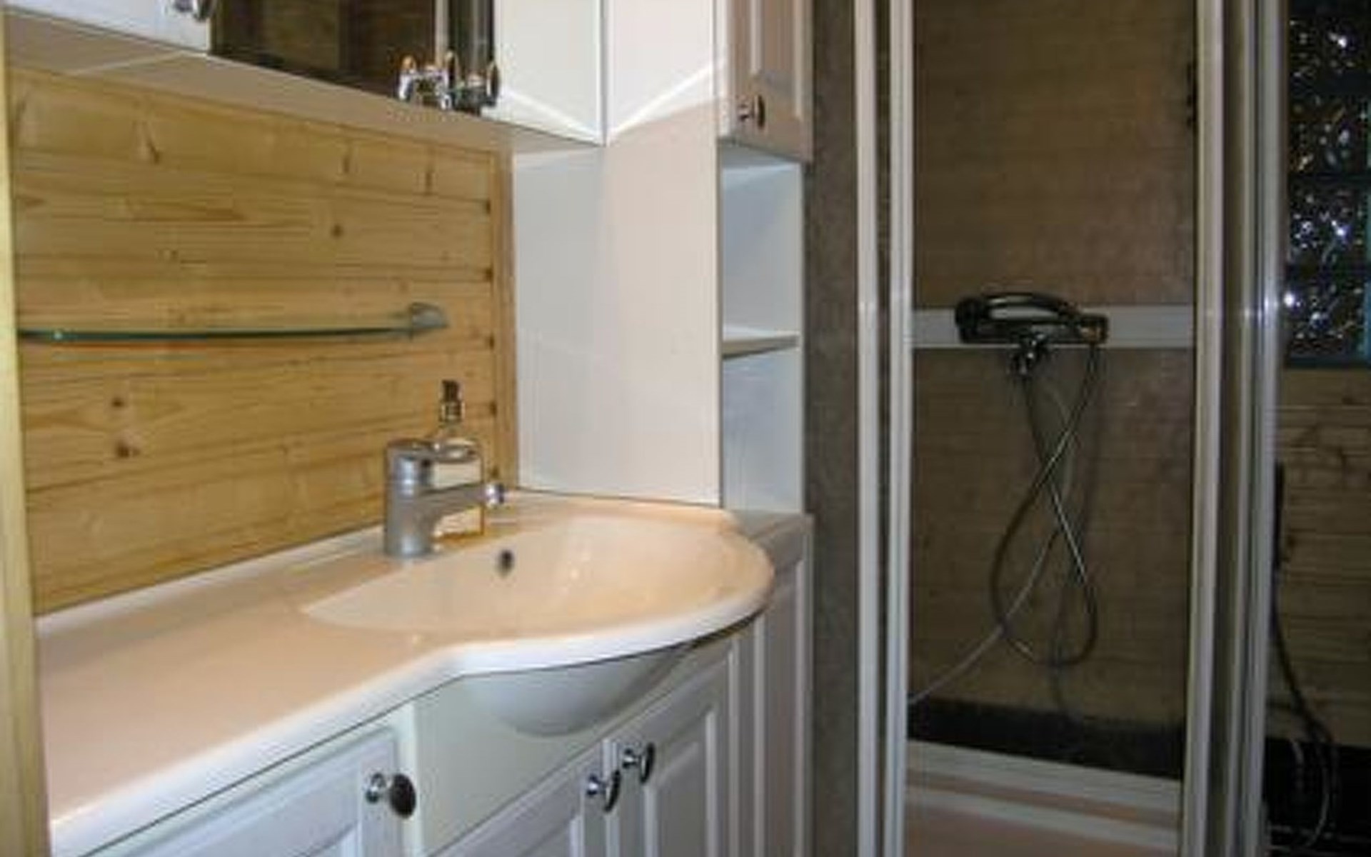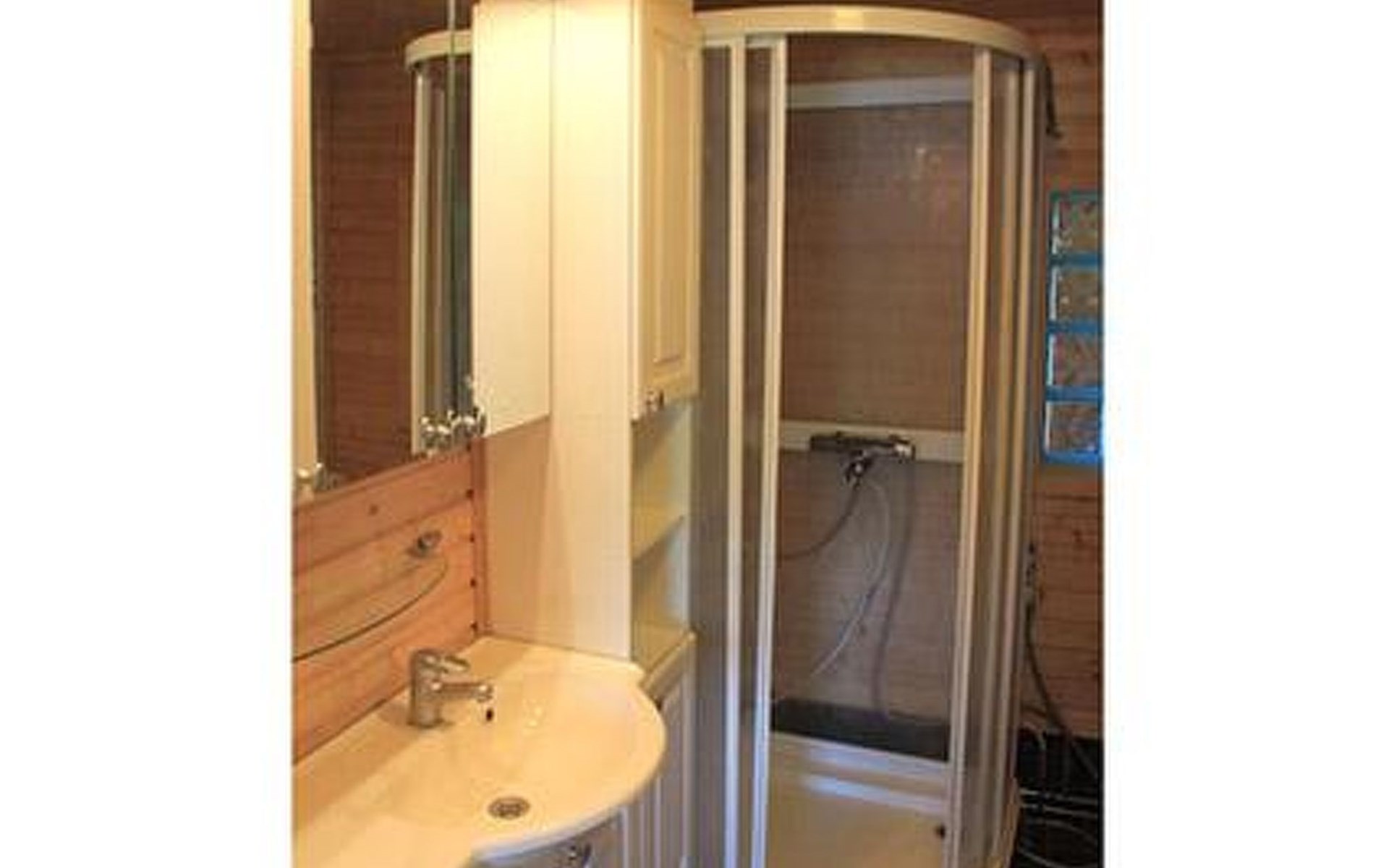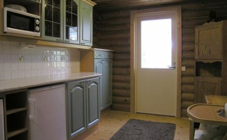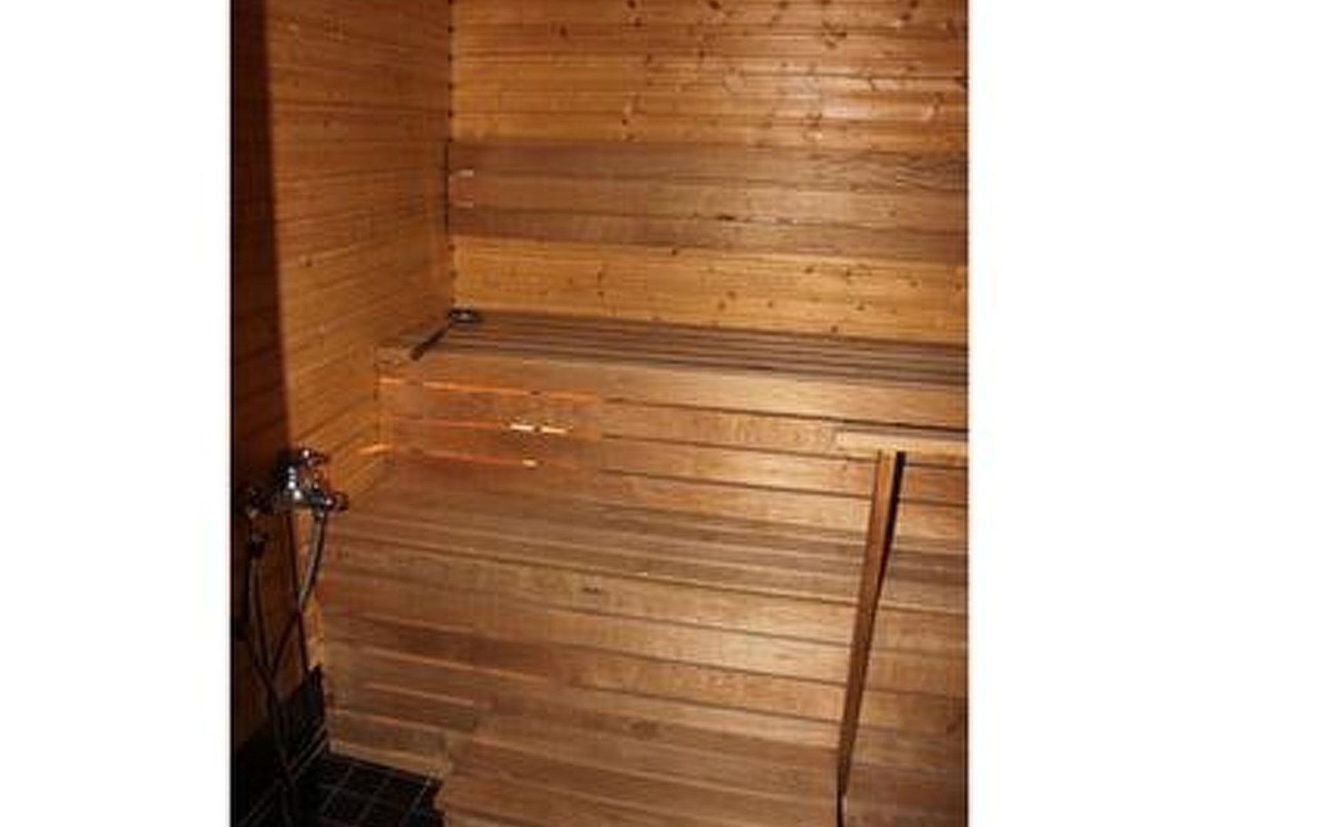 Downstairs vestibule, living room, kitchen, alcove 2 beds, washroom, sauna (wooden heated), terrace.