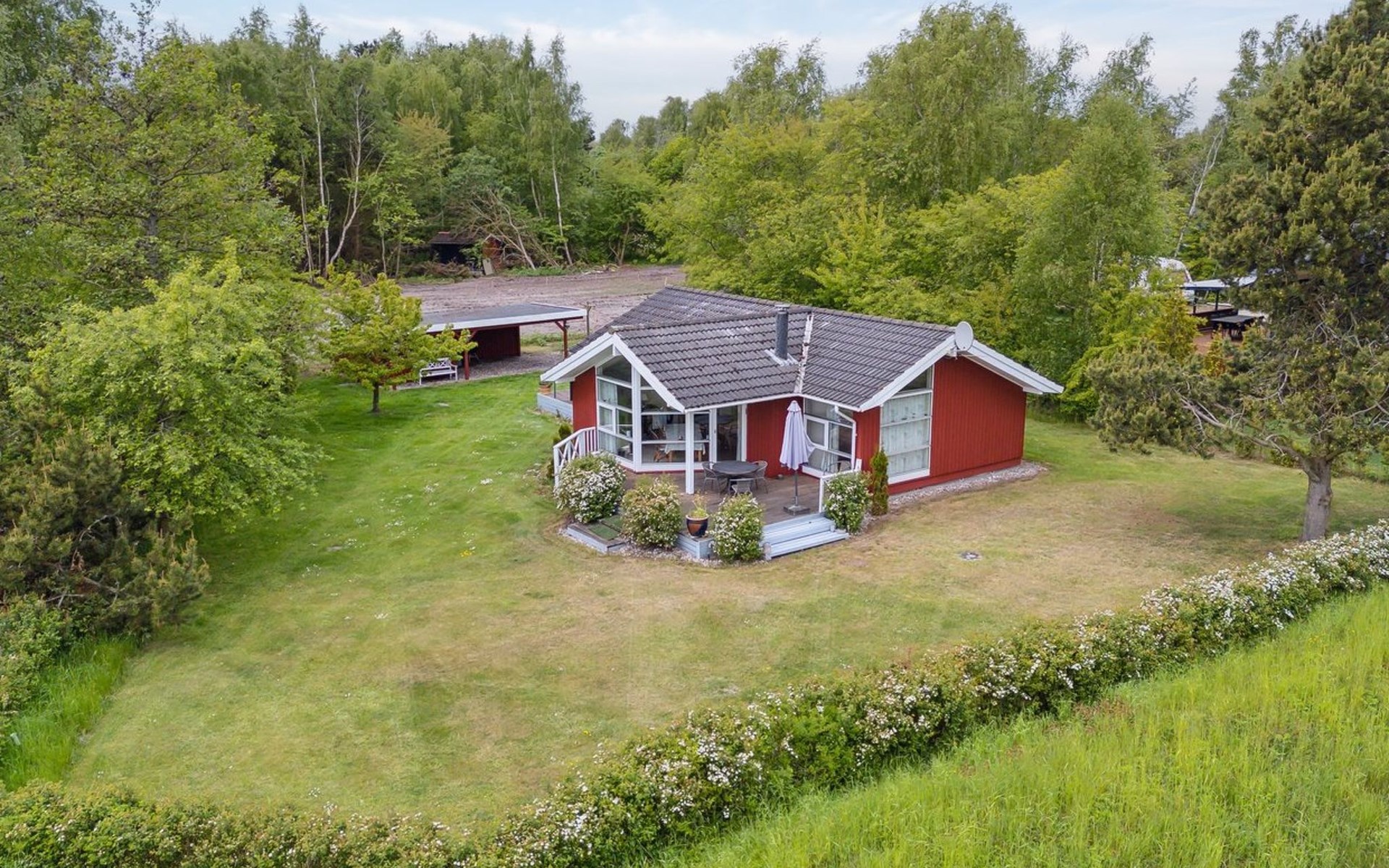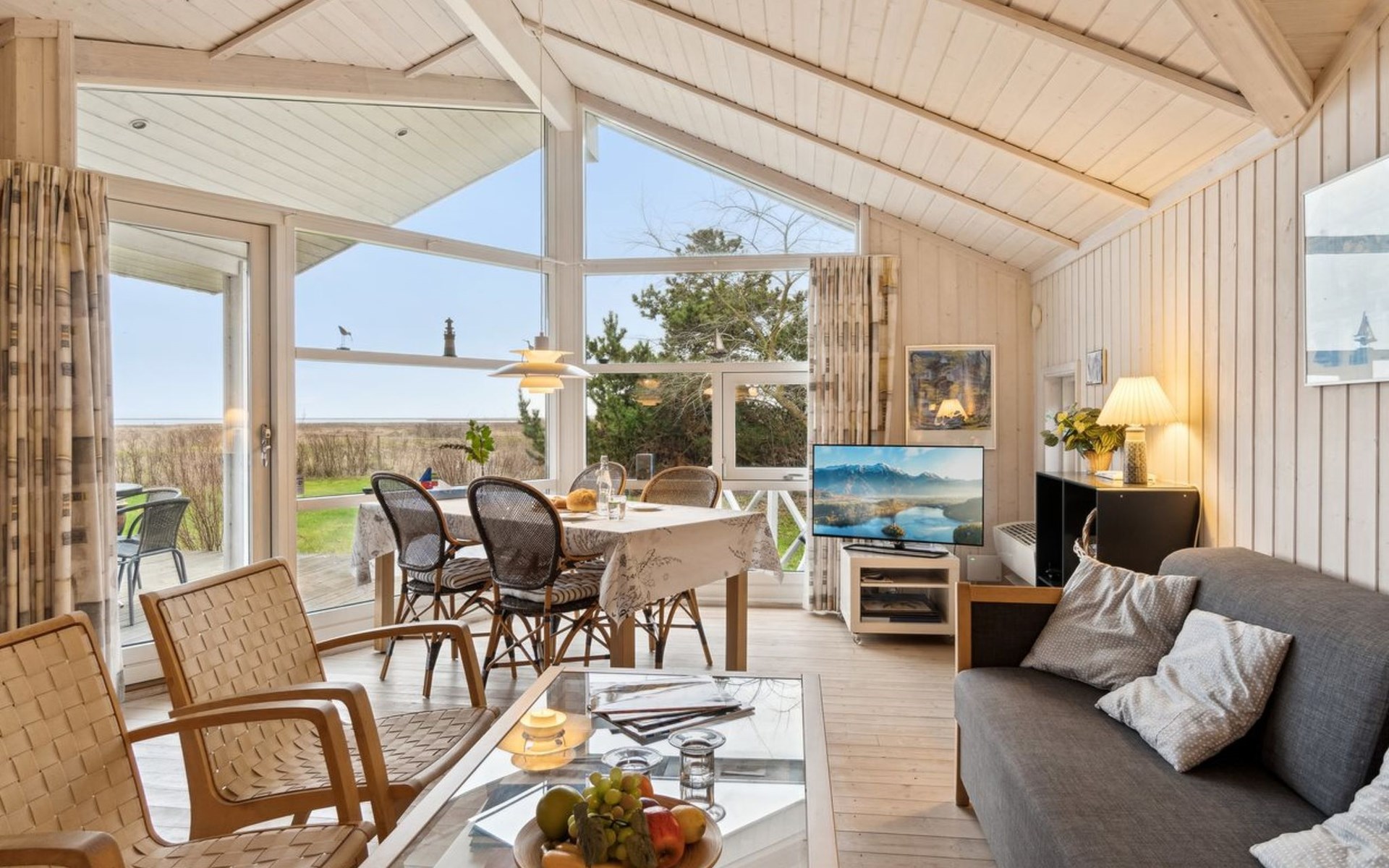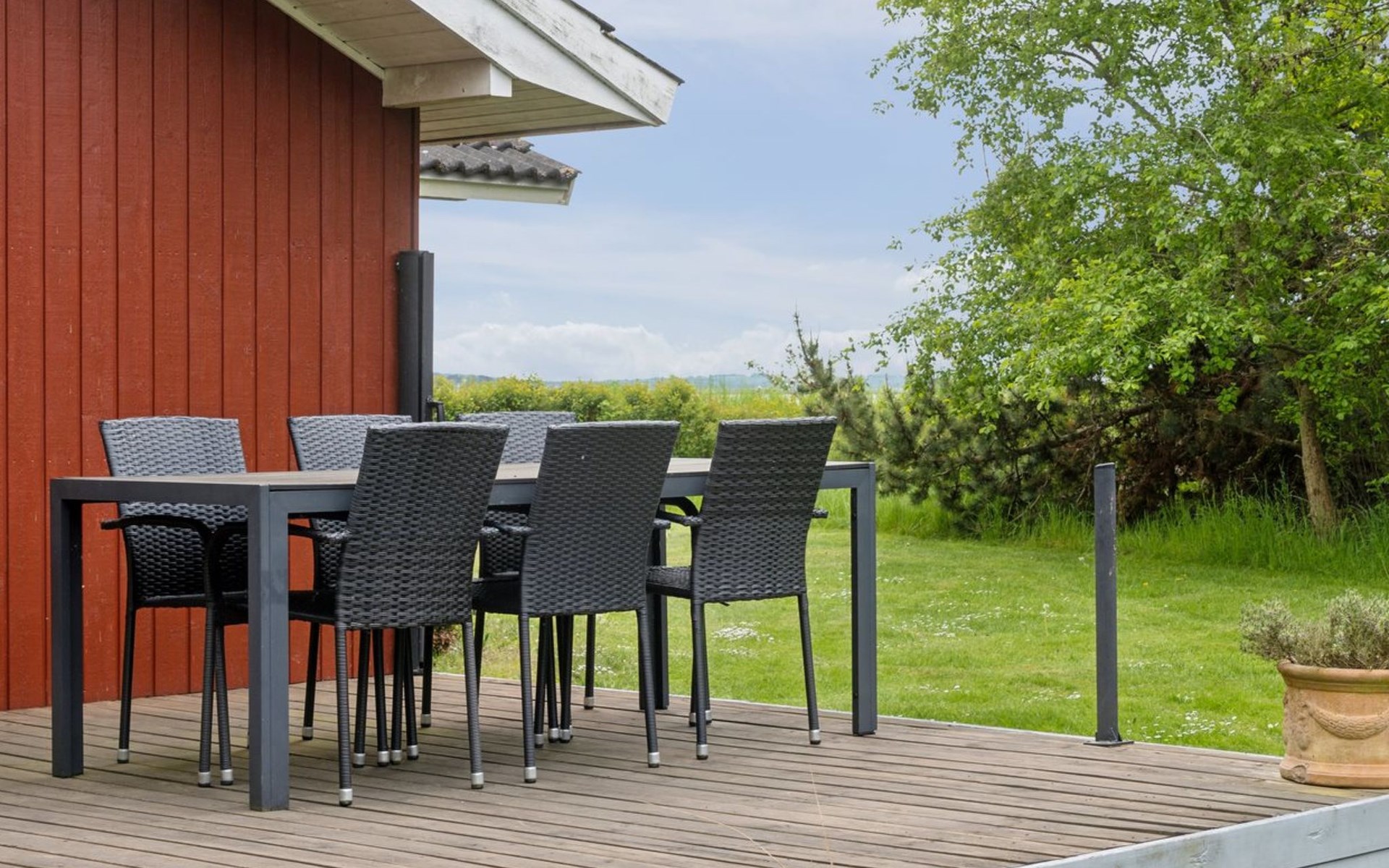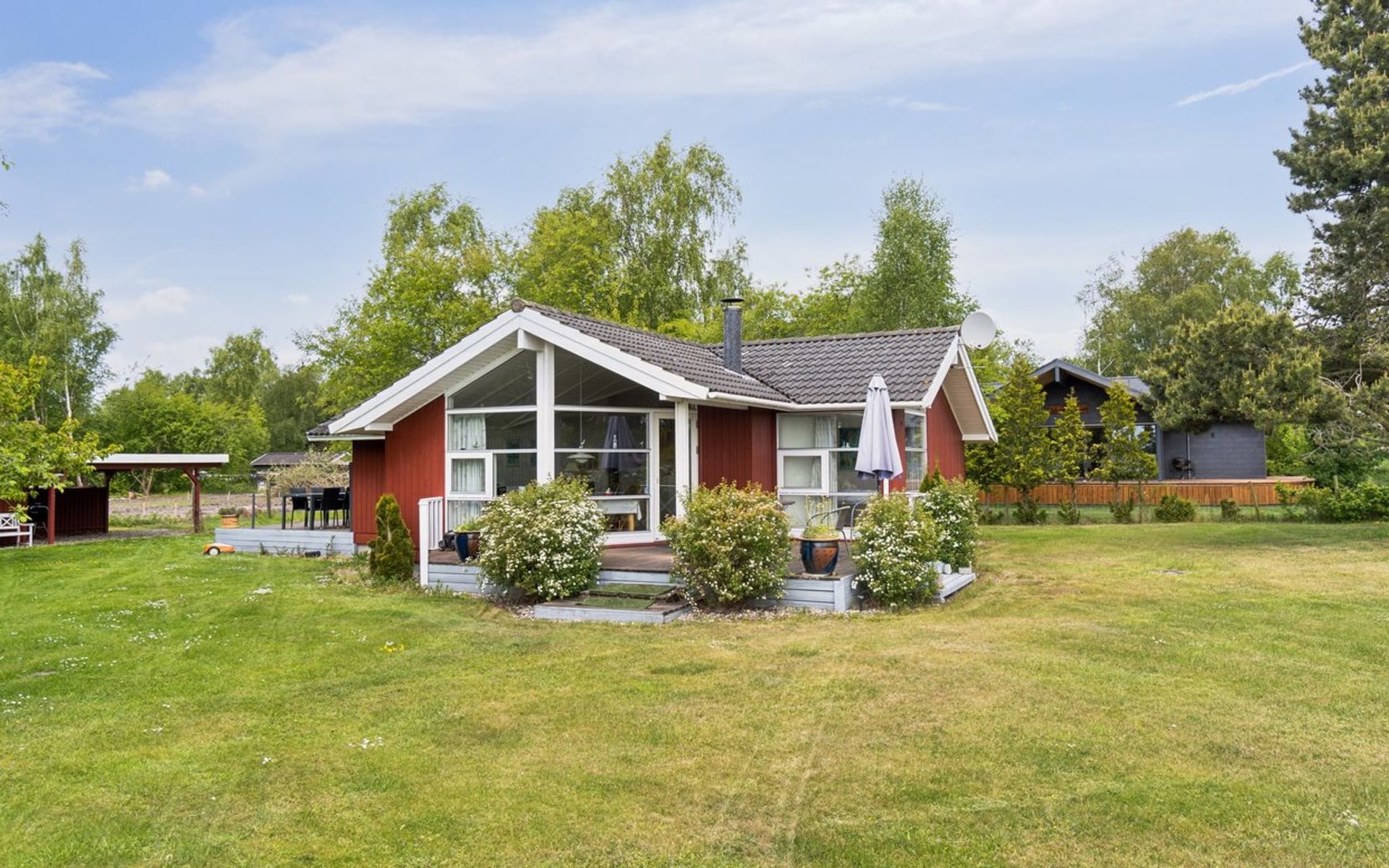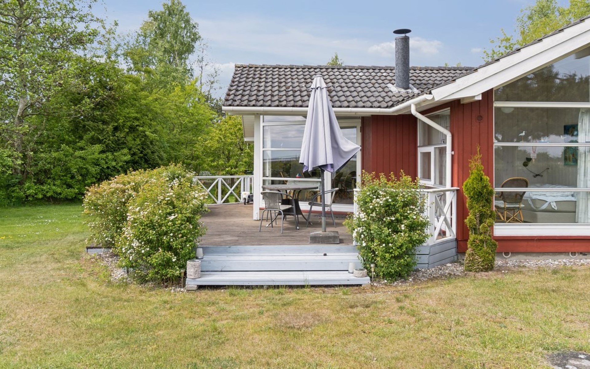 Single-family house, built in 2008. 225 m from the sea. Private: property 1'160 m2, well-kept garden. Terrace (40 m2), barbecue. In the house: washing machine. Parking at the house. Carport. Grocery 6.8 km. Golf course 21.5 km. The owner does not accept any youth groups.