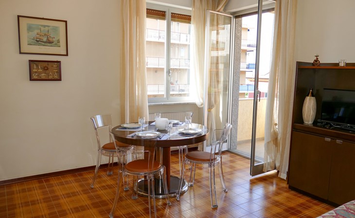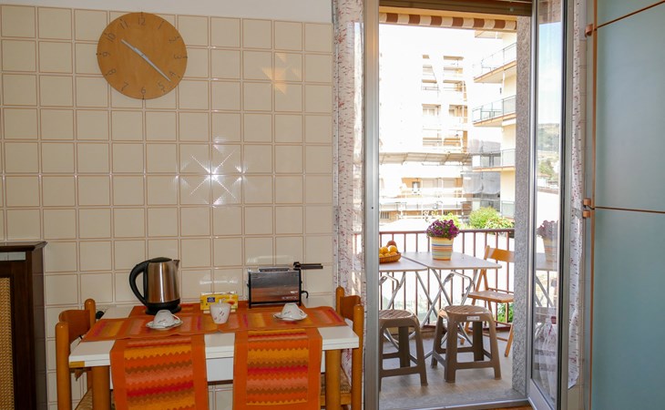 Apartment block, 4 storeys. 200 m from the centre of Santo Stefano al Mare, 1 km from the centre of Riva Ligure, 4 km from the centre of Arma di Taggia, in a sunny position, 250 m from the sea. In the house: lift. Public parking 50 m on the road. Grocery 500 m, supermarket 1 km, restaurant 400 m, bar 200 m, bicycle rental 150 m, bus stop 30 m, railway station "Taggia" 3 km, sandy beach 300 m. Golf course (18 hole) 6 km, minigolf 3 km, cycle lane 100 m. Please note: main road 30 m from the property.