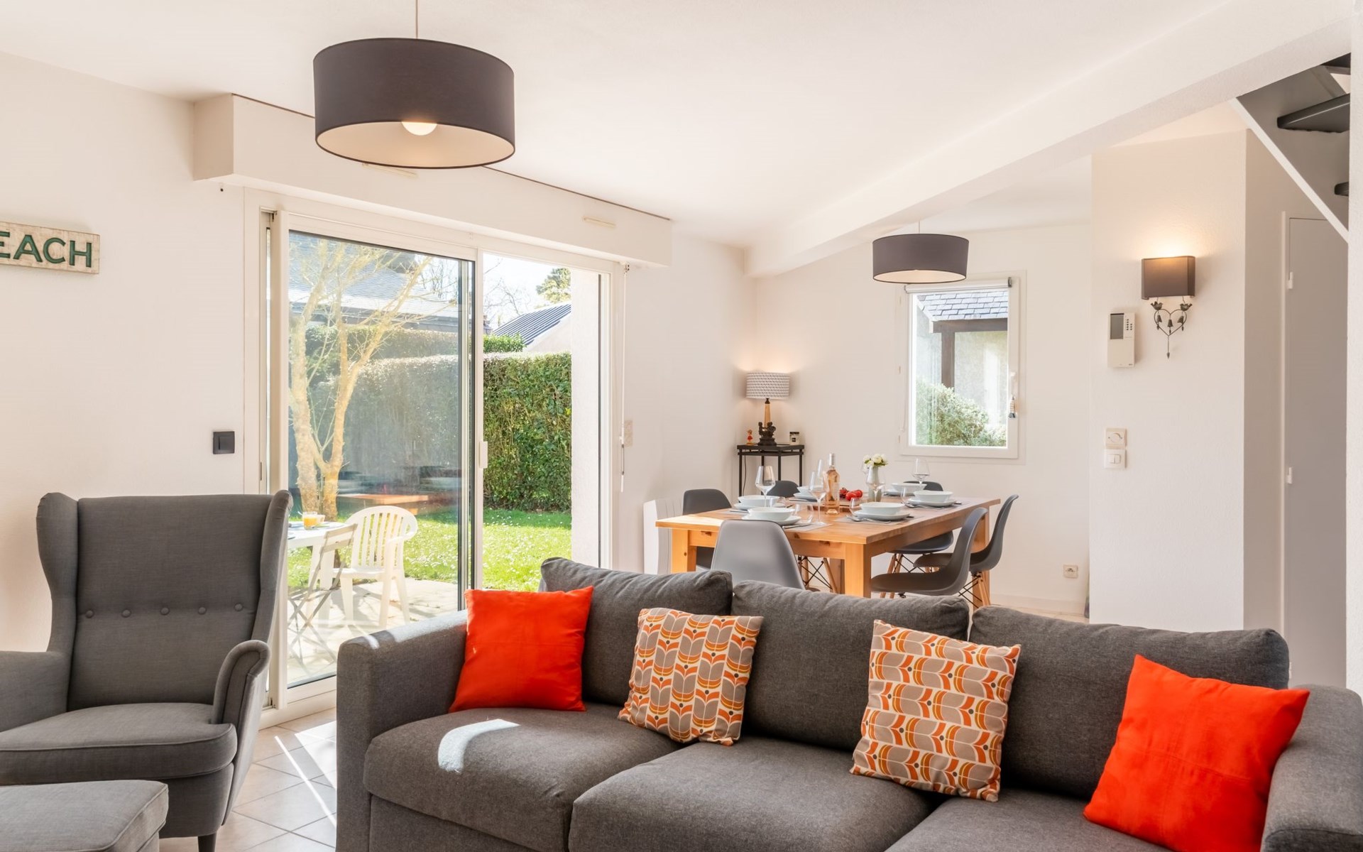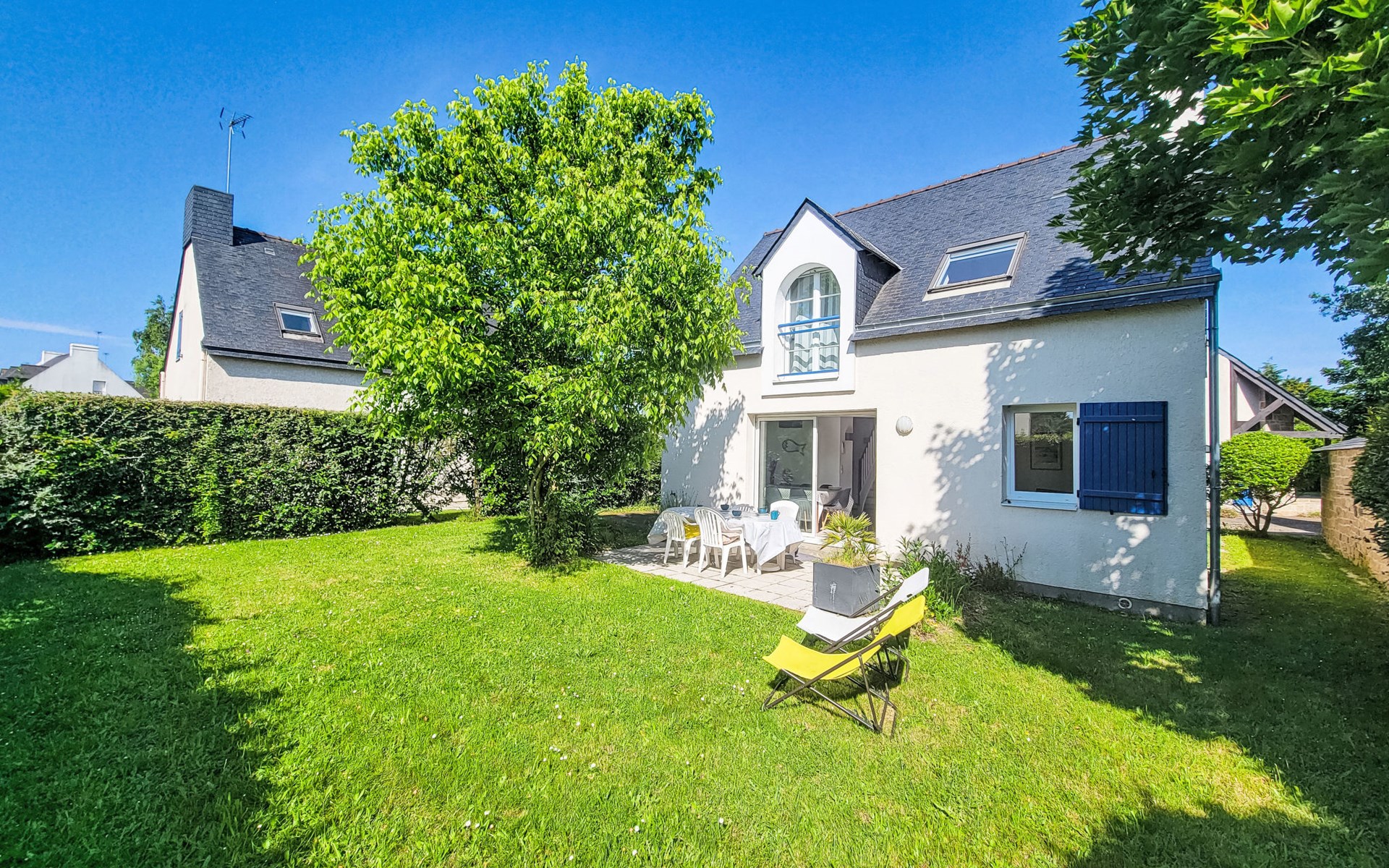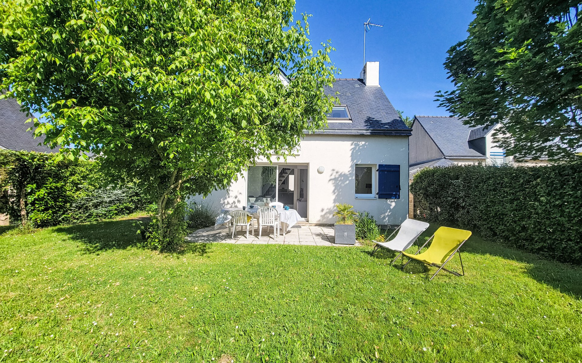 Single-family house "Le Clos St Colomban", 2 storeys. In the hamlet Clos St Colomban, on the outskirts, 1.2 km from the centre of Carnac Plage, 1.1 km from the sea, 1.1 km from the beach. Private: well-kept garden 250 m2, parking on the premises. Shop 1.4 km, supermarket 650 m, restaurant 1.4 km, bakery 900 m, 15 minute walk to the centre, railway station "Auray" 12 km, sandy beach "Plage de Légenèse & St Colomban" 1.2 km, diving center 6 km, indoor swimming pool 1.3 km, thermal baths "Thalassothérapie Thalazur Carnac" 1.3 km. Golf course (18 hole) 16 km, surf school 6 km, sailing school 1.2 km, tennis 900 m. Nearby attractions: Les alignements de Carnac 1.2 km, La Trinité sur Mer 6 km, Quiberon et la presqu'ile 15 km, Belle ile en Mer, Houat, Hoedic, Vannes 35 km, Lorient 65 km. Hiking paths: Le Golfe du Morbihan.