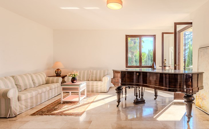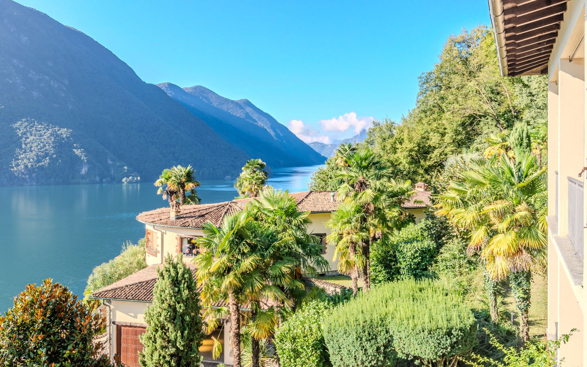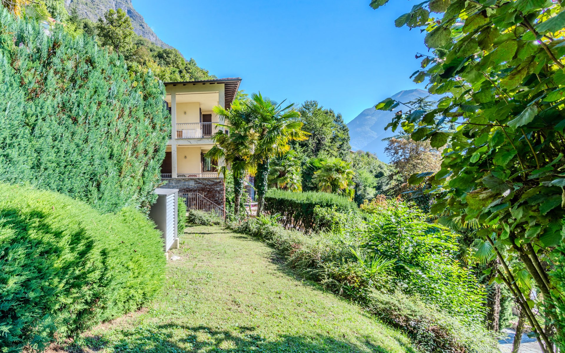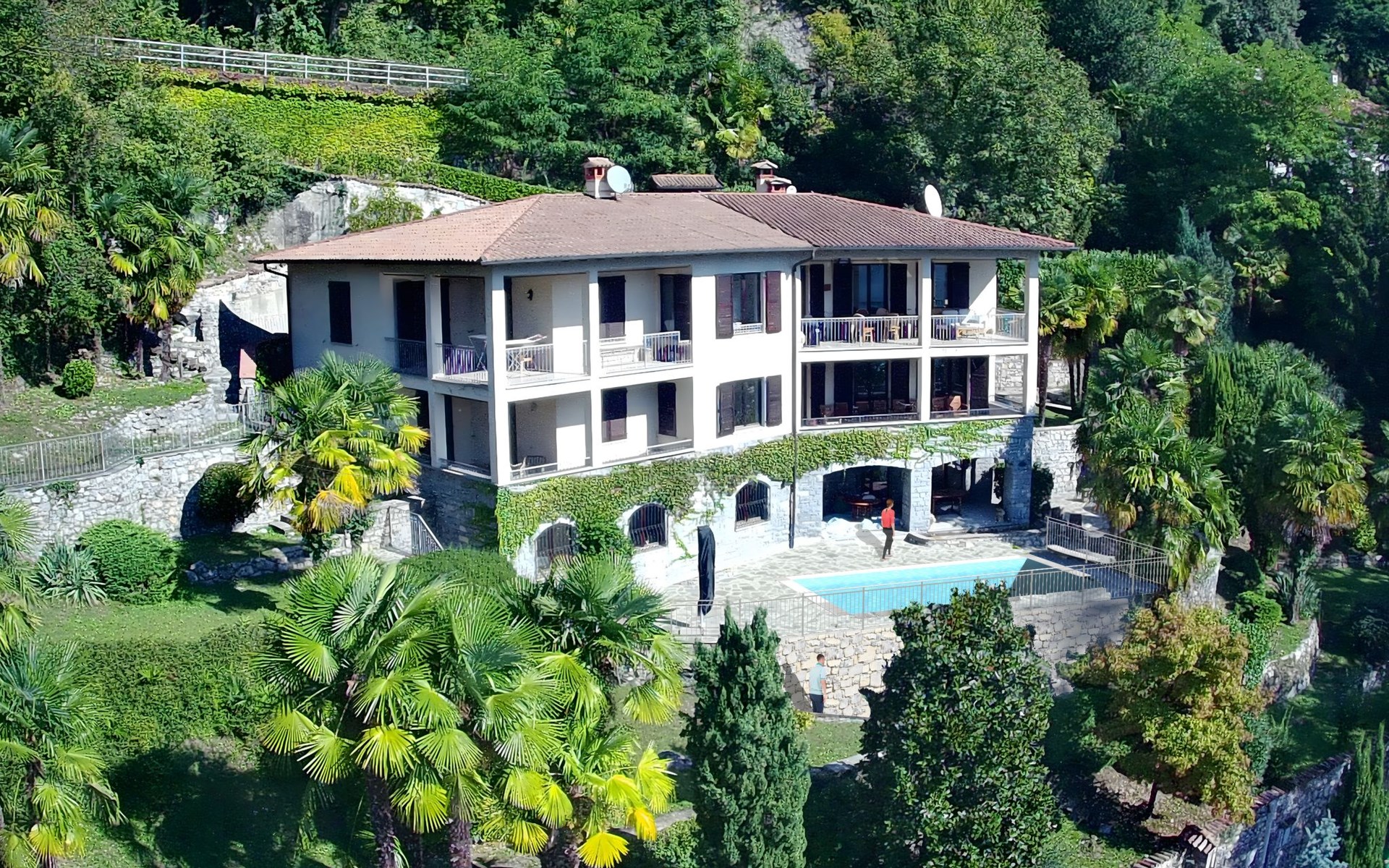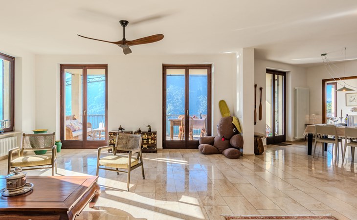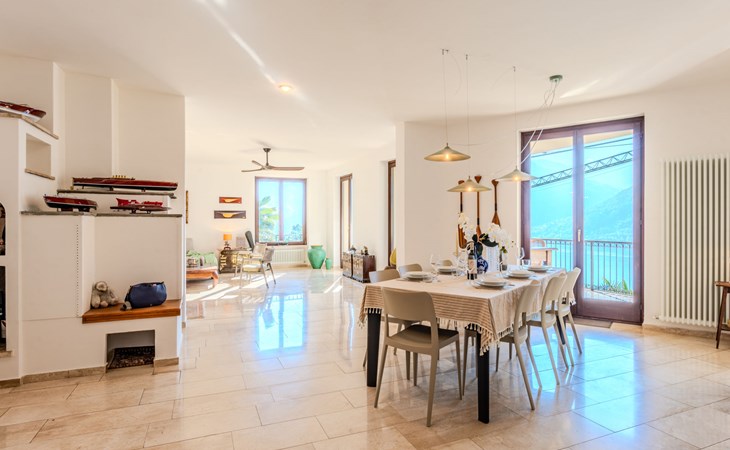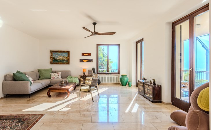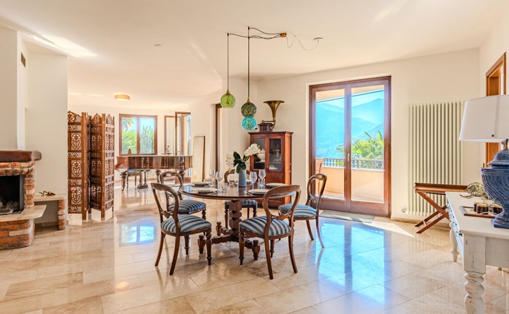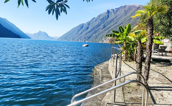 Large, cosy, luxurious villa "Miralago", 3 storeys. In the district of Loggio 1 km from the centre of San Mamete, 7 km from the centre of Porlezza, 12 km from the centre of Lugano, in an elevated position on a slope, residential area (villas), 300 m from the lake, 300 m from the beach, road to cross. Private: property 3'000 m2 (fenced), large terraced garden (fenced) with lawn and trees, swimming pool angular (8 x 3 m, depth 140 cm, seasonal availability: 01.Apr. - 30.Oct.) with salt-electrolysis pool-cleaning system. Outdoor shower, terrace. In the house: table tennis, playroom, washing machine, drying room, heating available only from 15.Oct. - 30.Apr.. Motor access to the grounds. Steep footpath (20 steps) to the house. Parking (for 3 cars) at 50 m single garage at 50 m. Grocery 2 km, supermarket 7 km, restaurant 500 m, bar 2 km, bakery 2 km, café 2 km, bus stop "C12 Menaggio-Porlezza-Lugano" 1.2 km, railway station "Lugano" 13 km, grass beach "Porlezza" 7 km, outdoor swimming pool 7 km, indoor swimming pool 7 km, swimming bay 300 m. Marina 2 km, golf course (18 hole) 17 km, surf school 7 km. Nearby attractions: Villa Fogazzaro Roi, Cascate di Begna, Grotte di Rescia, Lugano, Menaggio, Balcone D'Italia-Sighignola. Well-known lakes can easily be reached: Lago di Como. Hiking paths: Val Rezzo, Madonna del Cep-Passo San Lucio, Breglia-Rifugio Menaggio. Please note: car recommended, no lift. Suitable for families. The owner does not accept any youth groups.